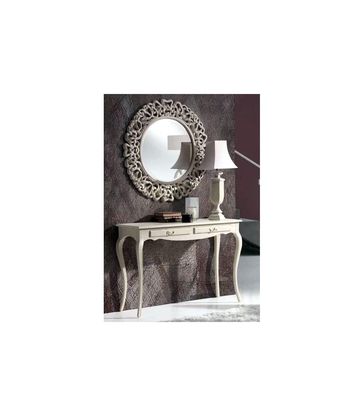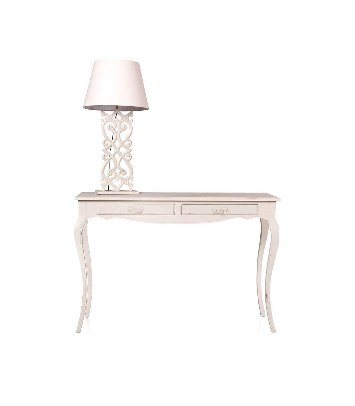Consola de nuestra colección Provence, una colección pura de estilo provenzal de corte francés, una colección de muebles en madera maciza de caoba con acabado en marfil envejecido, jugando con las líneas curvas y las tallas artesanales que le dan elegancia y prestancia a todo el conjunto, una colección ideal para los amantes del buen mueble.
