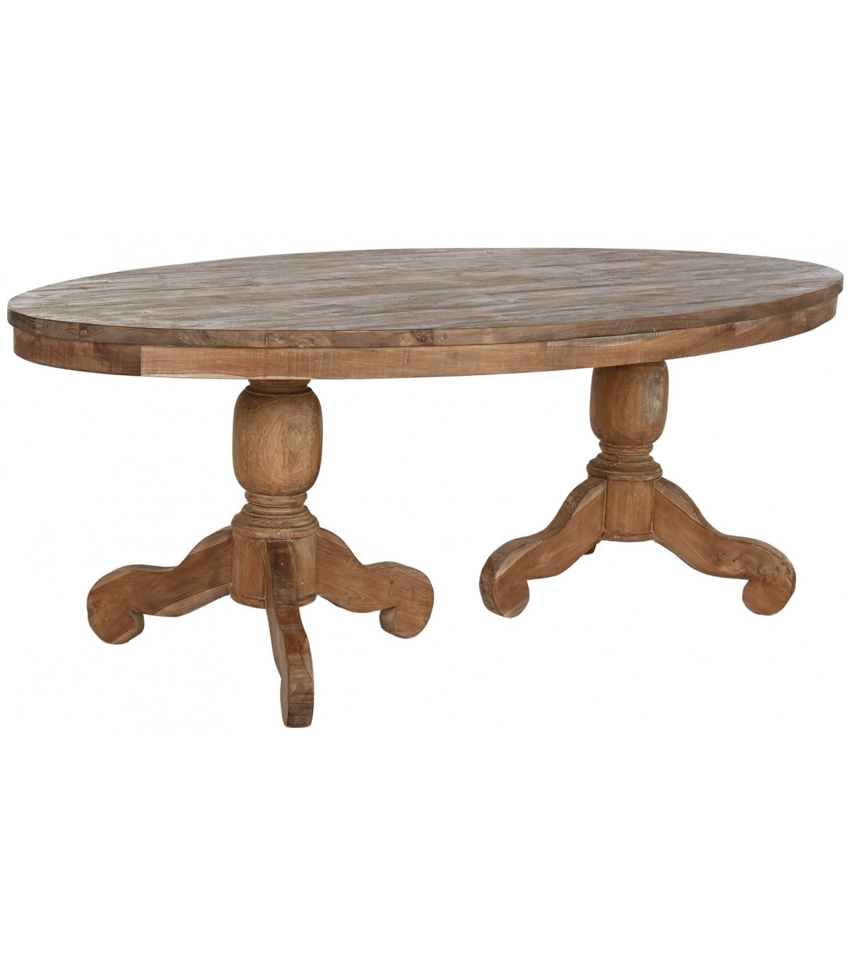 MESA COMEDOR OVALADA 220 X 110 X 78 SALPA MADERA TECA NATURAL TALLADA A MANO