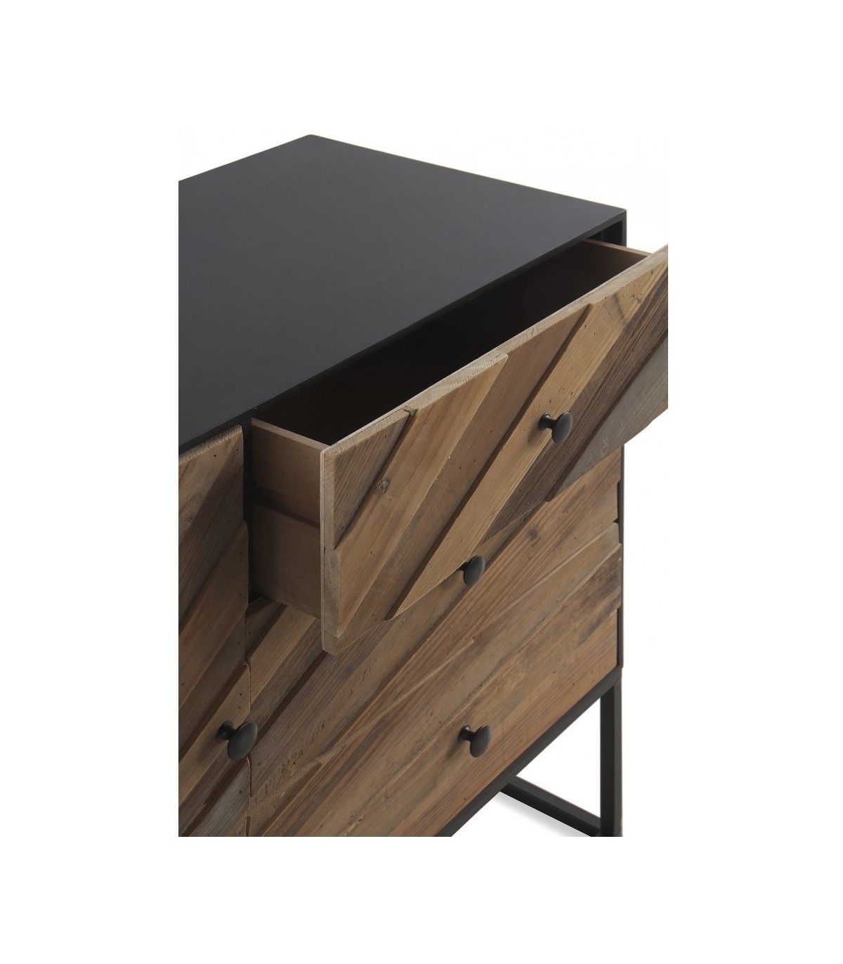 - Acabado, metal negro, madera acabada vintage con lamas en distintos colores.