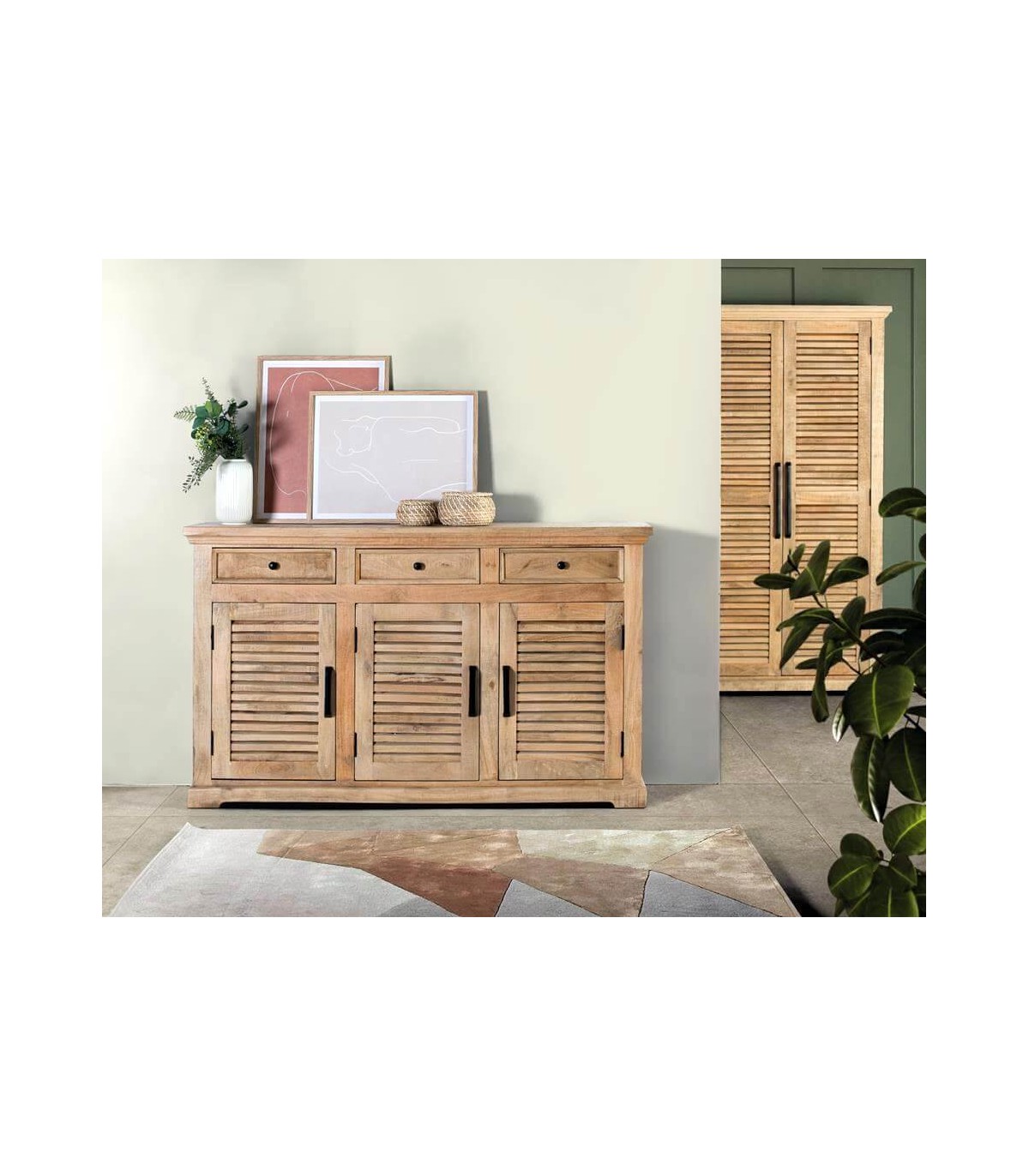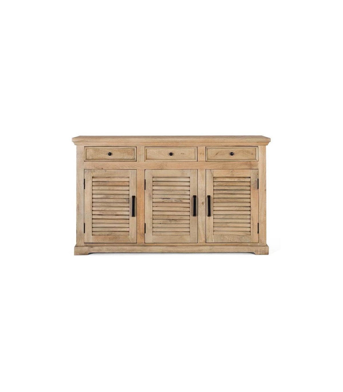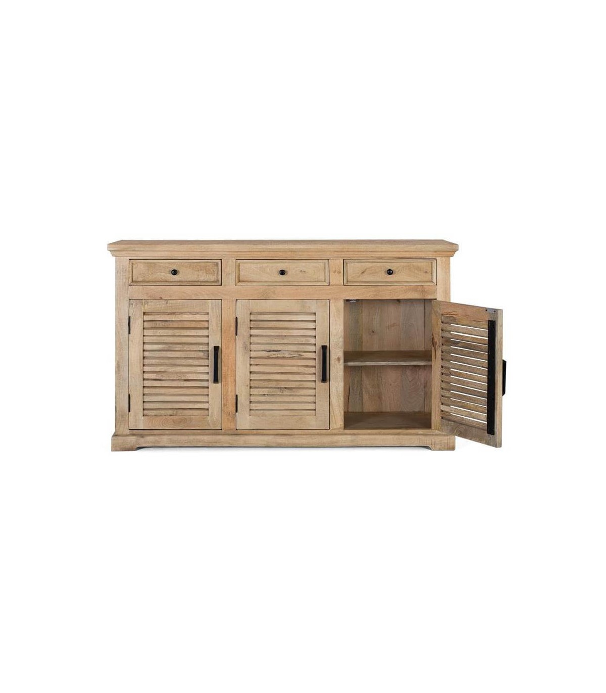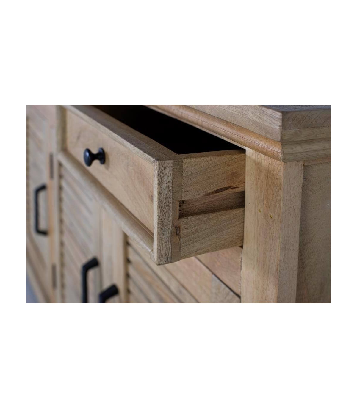 Aparador de nuestra colección de muebles Basana, una colección muy fresca y actual, realizada artesanalmente en madera maciza de mango acabado natural con los tiradores en hierro color negro, de inspiración colonial aporta naturalidad y luminosidad a tu decoración,