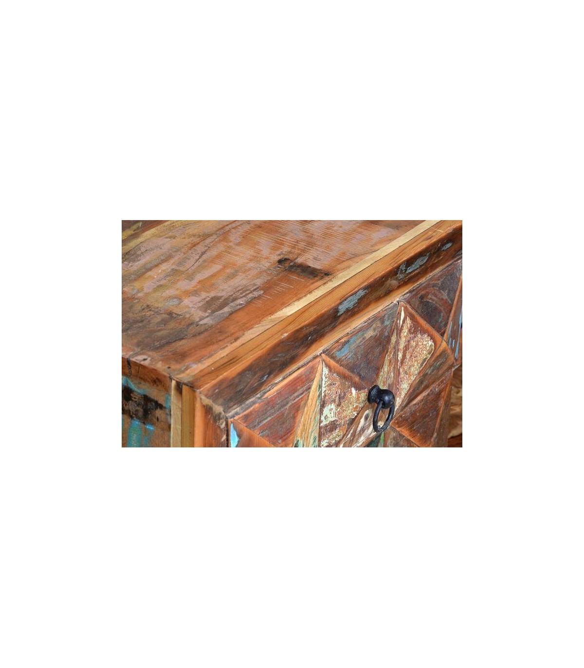Acabado, madera natural decapada en multicolor, herraje y tiradores en metal negro. Fabricación artesanal. entendemos las variaciones de tonalidad, tamaño y forma o ciertas imperfecciones (grietas, nudos, marcas) como un valor añadido que la convierten en pieza única.