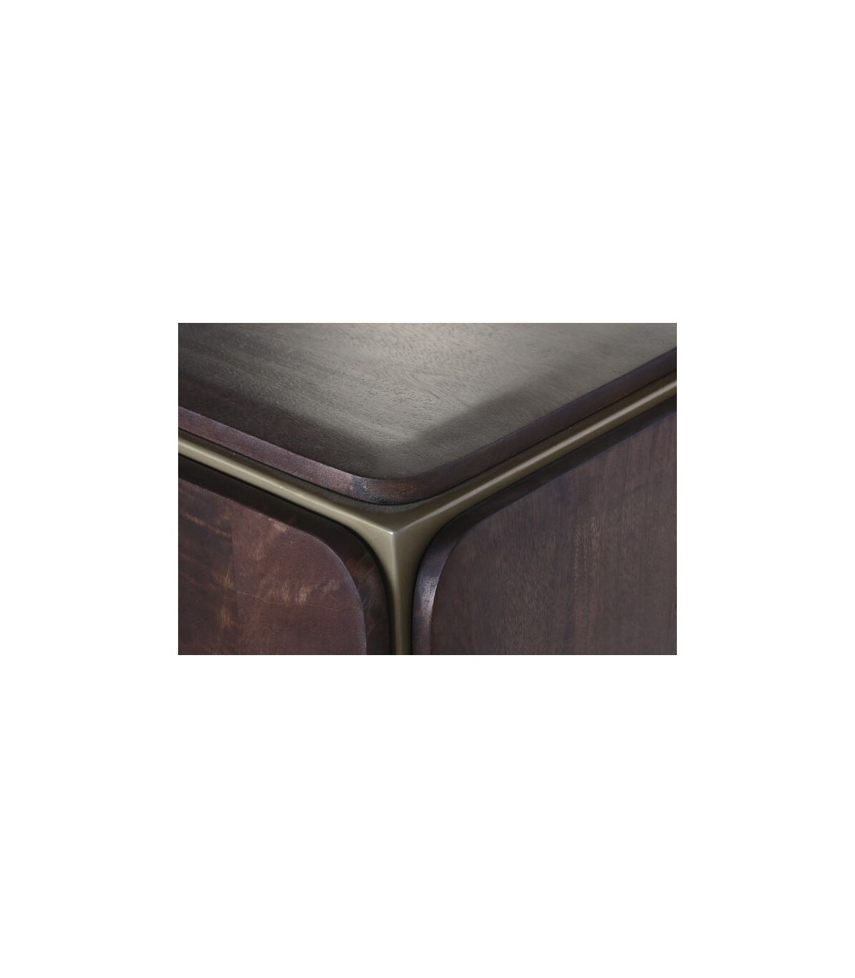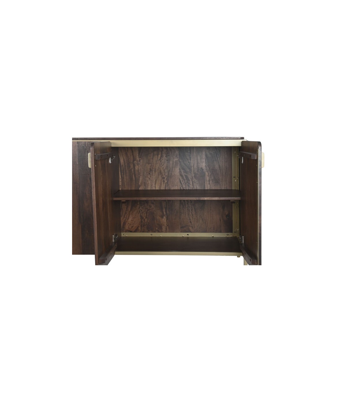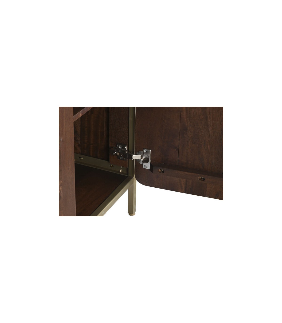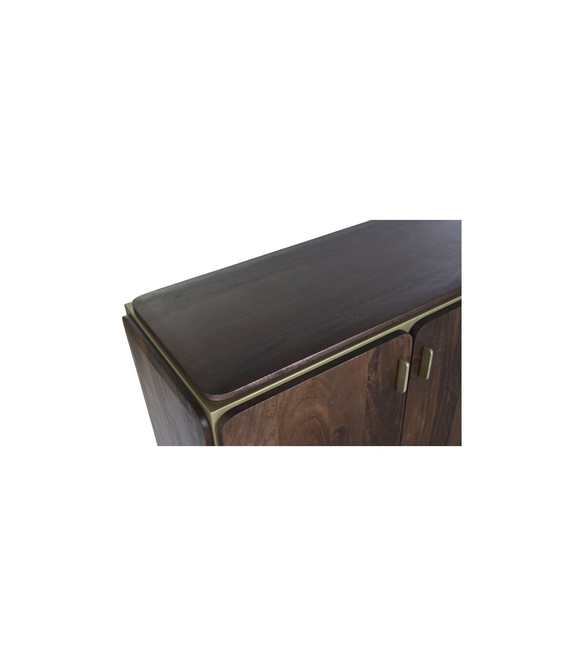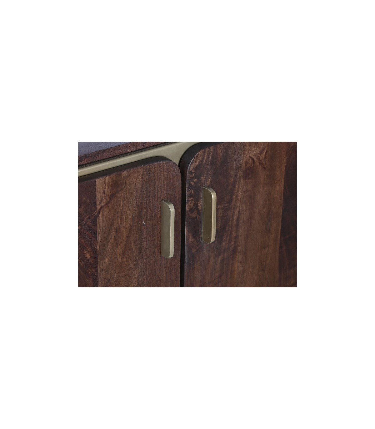 Aparador estilo colonial, acabado en madera de mango color nogal y acero color dorado, un aparador cálido, elegante de gran capacidad.