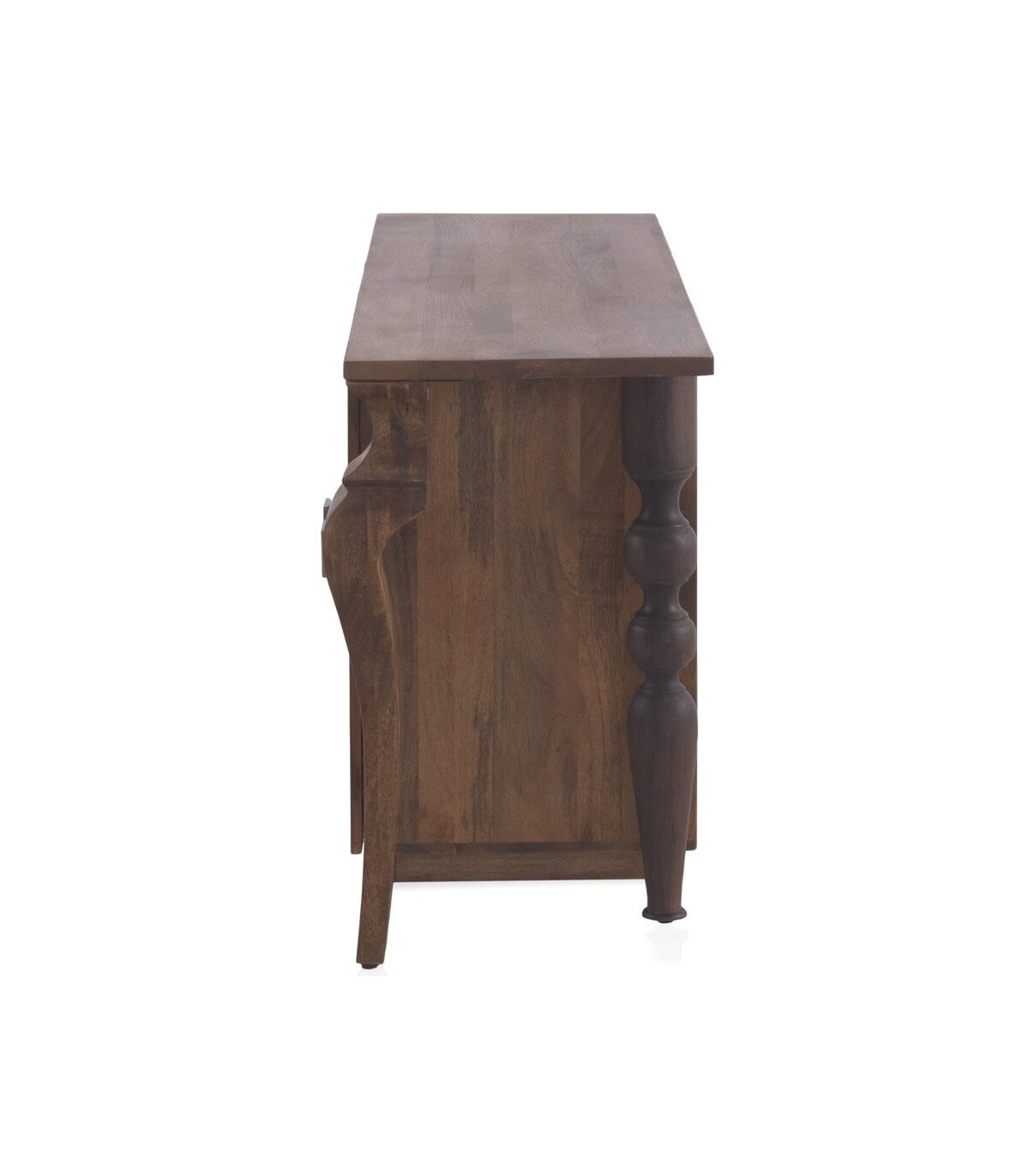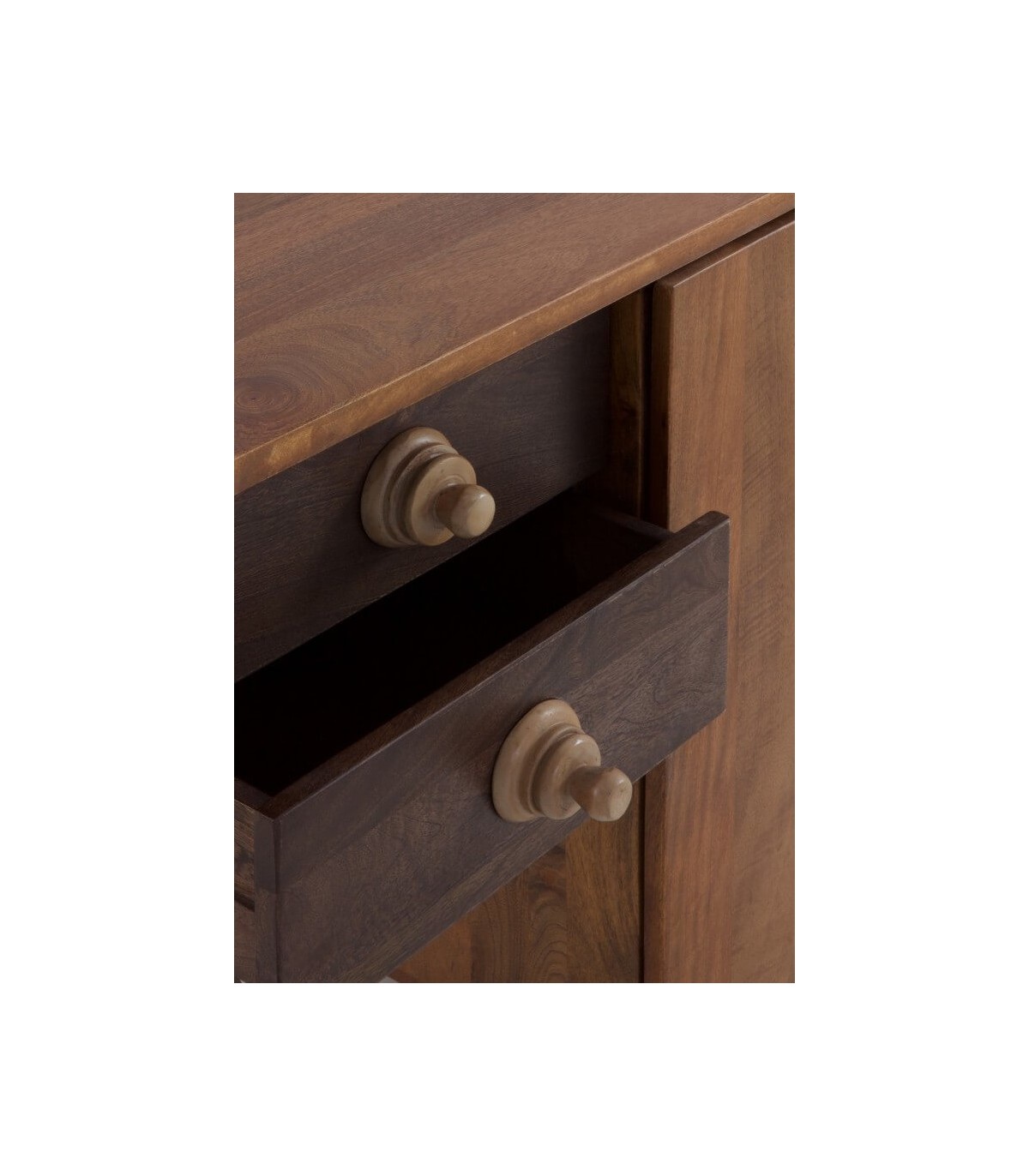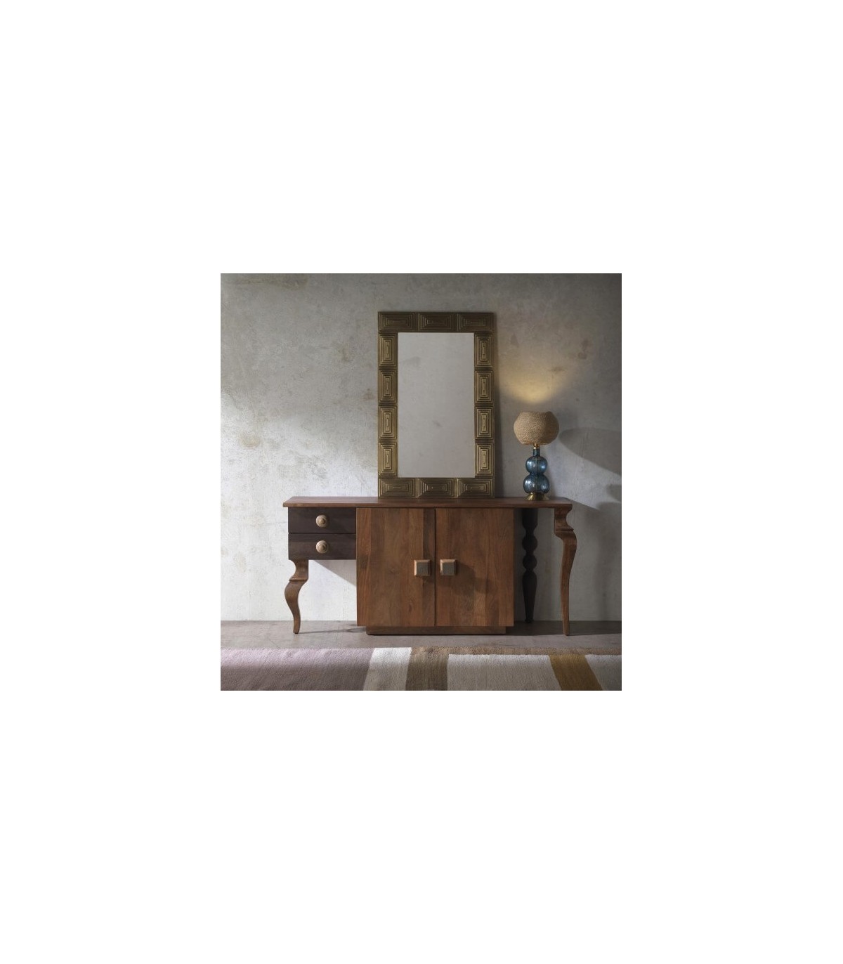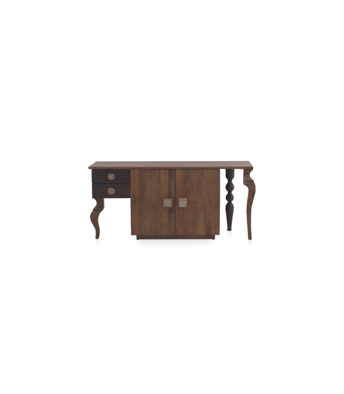 Aparador muy original realizado en madera de acacia totalmente asimétrico, con las patas con distintos torneados, un diseño picassiano que hará las delicias de los más atrevidos.