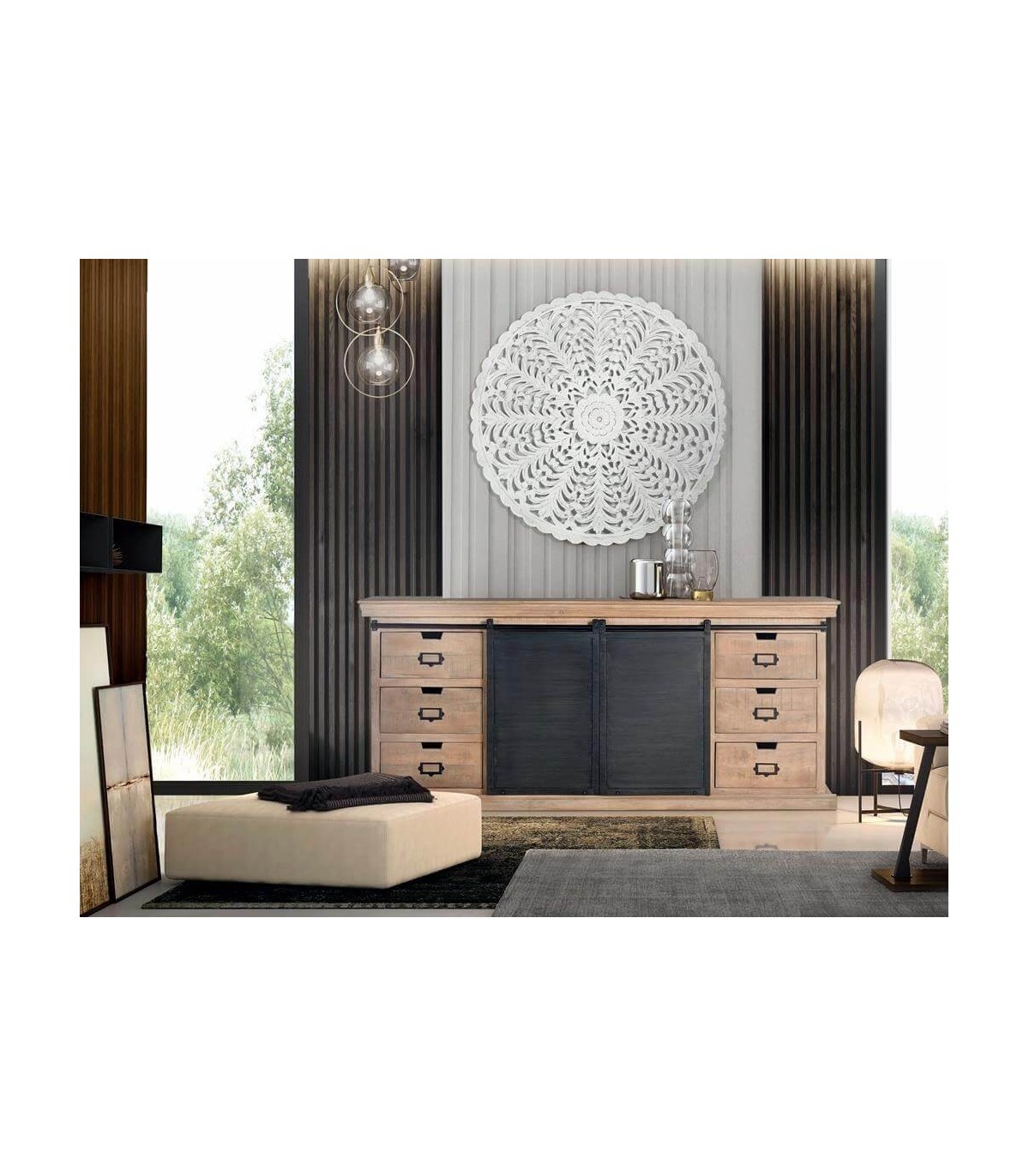 - Aparador, 6 cajones, 2 puertas correderas, estilo industrial.