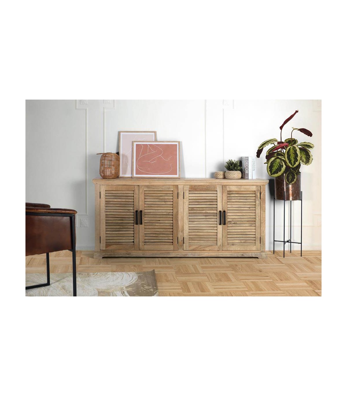 Aparador de nuestra colección de muebles Basana, una colección muy fresca y actual, realizada artesanalmente en madera maciza de mango acabado natural con los tiradores en hierro color negro, de inspiración colonial aporta naturalidad y luminosidad a tu decoración,