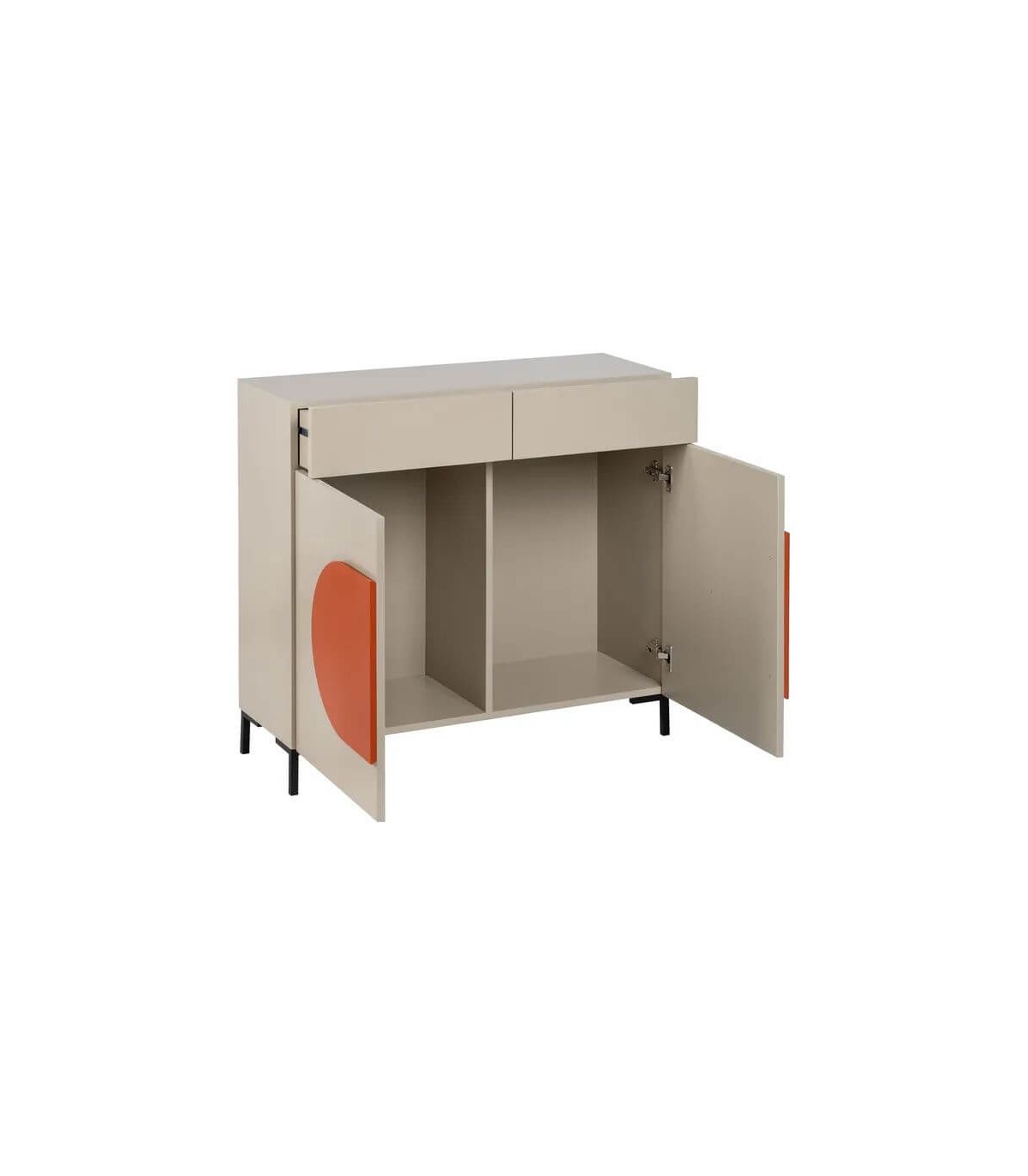 APARADOR 90 X 32 X 86 DECTO MADERA LACADA TOPO Y NARANJA