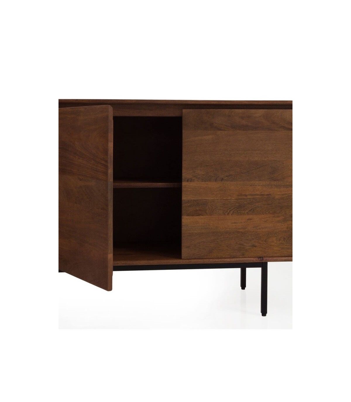Aparador combinando los dos materiales de estilo industrial por excelencia, buena capacidad, ideal para salones desenfadados.