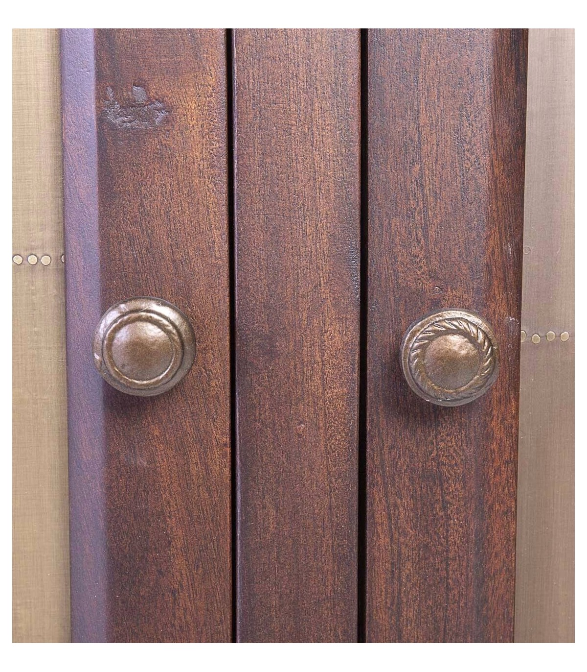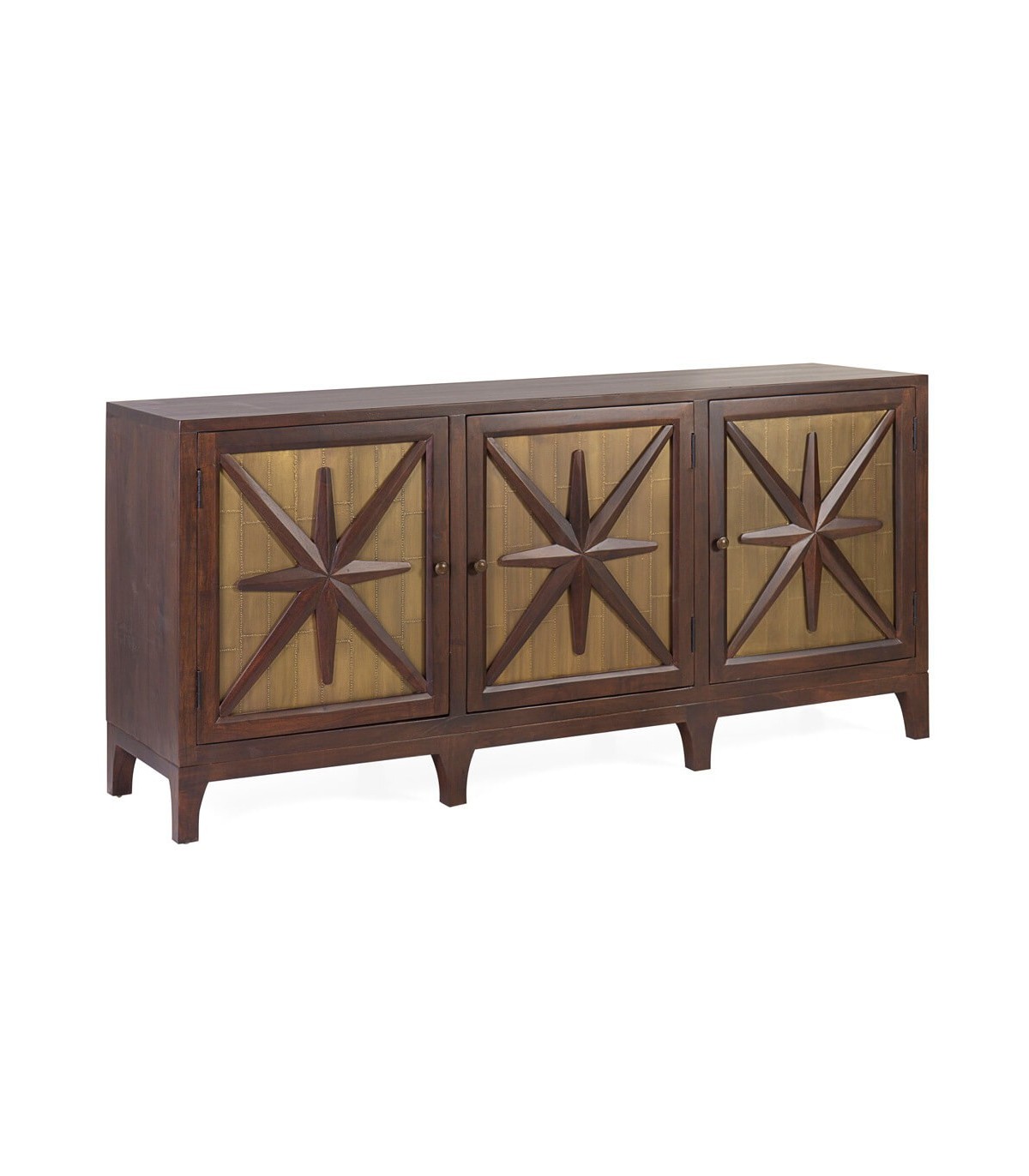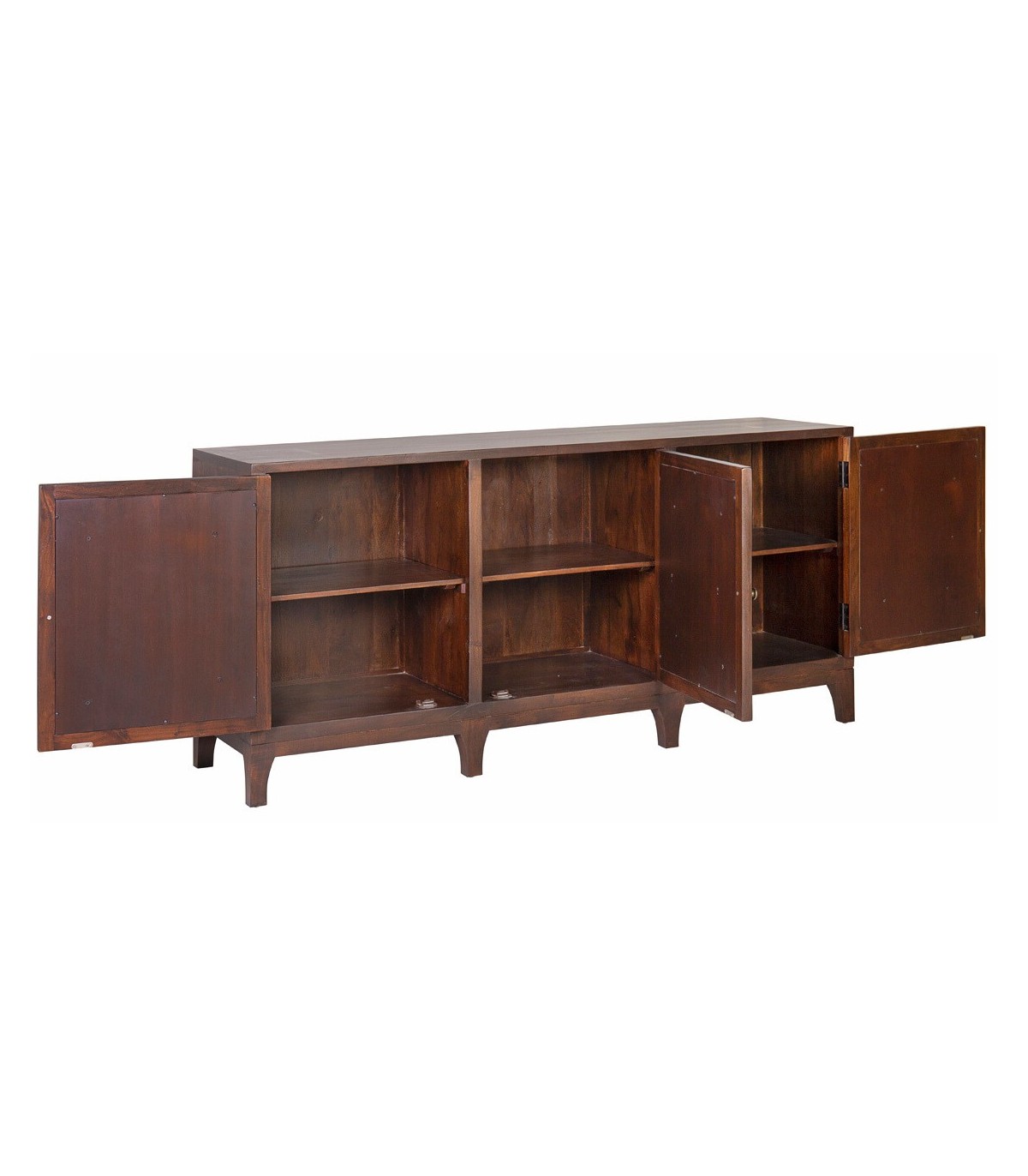 Aparador en madera maciza de acacia en dos tonos, nogal y oro viejo, de estilo contemporáneo, un mueble muy estilizado, decorativo y de gran capacidad, perfecto para esa nota elegante y cálida que aporta el color caoba, un mueble perfecto para un gran salón.