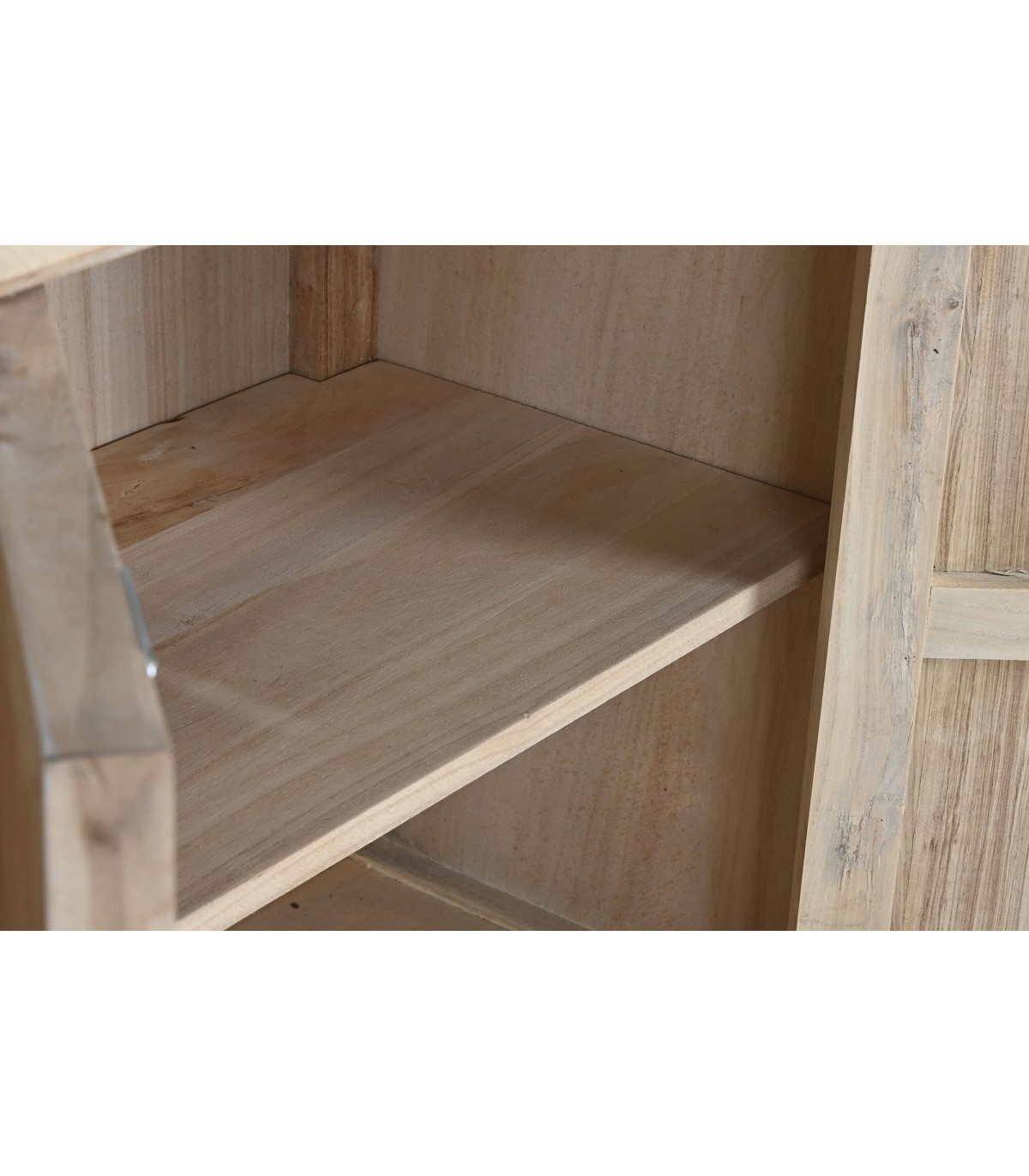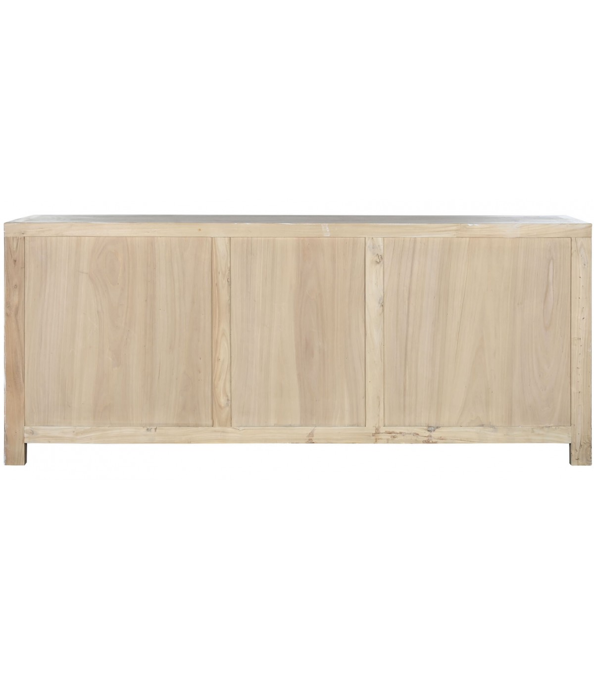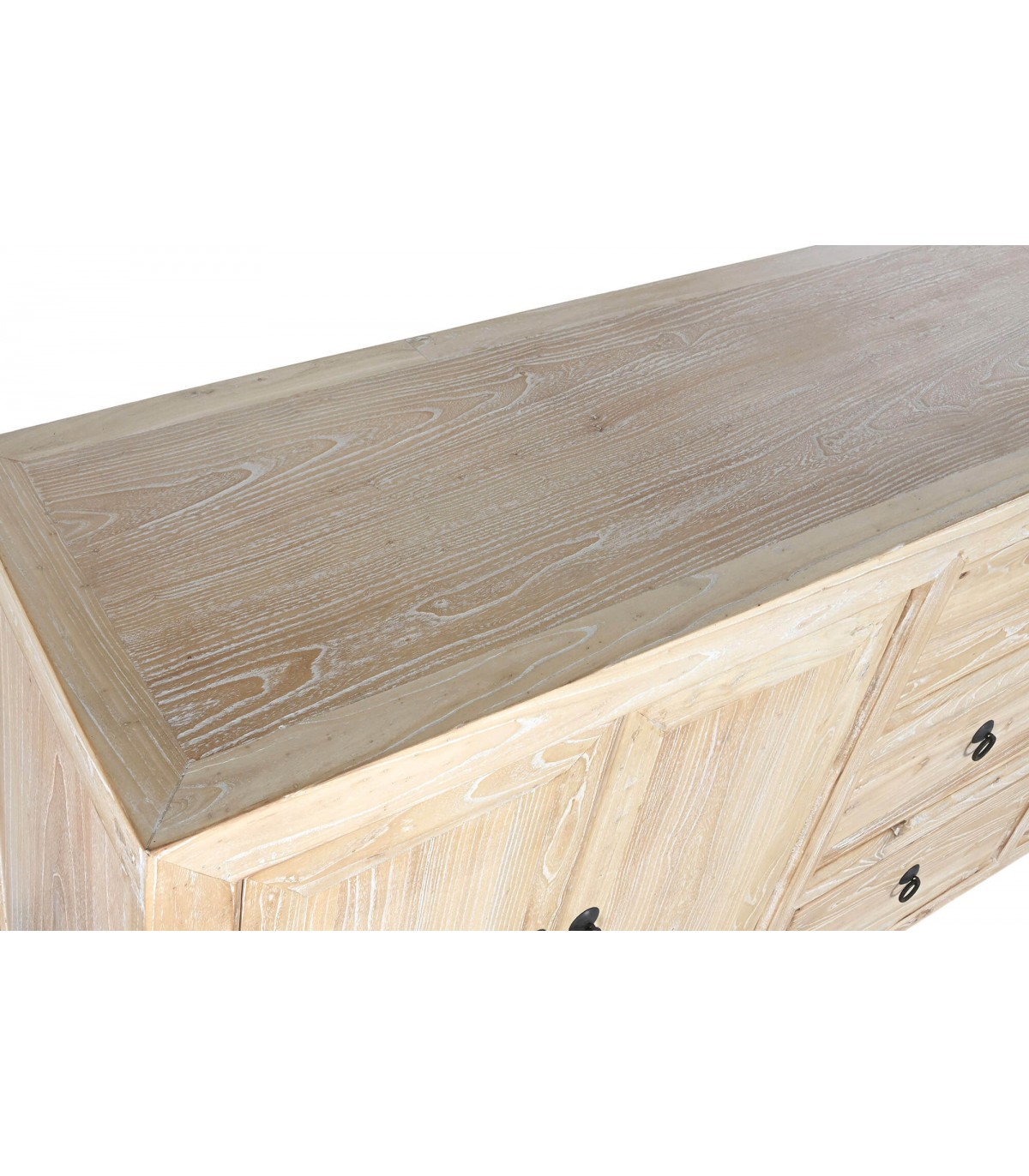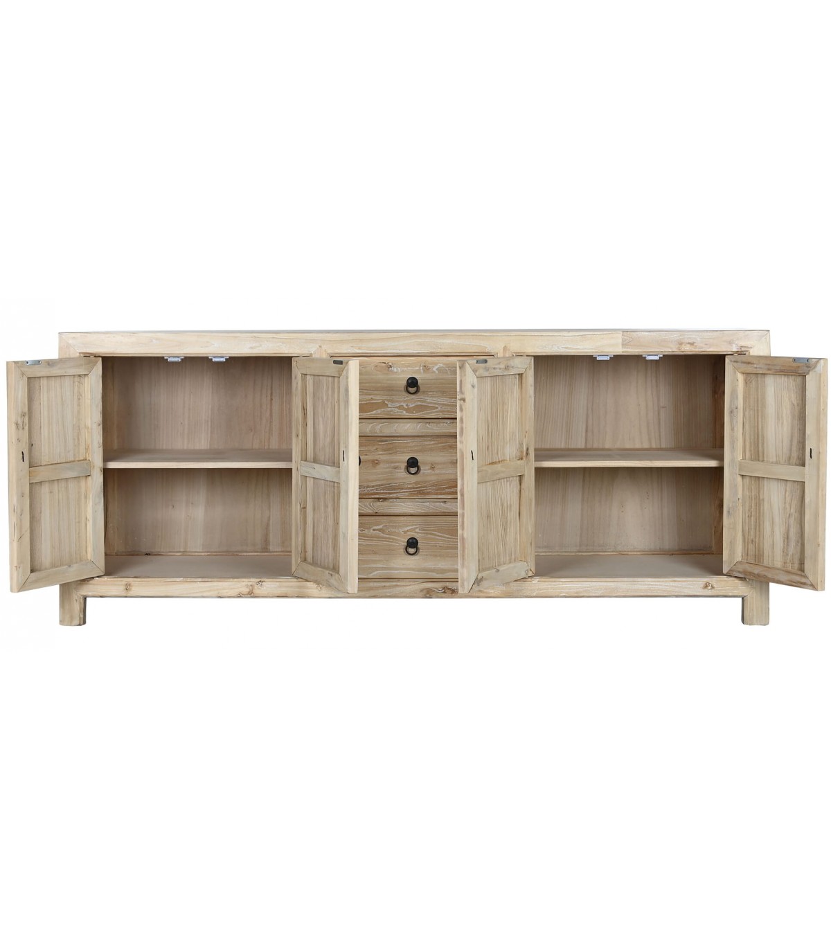 Aparador grande con 4 puertas y 3 cajones realizado en madera de olmo reciclada natural patinada en blanco, tiradores en bronce pavonado, un mueble de gran capacidad adaptable a cualquier tipo de decoración como pieza singular.