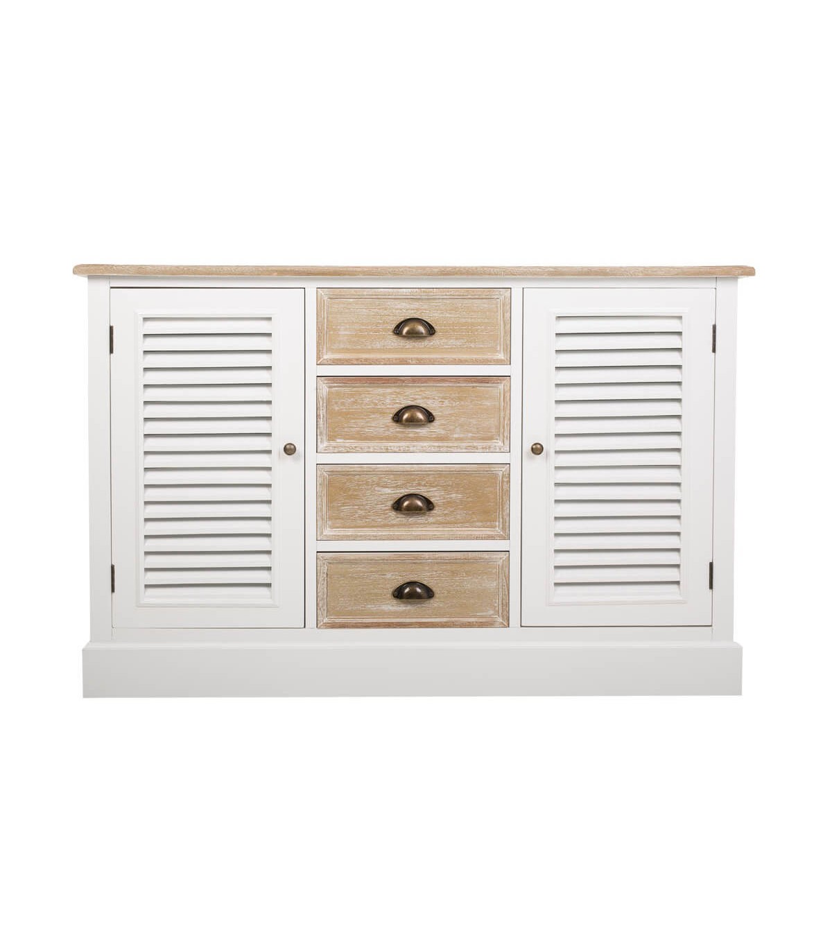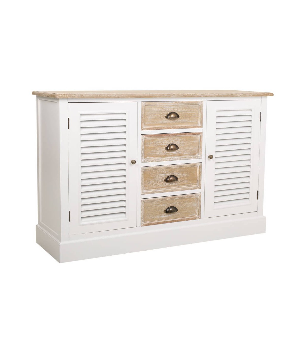 Este aparador de líneas limpias y alma campestre equilibra frescura, calidez y funcionalidad. Su estructura combina madera de pino y abeto con detalles metálicos que evocan la estética de los hogares rurales elegantes. Los cajones en madera natural lavada contrastan con el cuerpo blanco, aportando luz y serenidad al espacio. Los tiradores de latón pavonado realzan su encanto tradicional y completan una composición equilibrada. Perfecto para ambientes de inspiración provenzal o nórdica, donde prima la naturalidad. Una pieza versátil que transmite calma y autenticidad.
