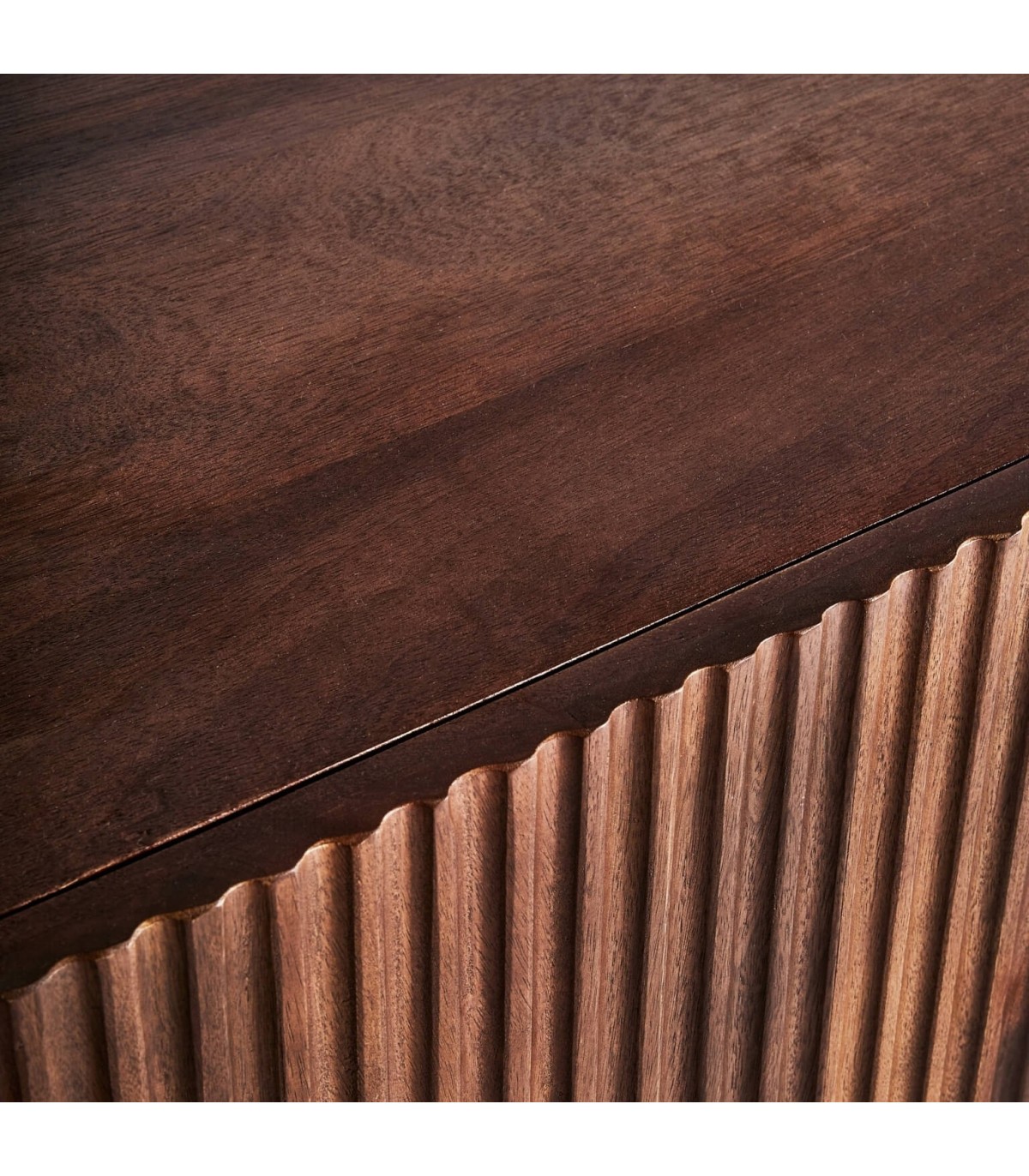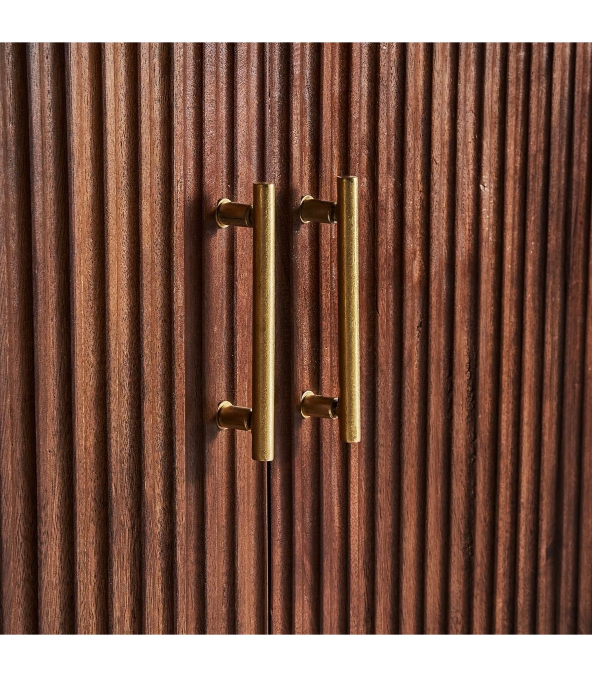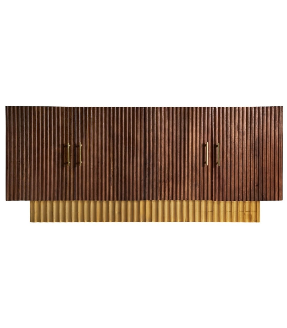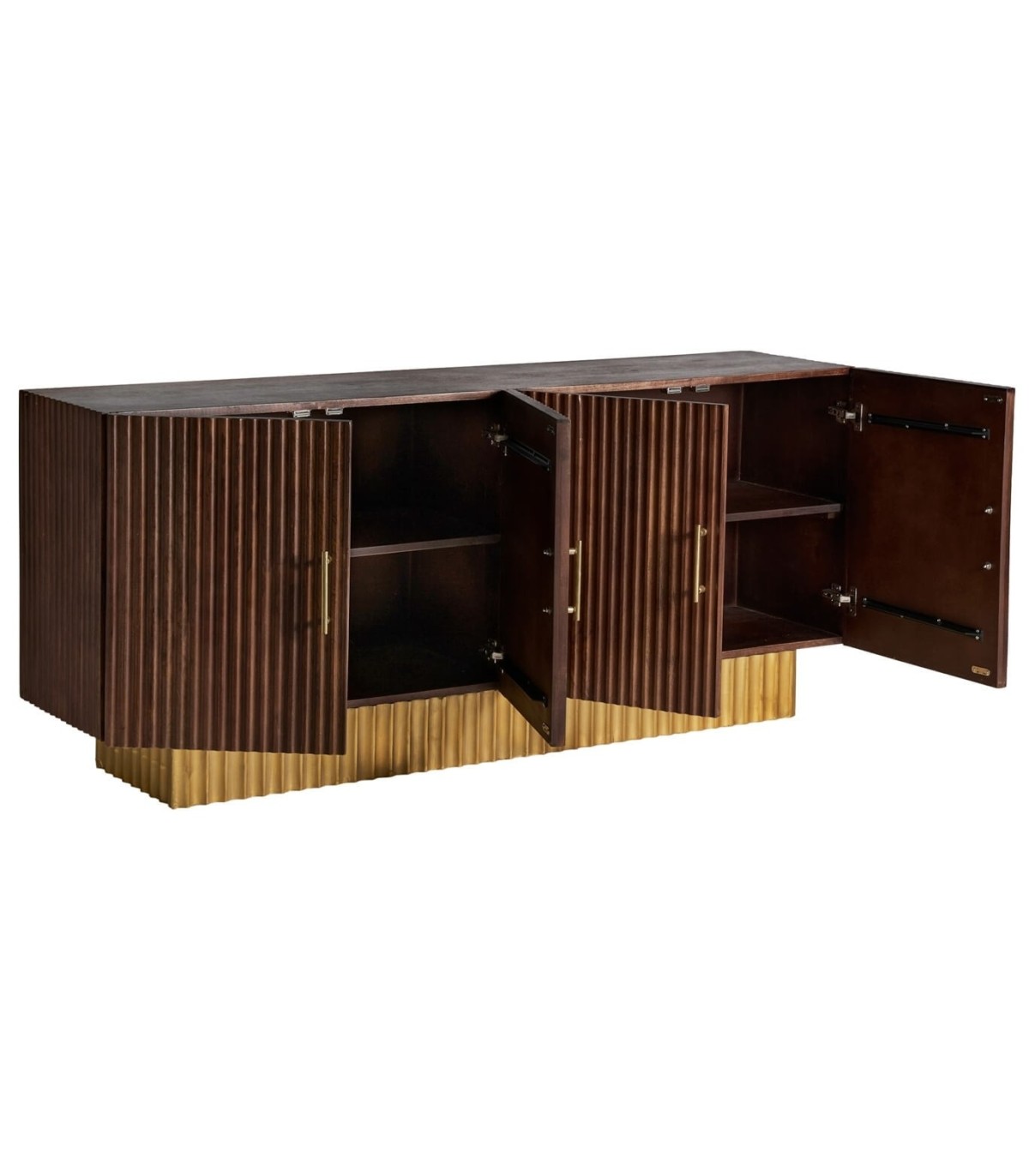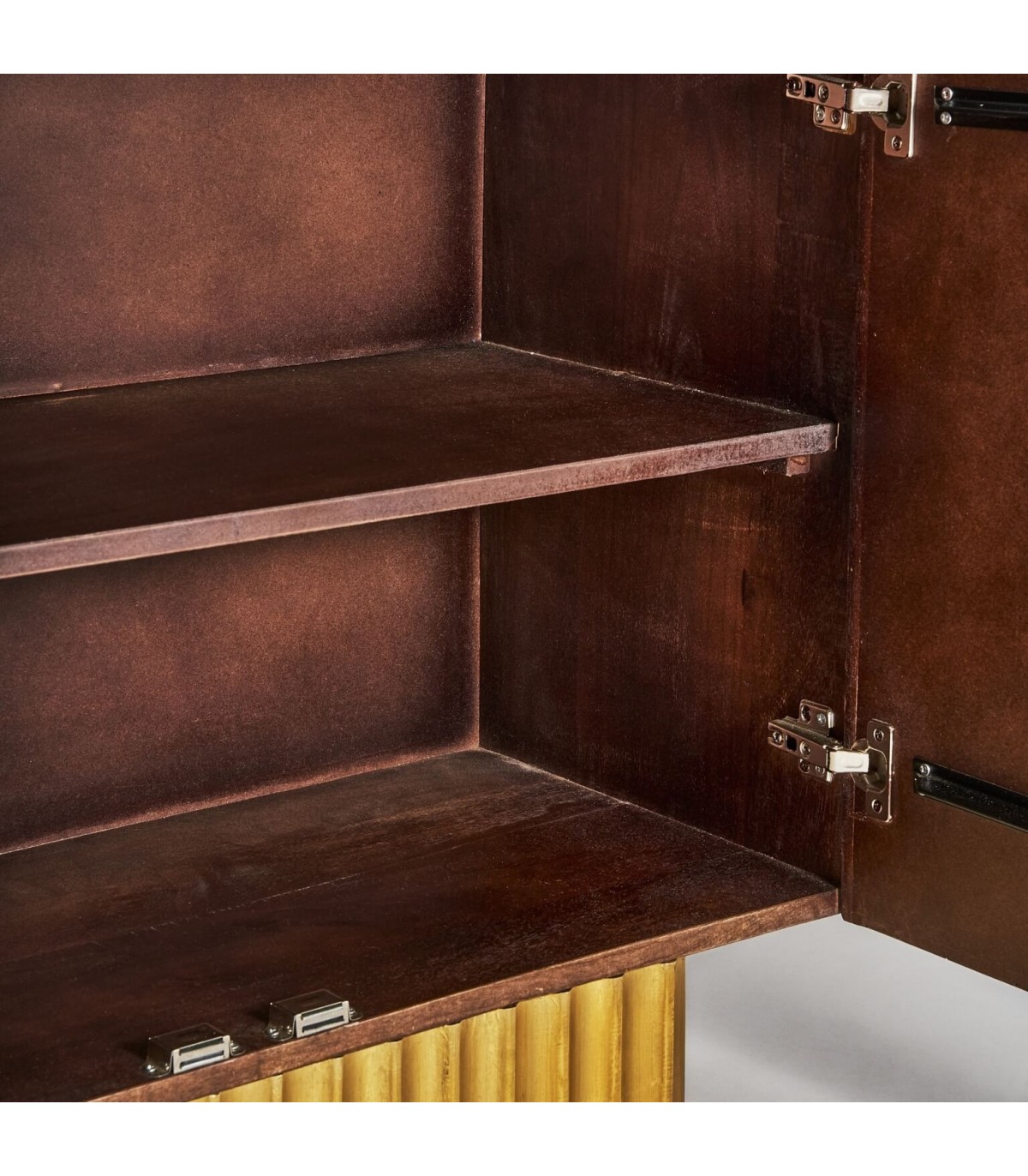 • Acabado, cuerpo madera de mango color nogal, zócalo oro, tiradores a juego.