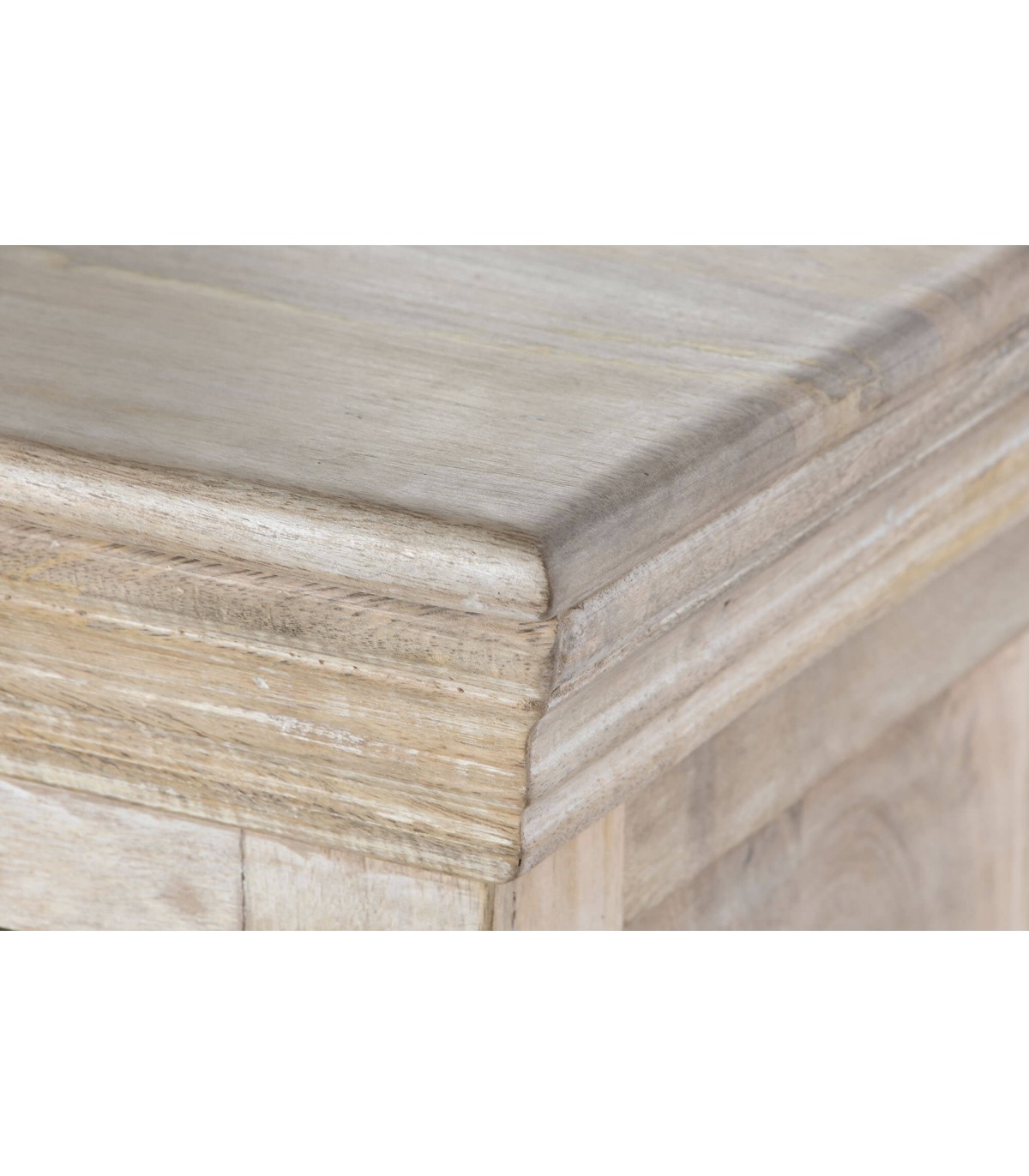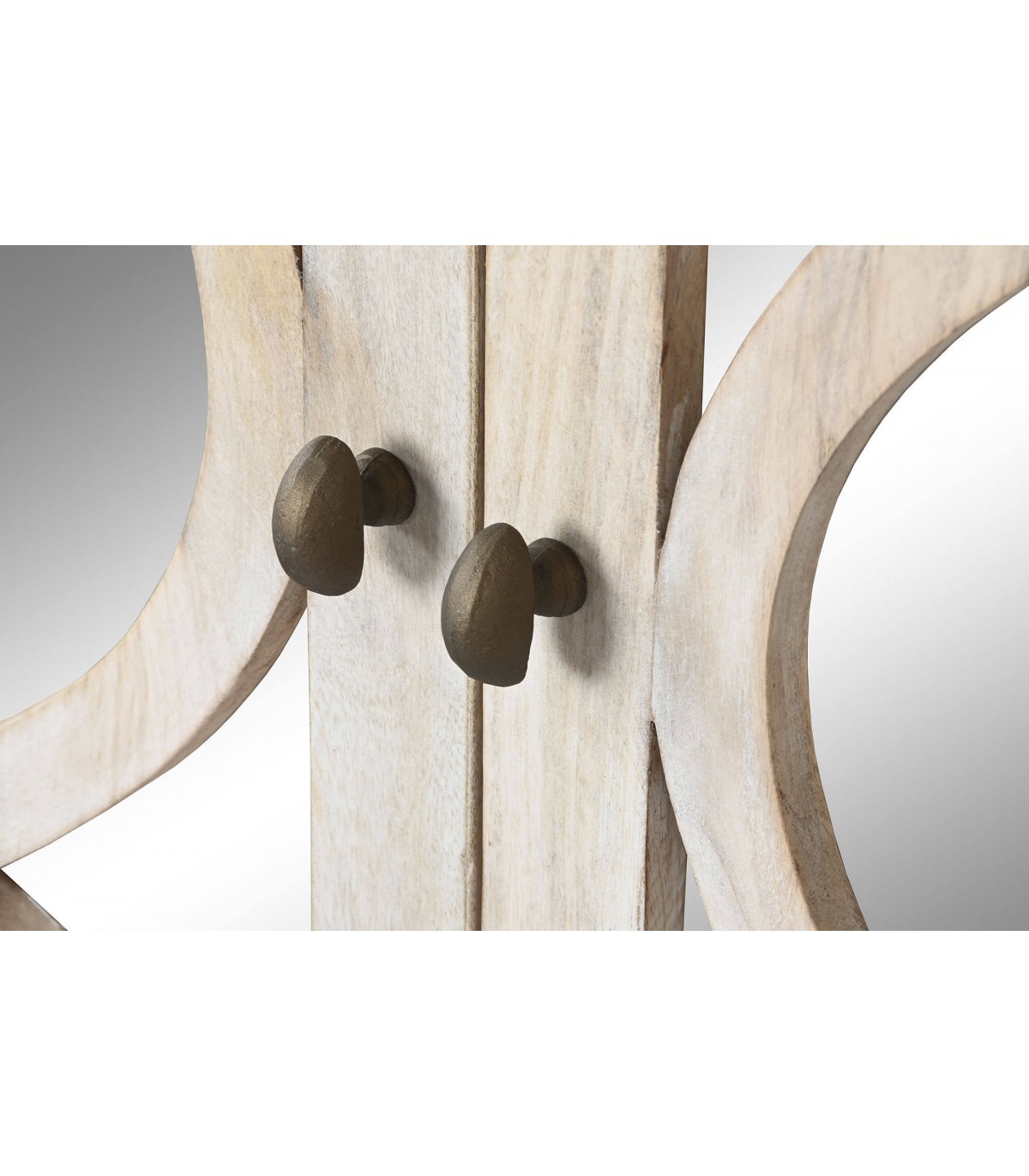 - Acabado, madera de mango natural, puertas con espejo, tiradores metal bronce. Fabricación artesanal. entendemos las variaciones de tonalidad, tamaño y forma o ciertas imperfecciones (grietas, nudos, marcas) como un valor añadido que la convierten en pieza única.