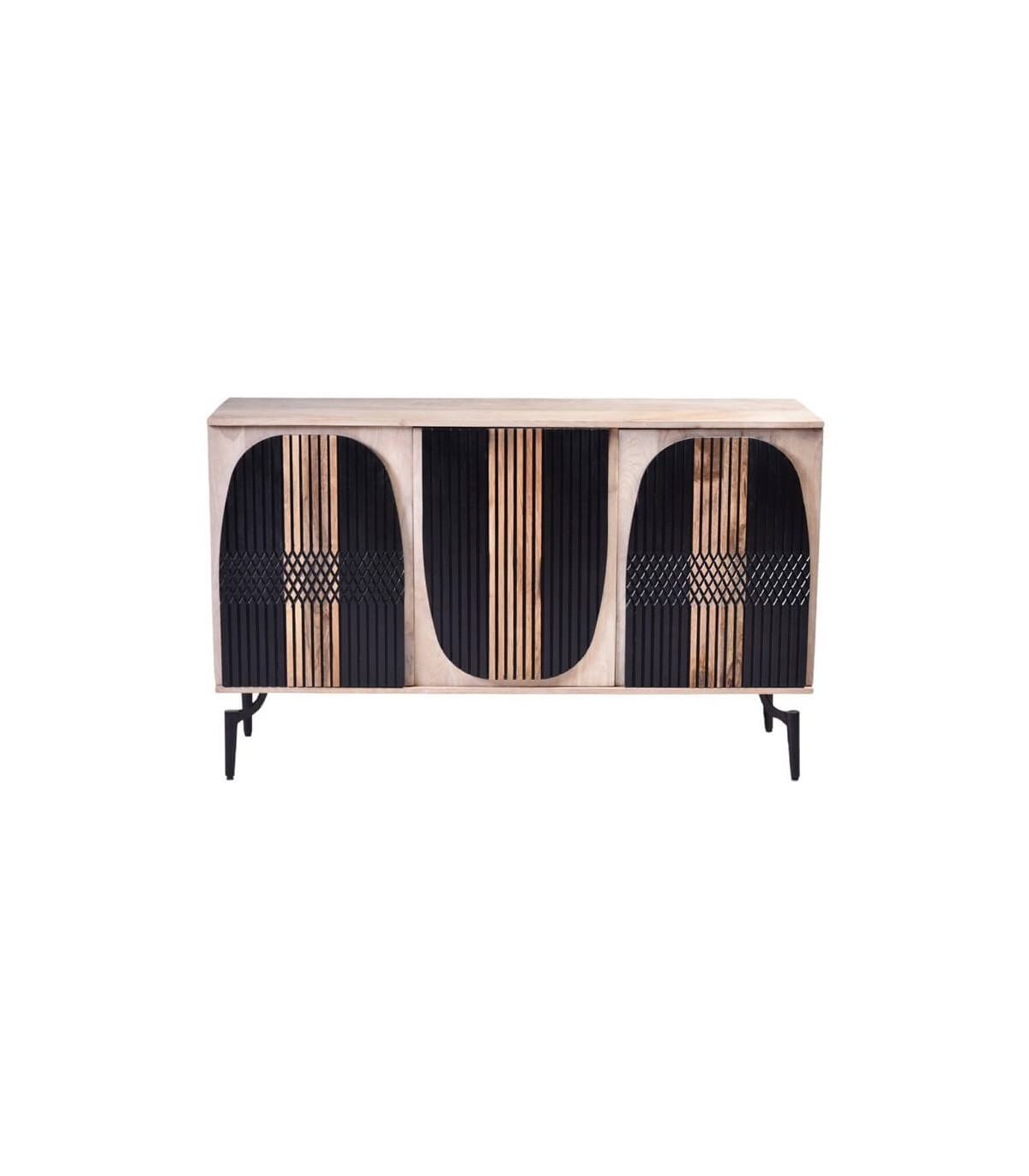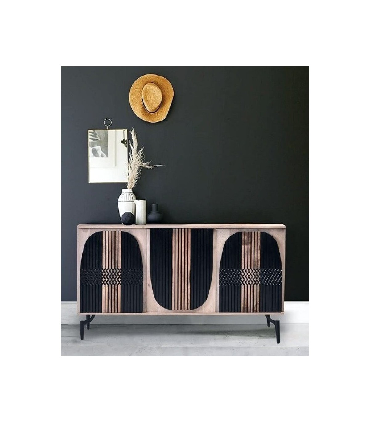 Aparador pequeño muy original, con 3 puertas y de estilo industrial chic, es un mueble con un toque diferente y elegante con la combinación de la madera natural y el negro, perfecto para tu comedor.