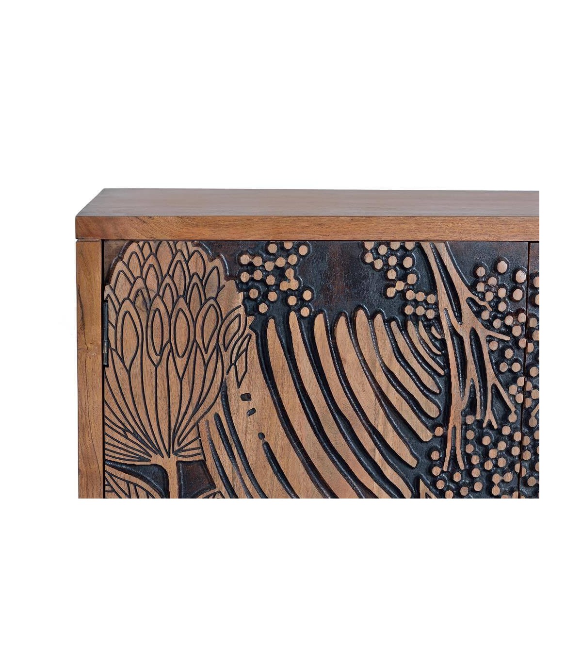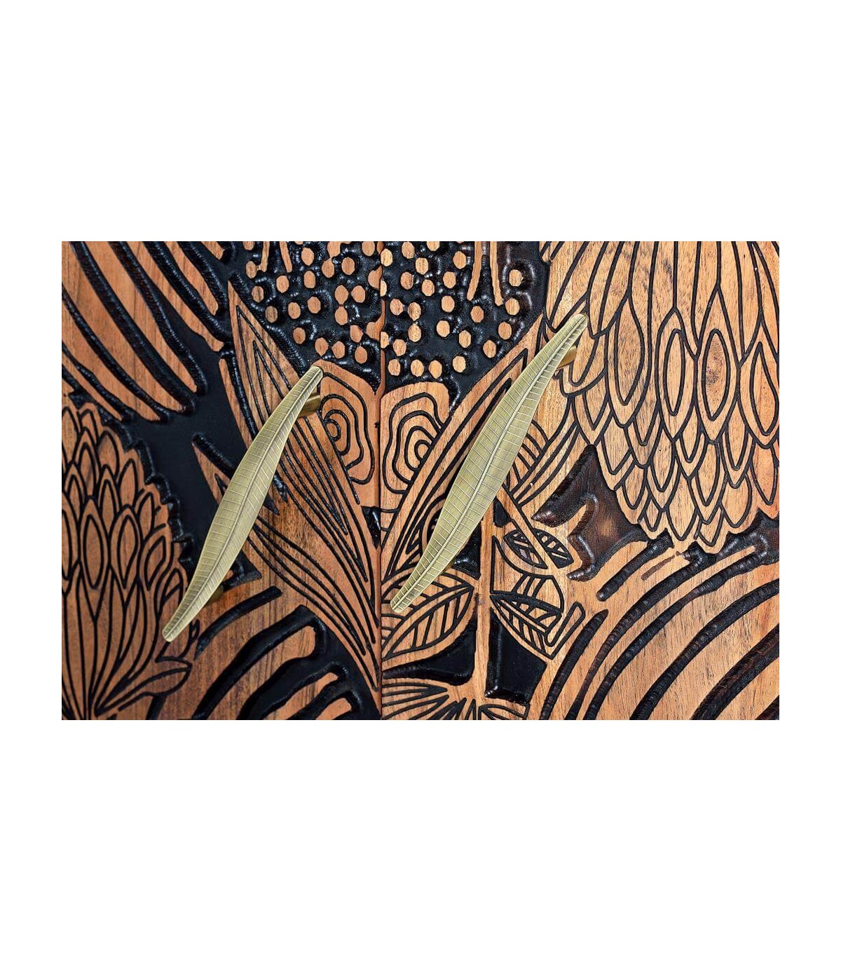 APARADOR 190 X 42 X 94 PROTOS MADERA ACACIA TALLADA NATURAL Y NEGRO
