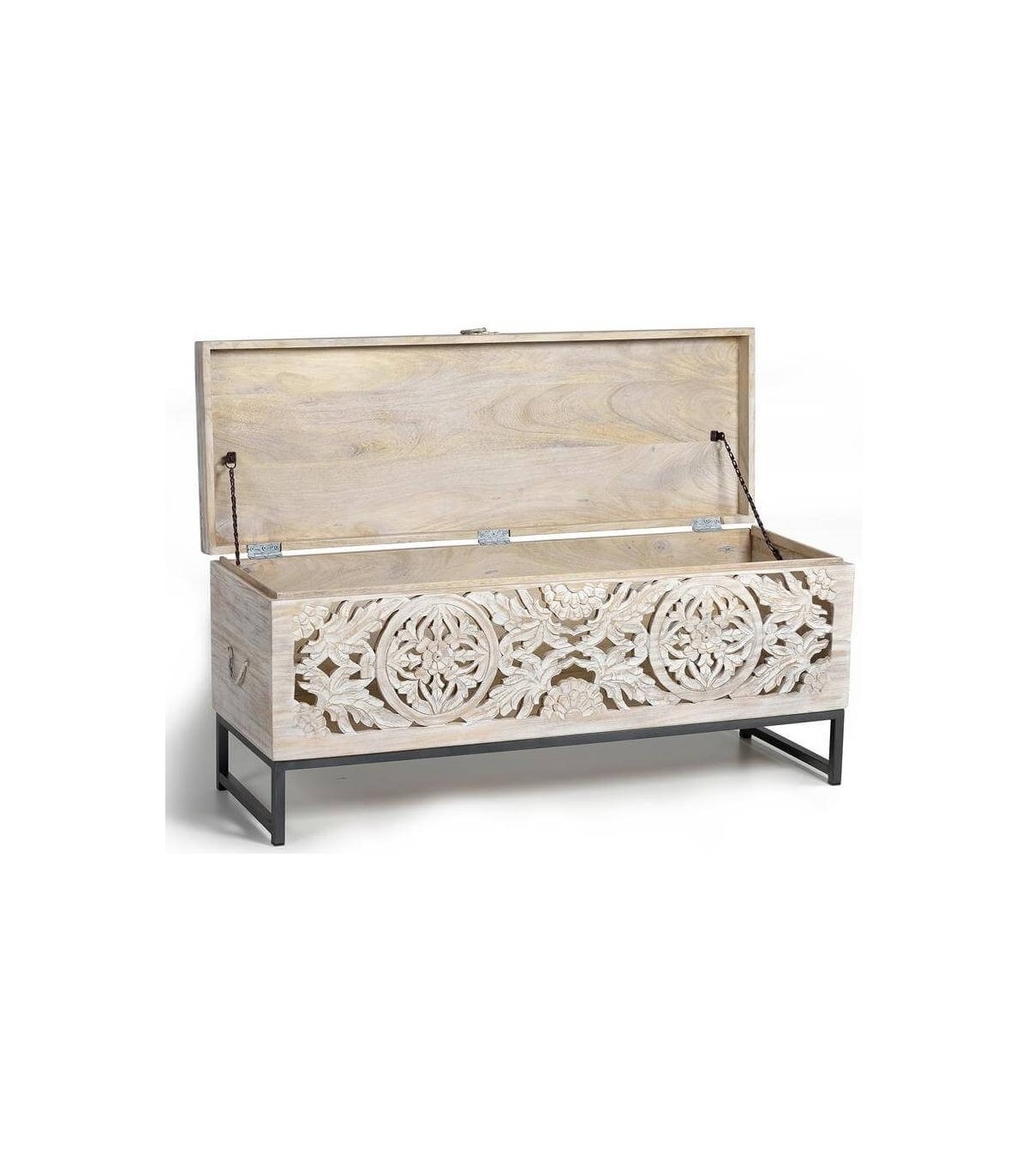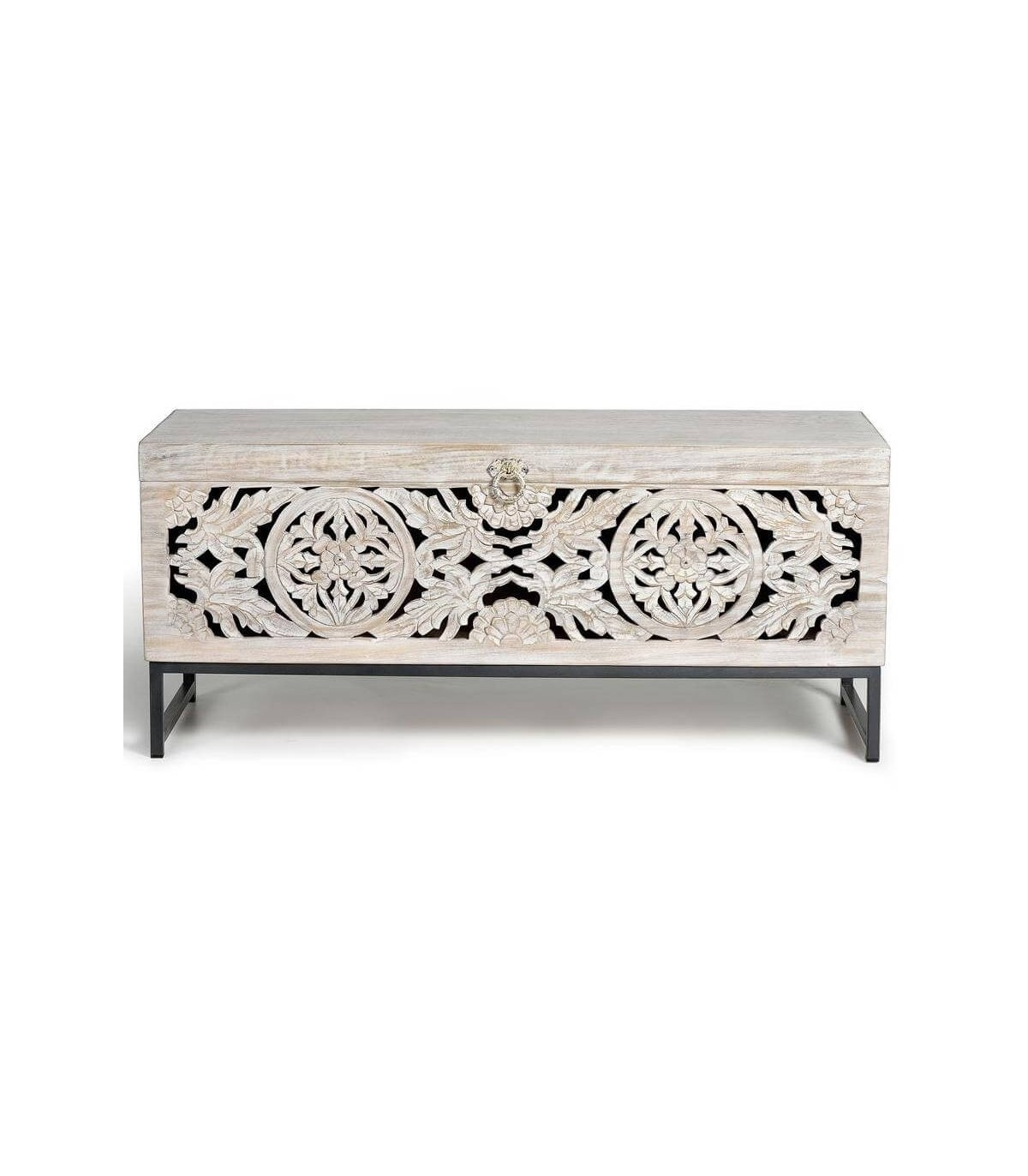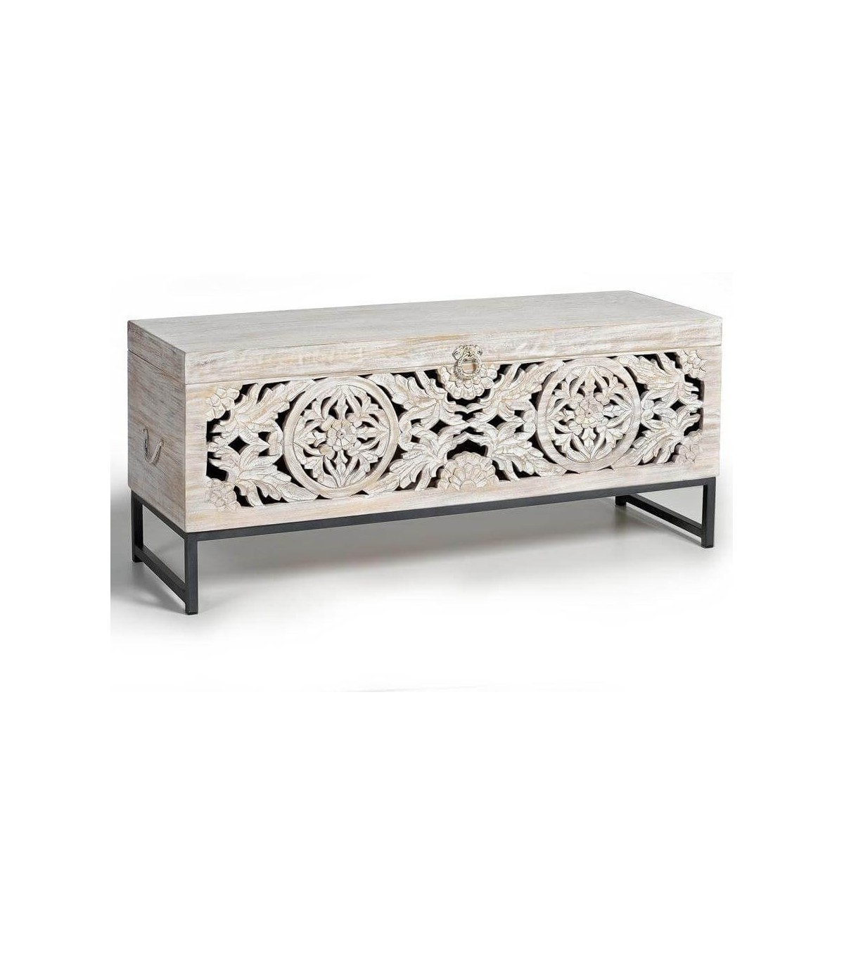 🎨 Acabado: Madera natural tallada blanqueada, base metal gris.