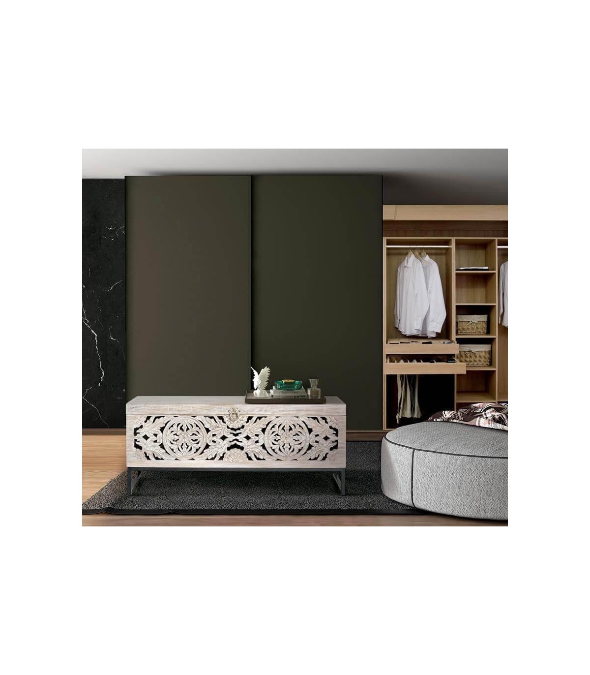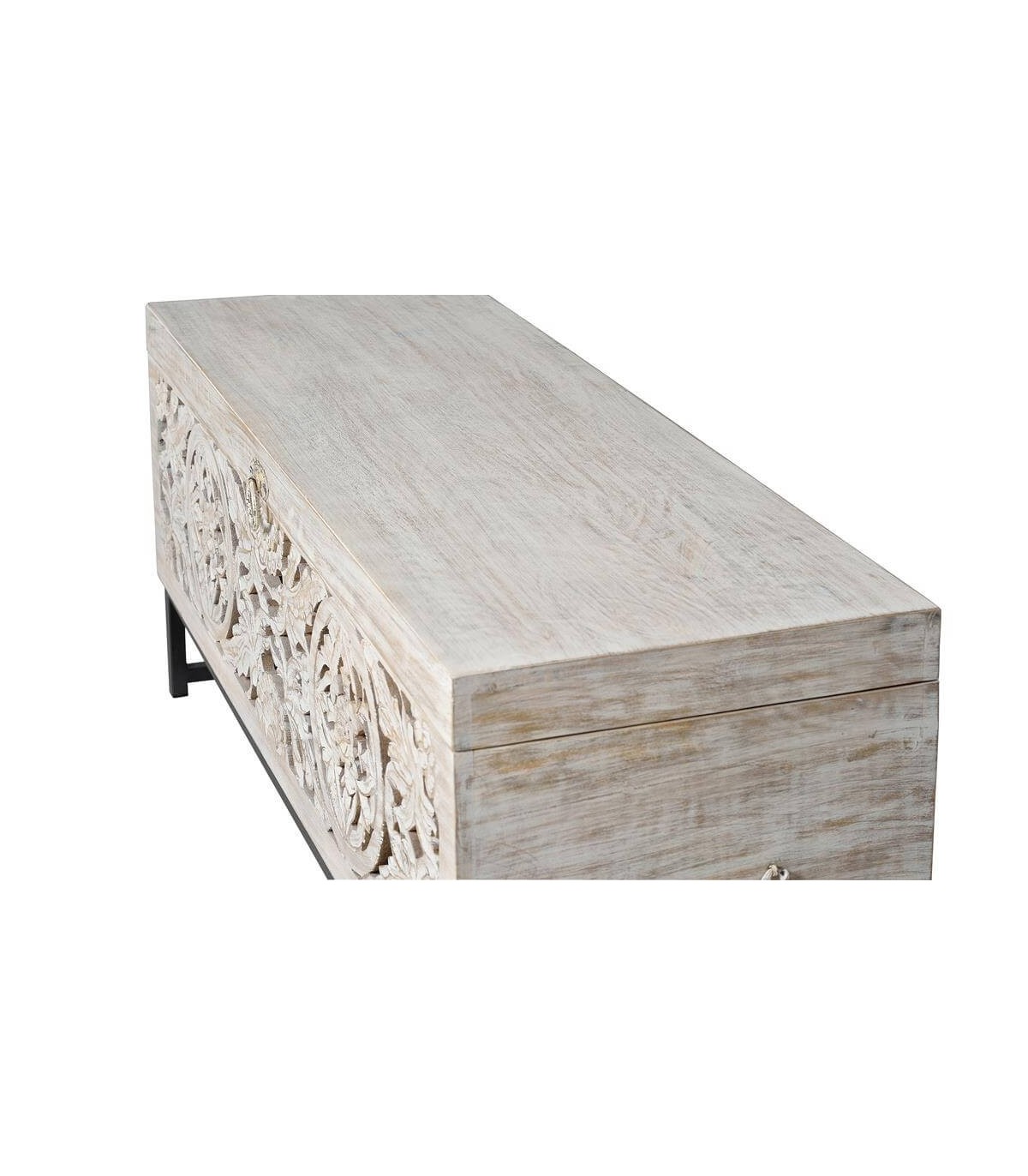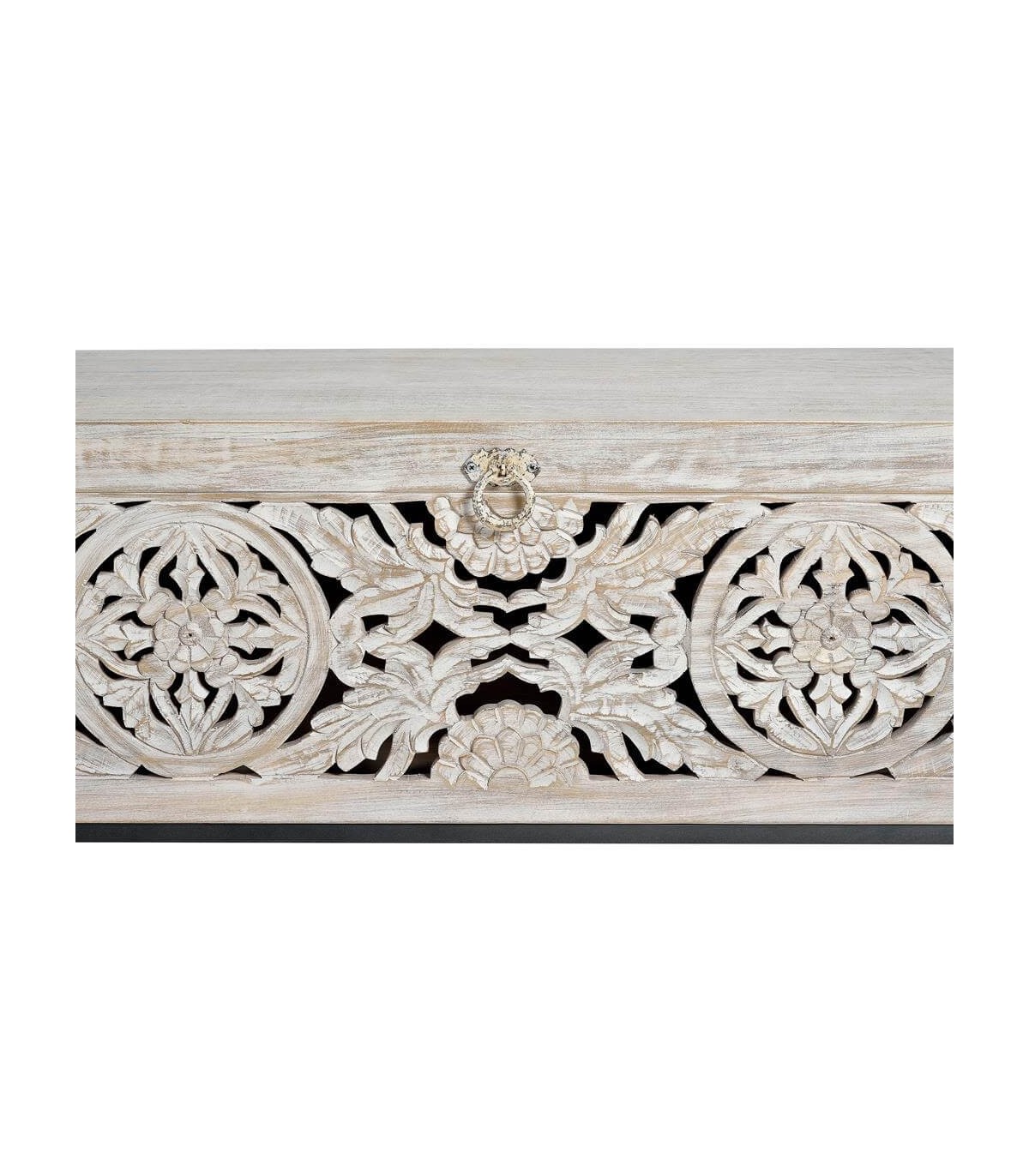 🎨 Acabado: Madera natural tallada blanqueada, base metal gris.