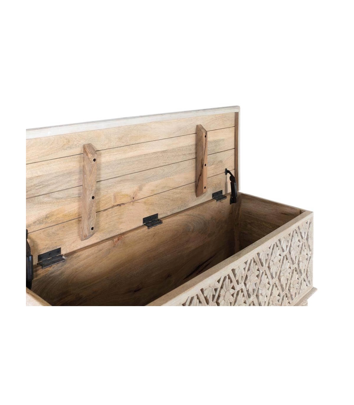 BAUL 116 X 40 X 45 PAKIS MADERA TALLADA ACABADA EN BLANCO