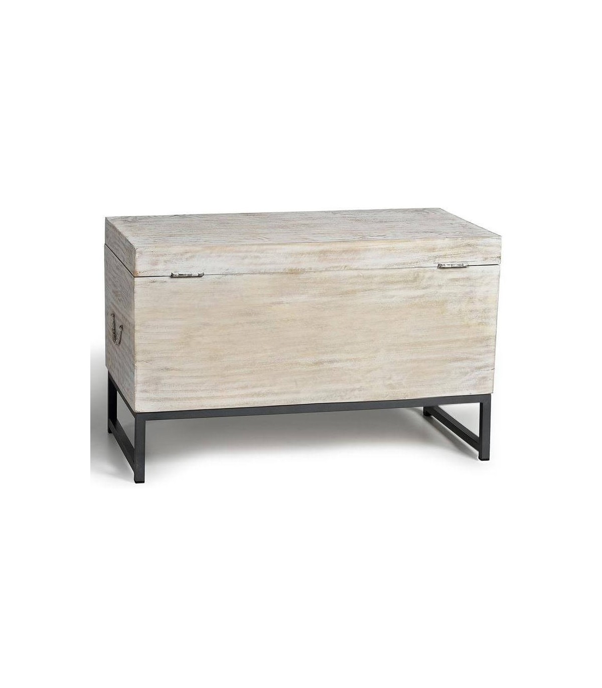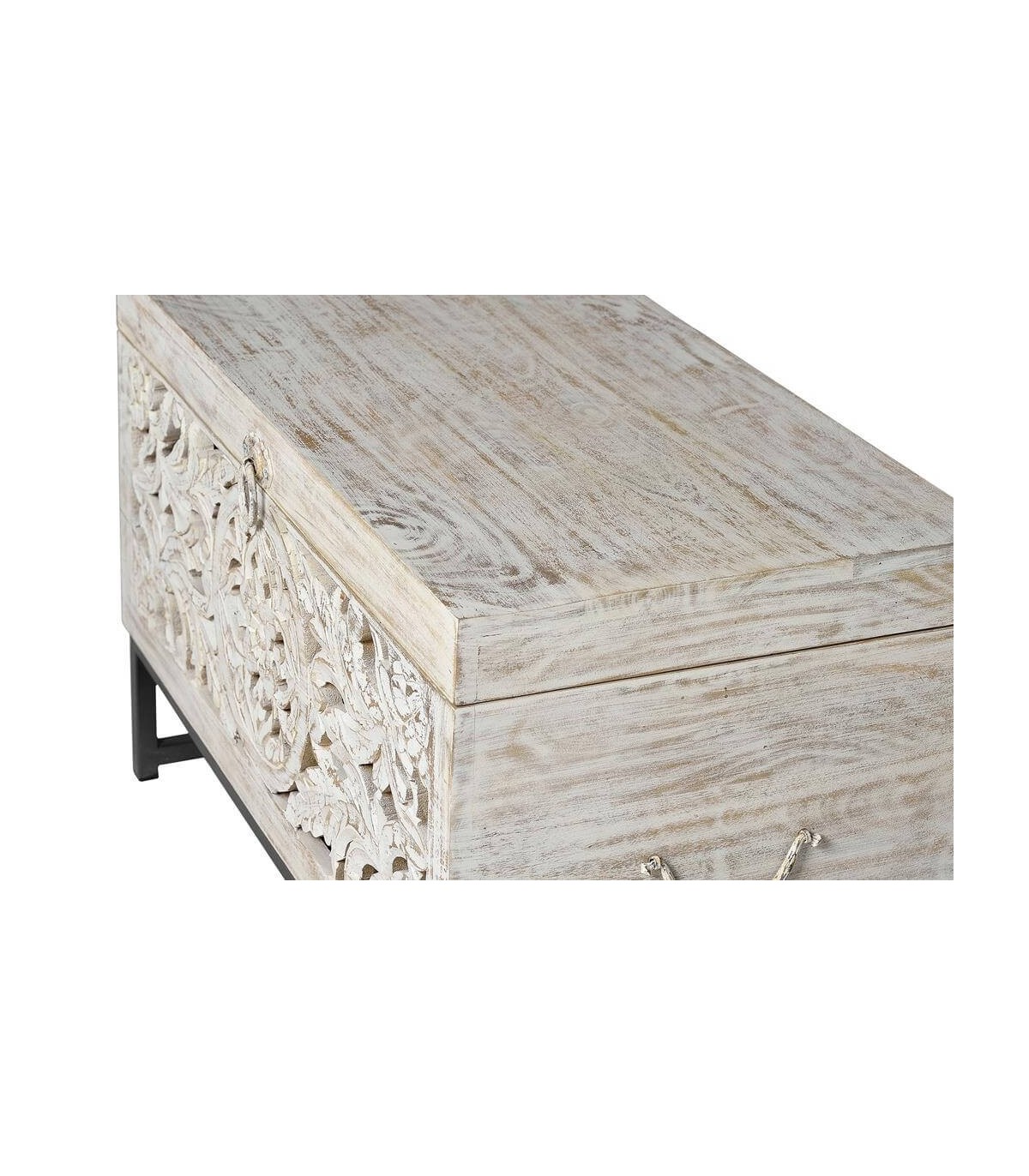 BAUL 80 X 40 X 50 SANTORINI MADERA TALLADA BLANCO METAL GRIS