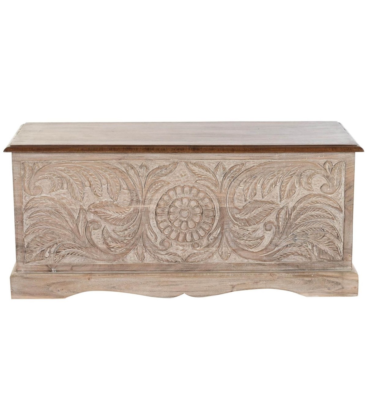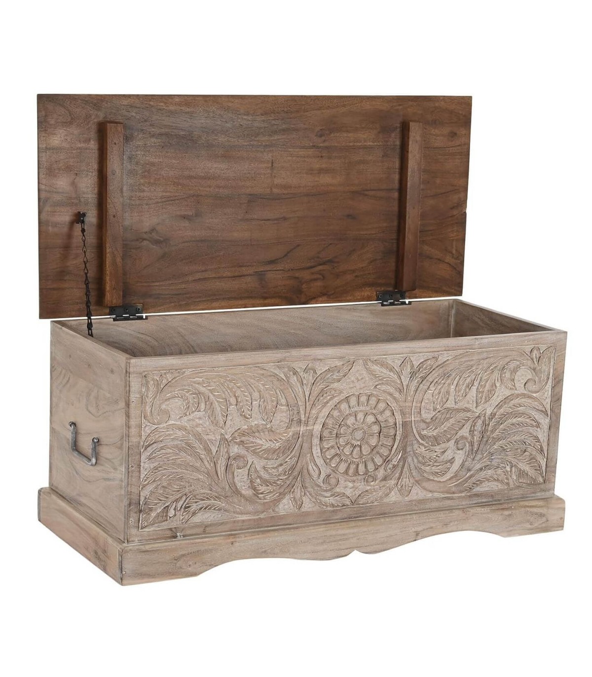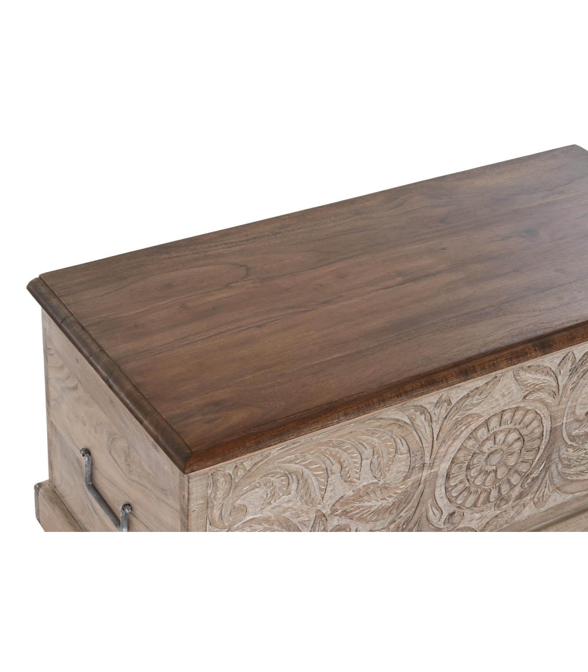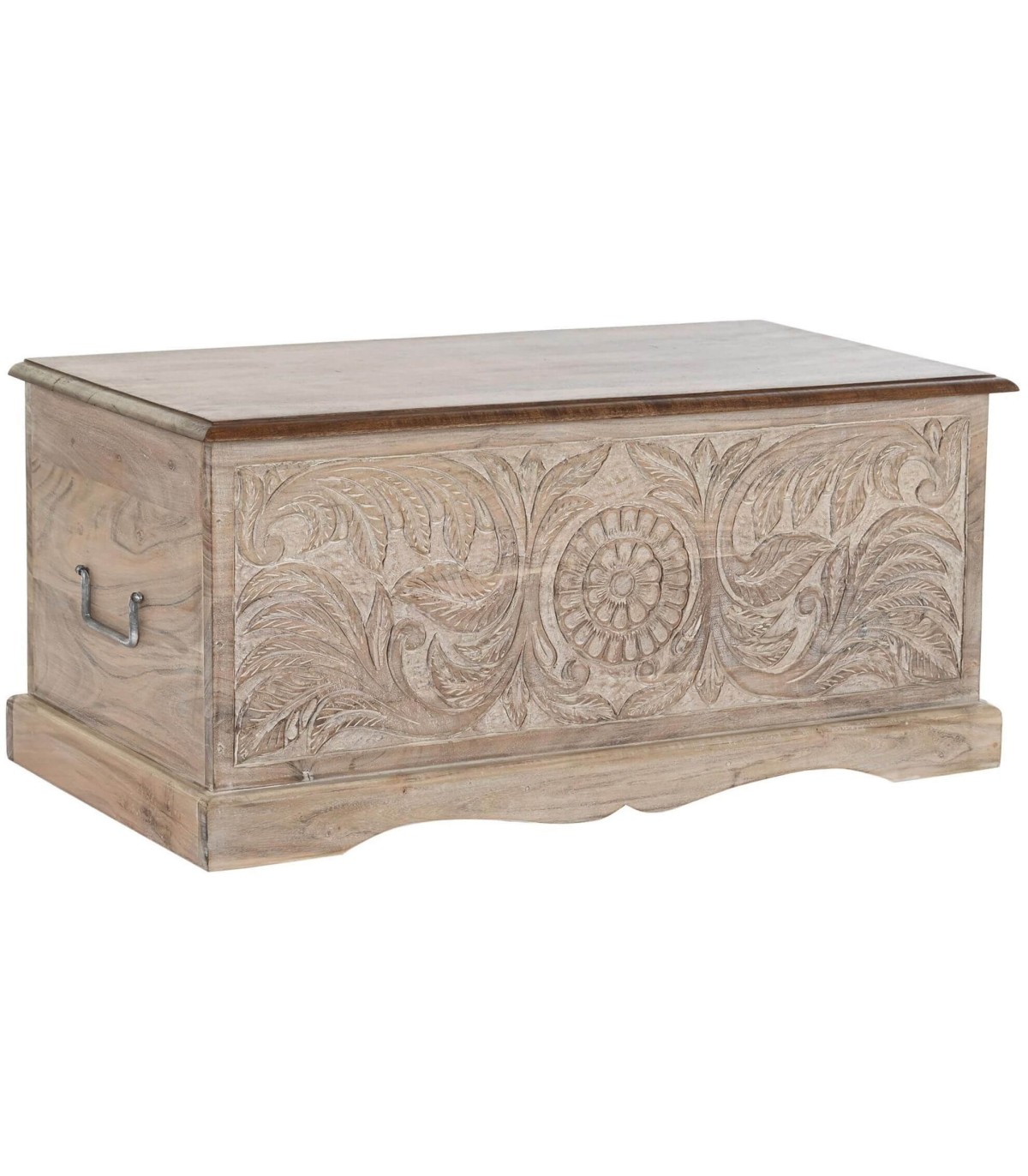 BAUL 90 X 40 X 40 PALMAR MADERA TALLADA ACACIA NATURAL Y CAOBA