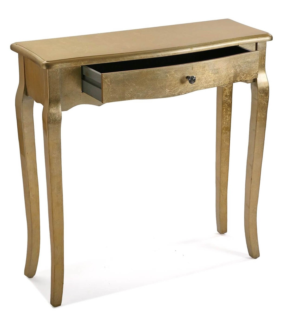 Consola acabada en pan de oro, una consola perfecta para entradas pequeñas o en cualquier tipo de decoración como pieza singular.