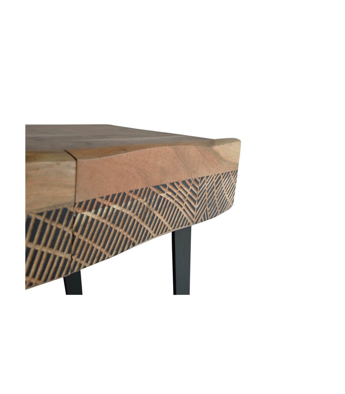 • Acabado, madera de acacia tallada y patas en metal negro.