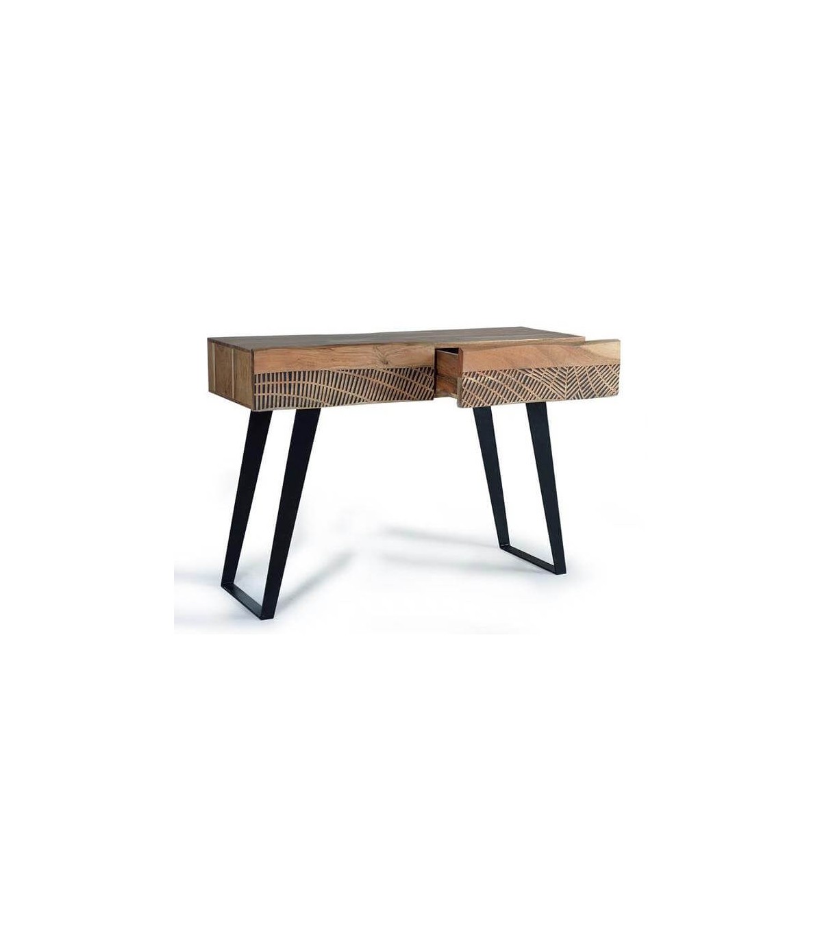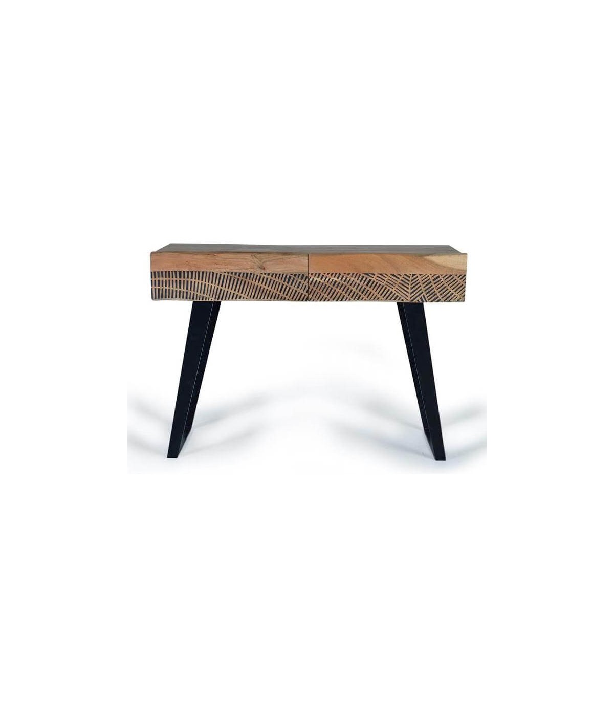 Consola con dos cajones de estilo industrial con un toque nórdico, perfecto equilibrio en sus materiales y acabados, una consola elegante ideal para una buena entrada.