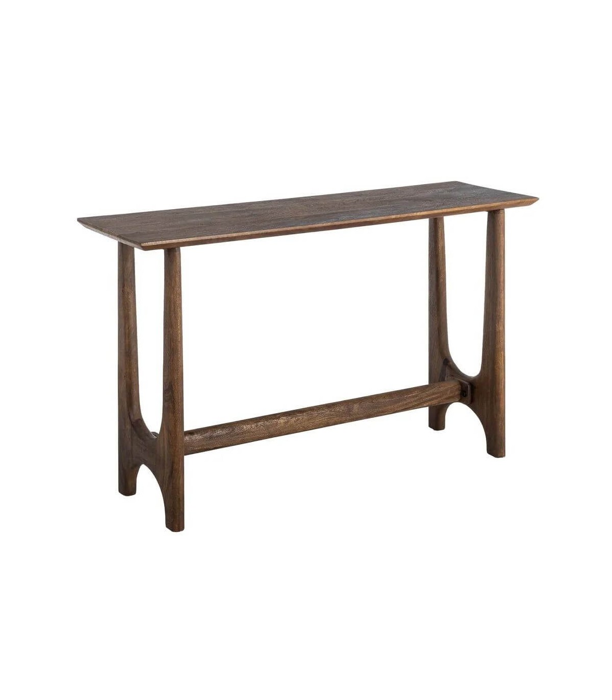 El acabado teñido en color nogal aporta profundidad visual y un tono elegante y sobrio. Su estructura abierta favorece la ligereza visual y mantiene el paso despejado en la entrada. El formato amplio permite apoyar objetos decorativos o de uso diario de forma cómoda. Una pieza pensada para recibidores actuales donde prima la funcionalidad y el diseño.