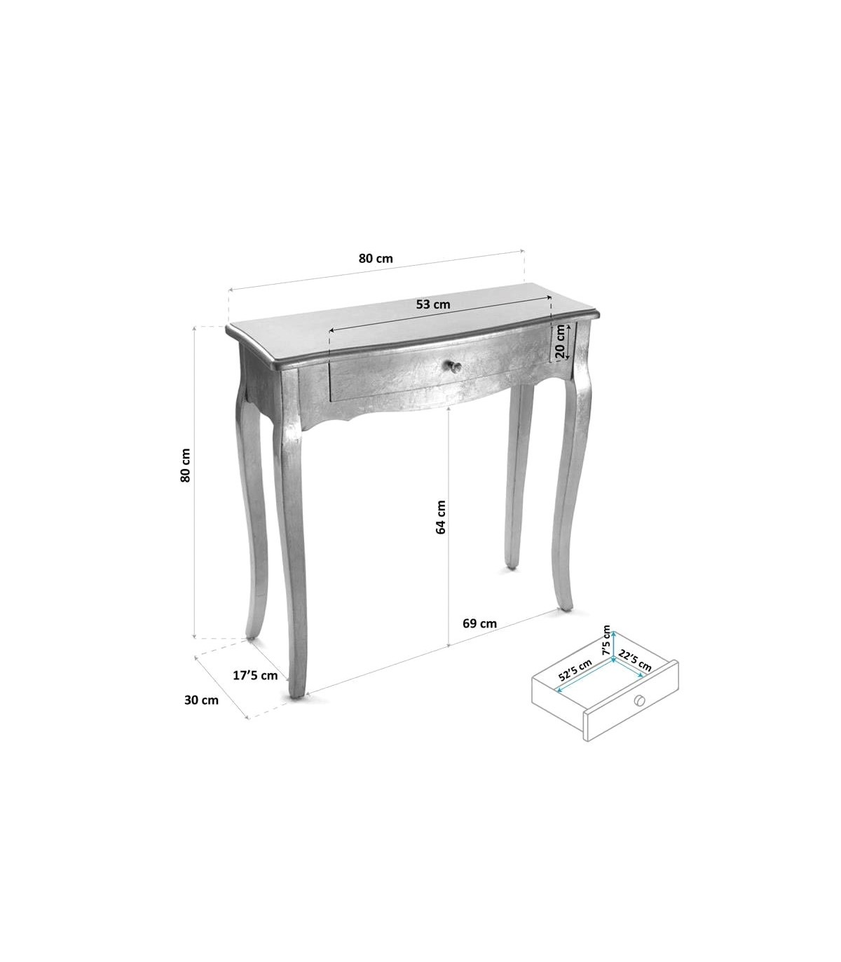 Consola acabada en pan de plata, una consola perfecta para entradas pequeñas o en cualquier tipo de decoración como pieza singular.