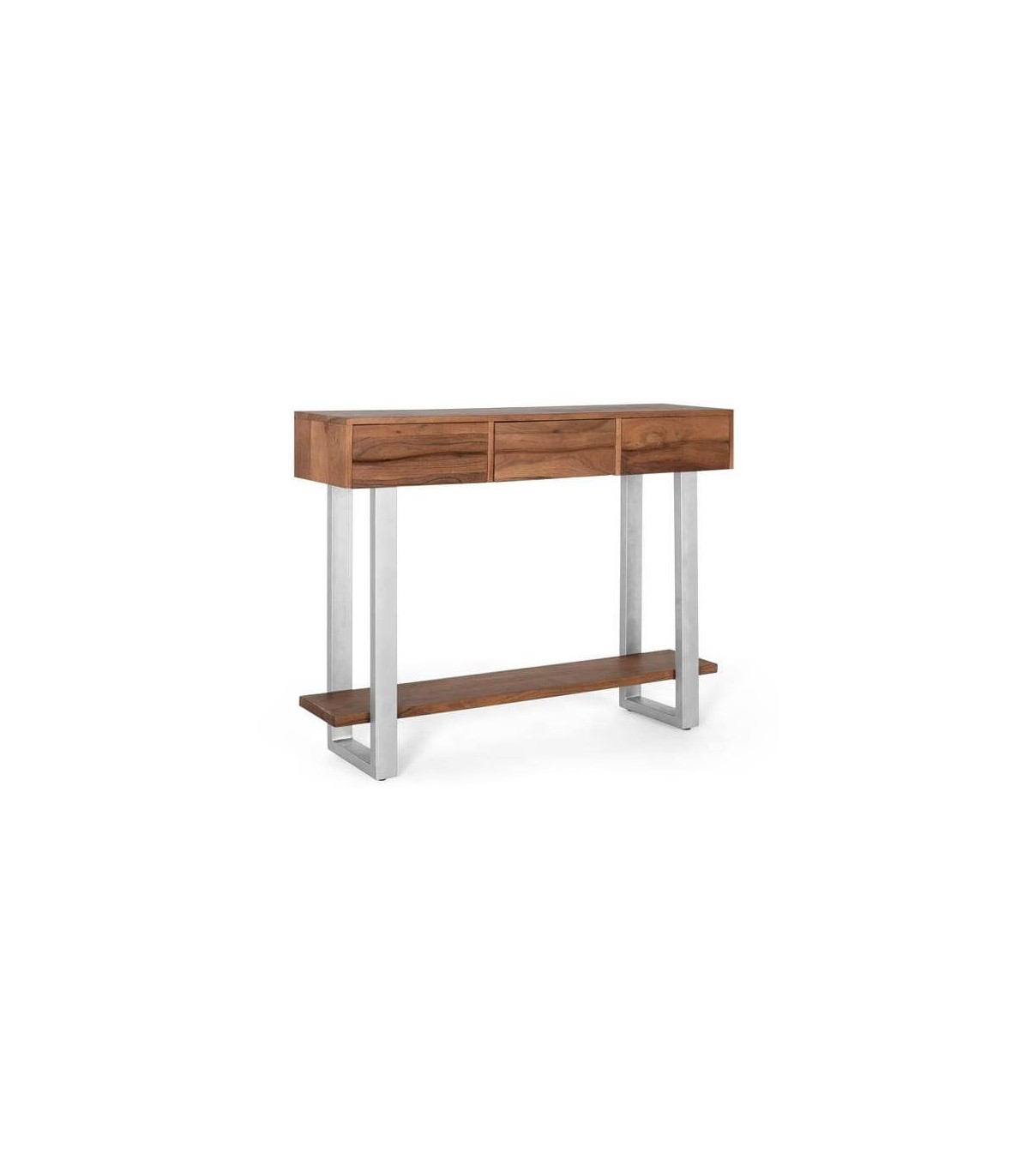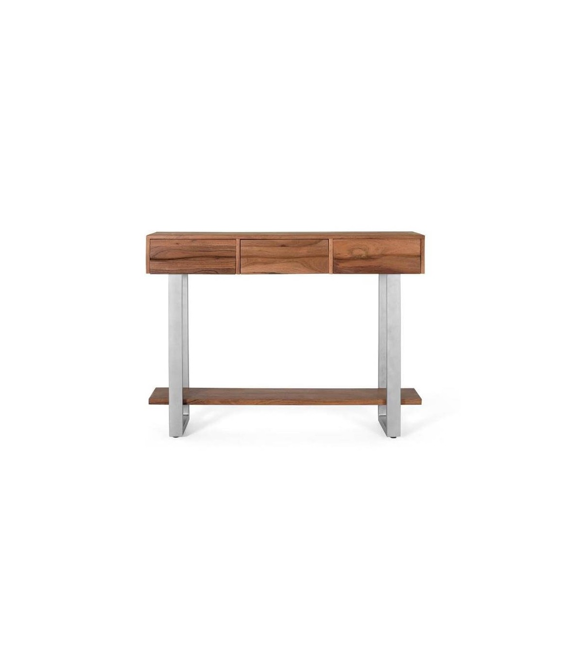 Consola estilo industrial, acabado madera maciza color gris y madera de acacia natural, una consola sencilla bonita y practica por sus 3 cajones, ideal para una entrada o una trasera de sofá.
