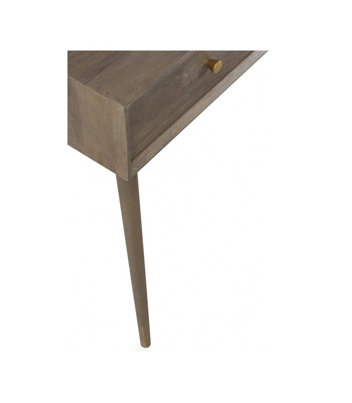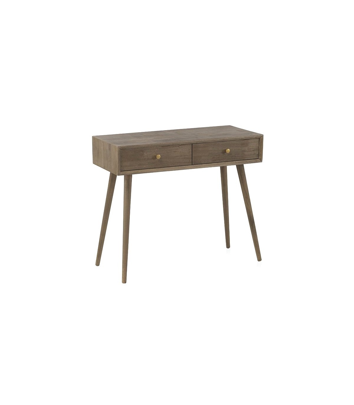Bonita consola de lineas nórdicas, una pieza muy sutil y elegante, el contraste de la madera de abeto teñida con nogalina y el dorado es genial.