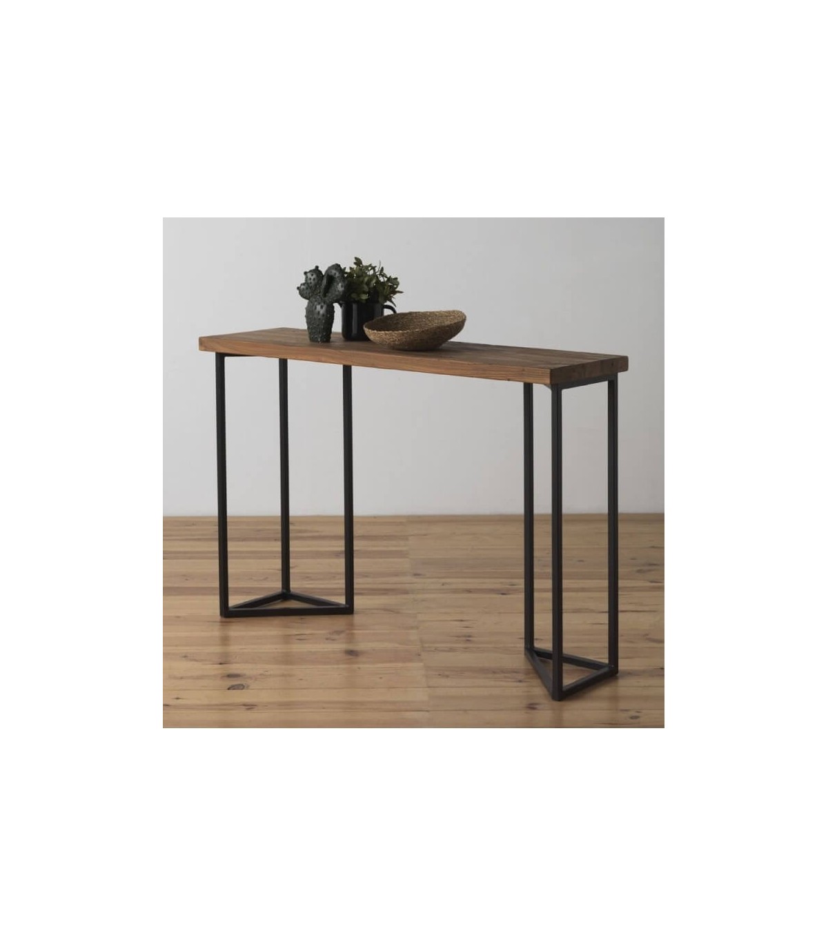 Consola sencilla realizada en metal negro y madera de olmo natural, de estilo industrial, una consola económica con mucho estilo.