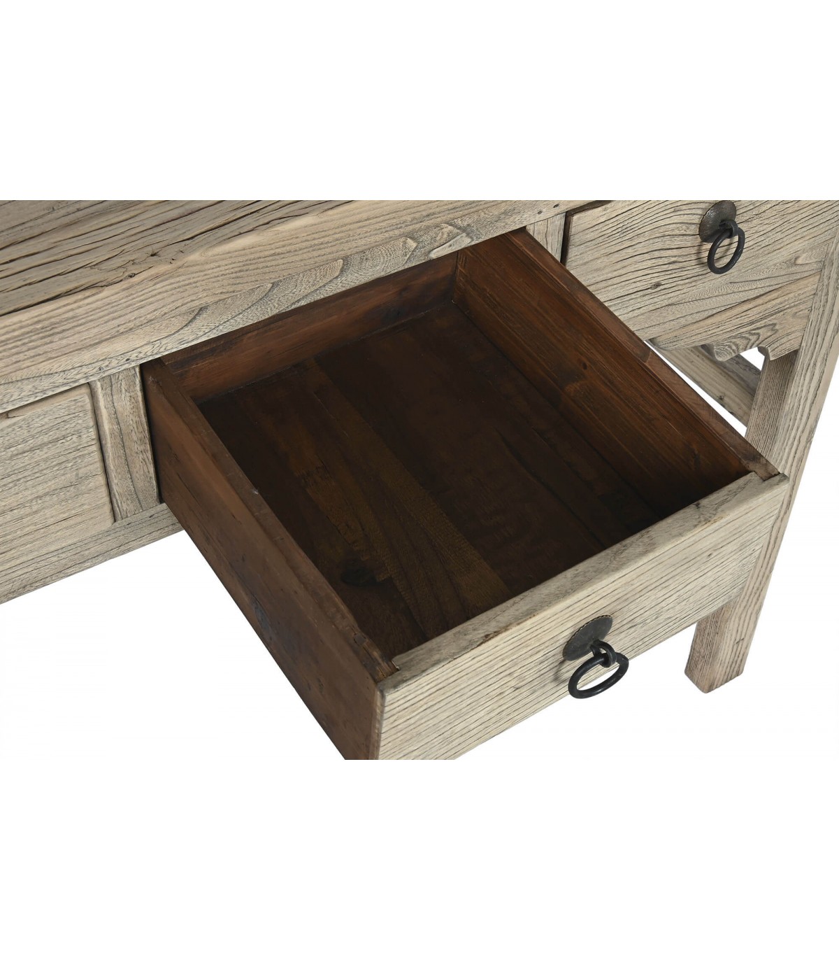 Consola de entrada realizada en madera de olmo macizo y tiradores de hierro, una consola de gran capacidad ideal para una trasera de sofa.