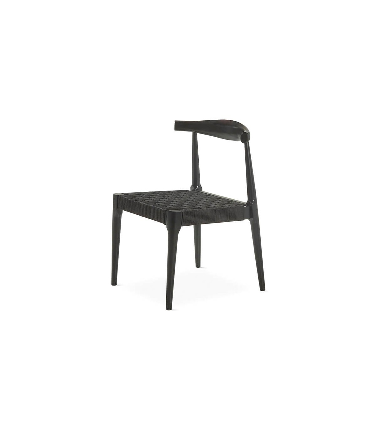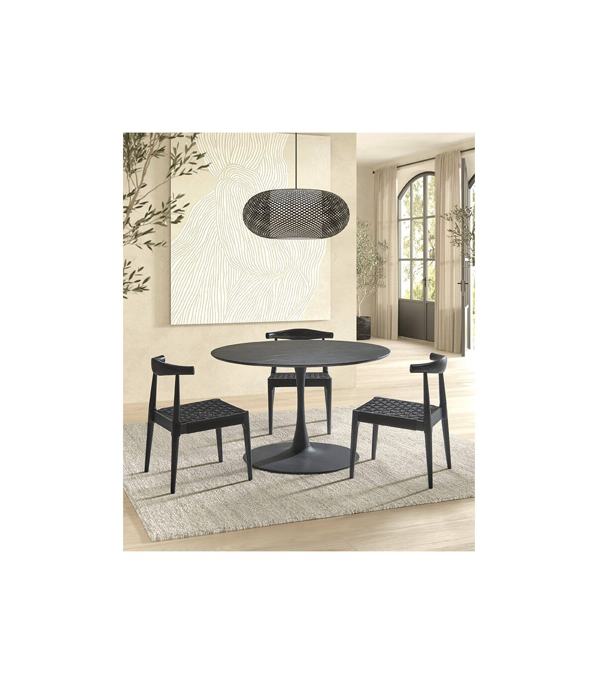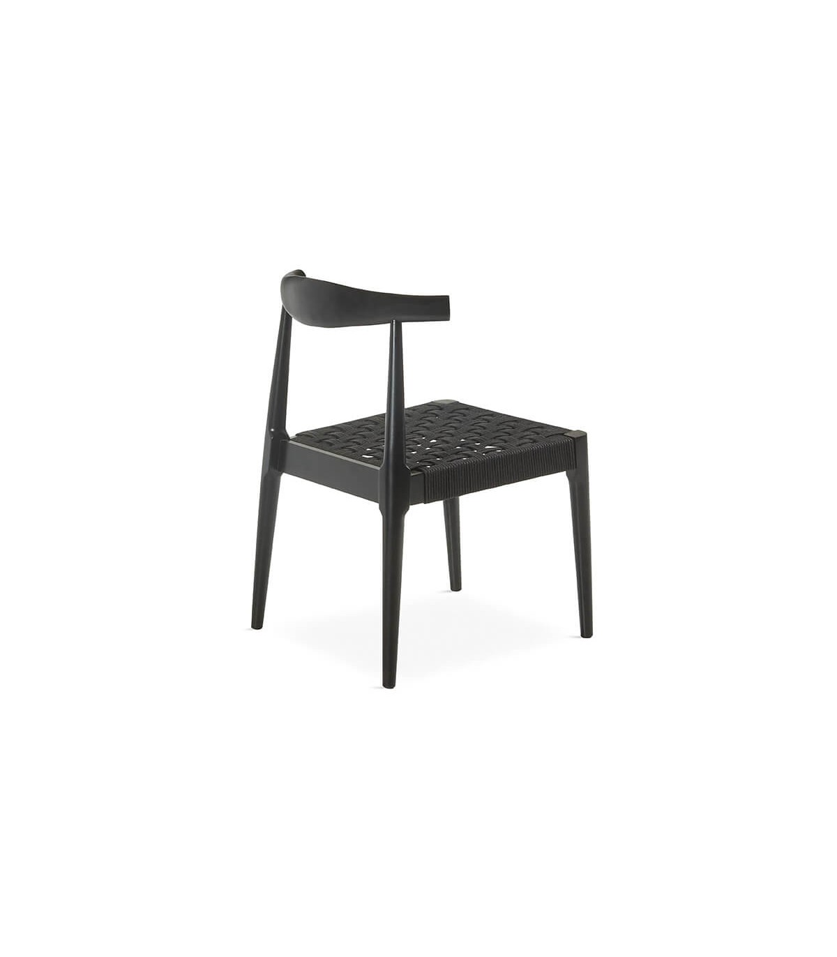 Silla realizada en madera de haya acabado negro con el asiento en cuerda color negro, una silla con carácter que encaja bien en ambientes coloniales, boho chic, contemporáneos. Perfecta para hogar o para hostelería.