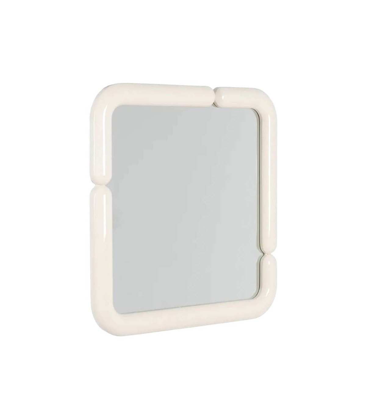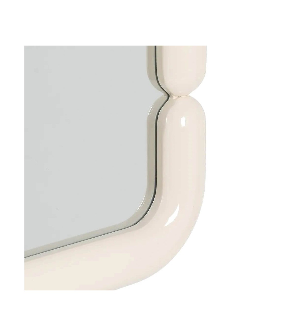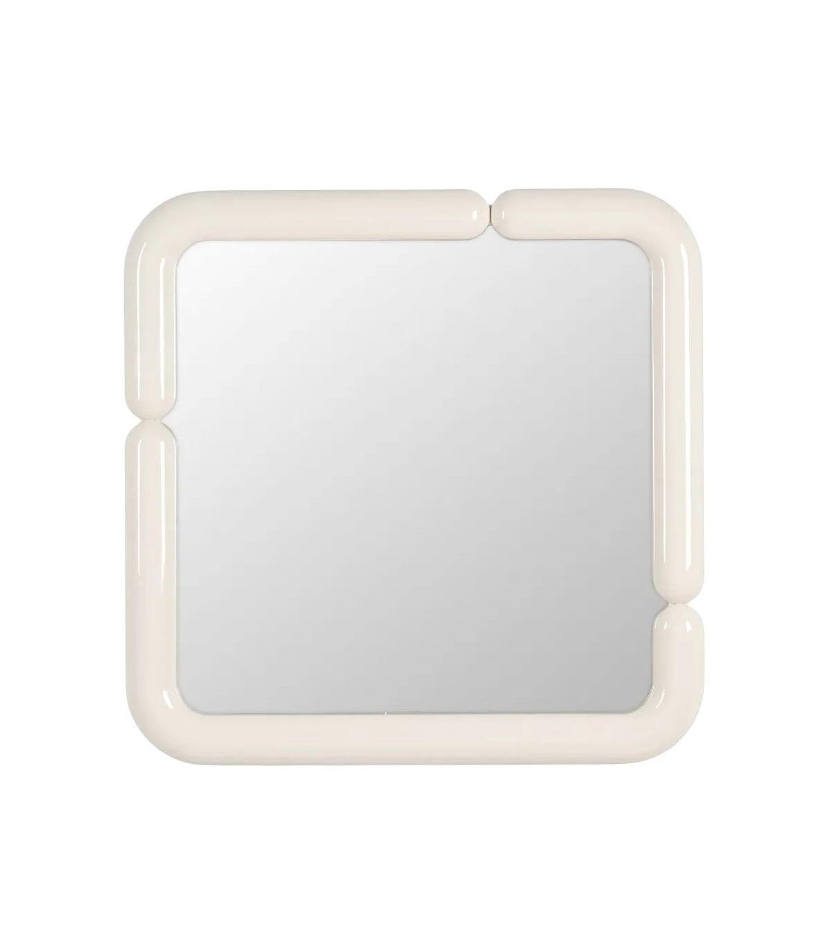 Este espejo cuadrado destaca por su marco curvado lacado en crema brillo, que suaviza sus líneas y aporta elegancia visual. Su diseño retro con guiños setenteros lo convierte en una pieza única capaz de transformar cualquier espacio.