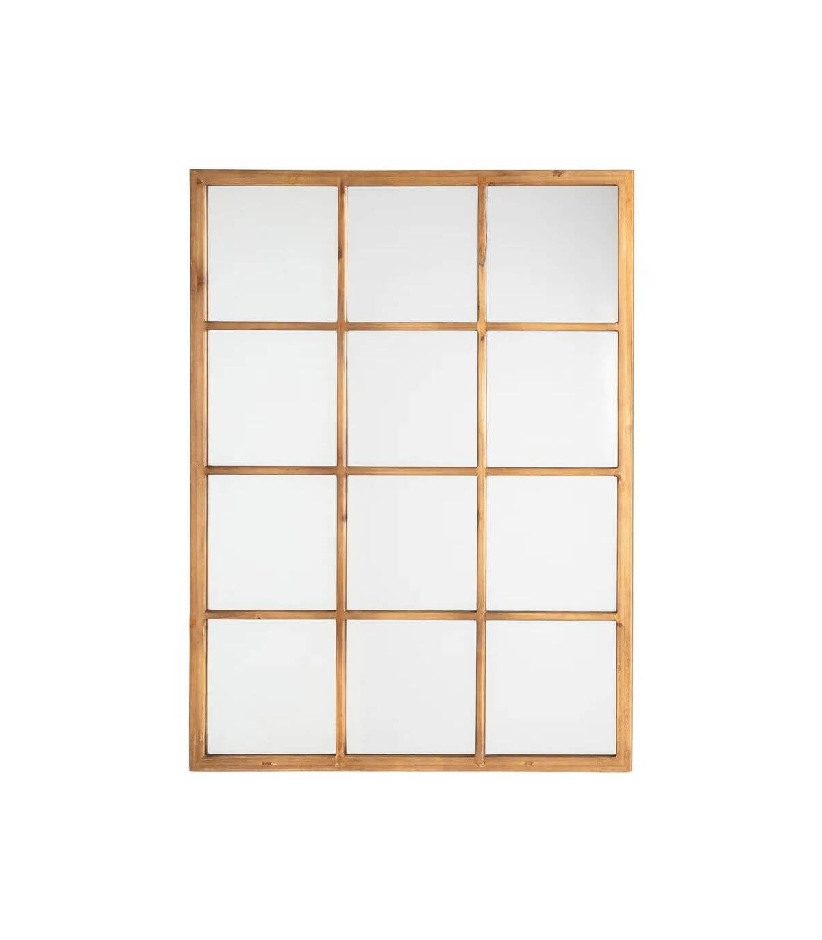 El espejo rectangular efecto ventana aporta amplitud y luminosidad a cualquier estancia, su marco de madera de abeto natural se combina con el brillo del espejo plata creando un contraste cálido y auténtico que encaja en diferentes estilos decorativos, desde ambientes bohemios hasta interiores más contemporáneos.
