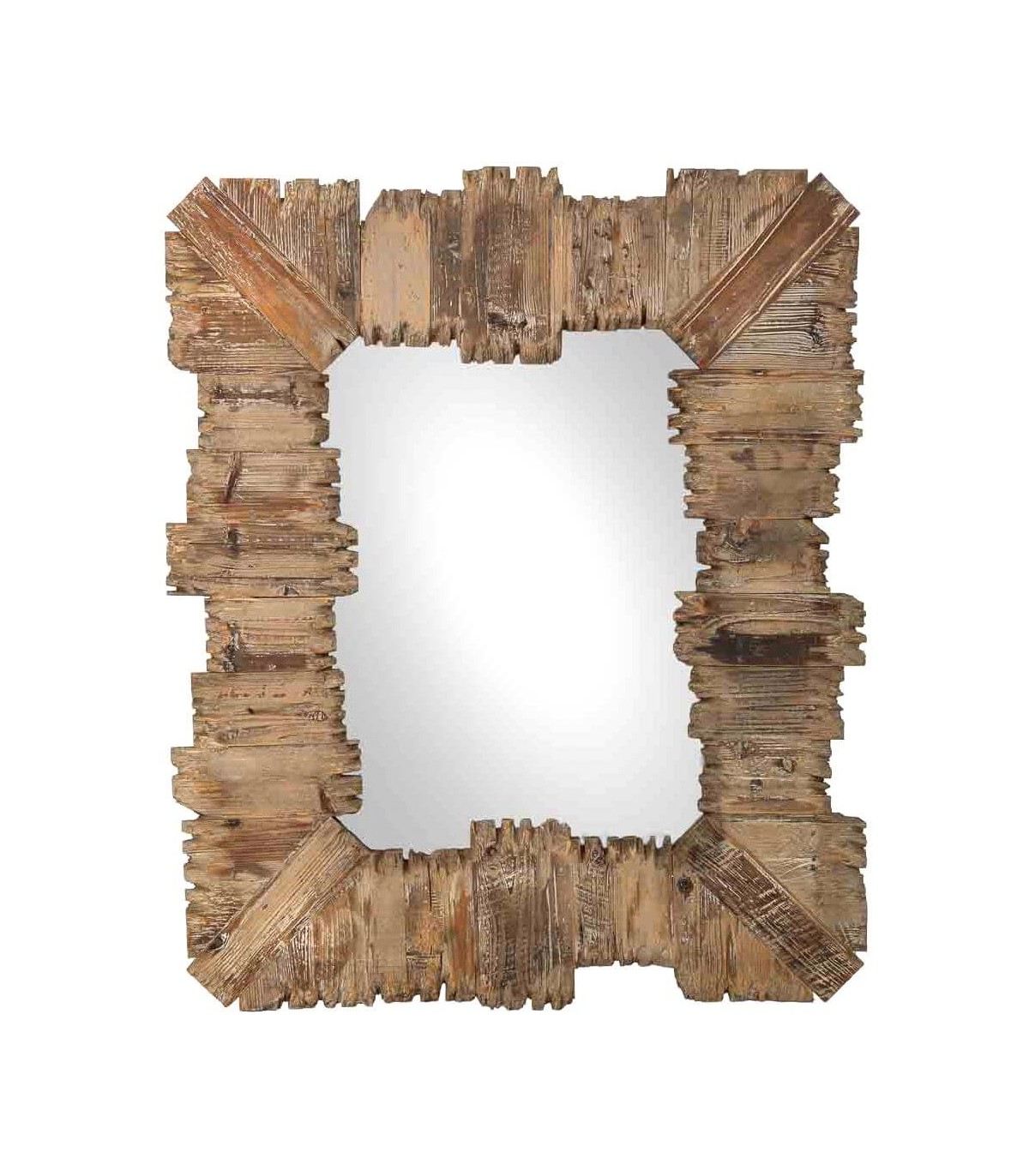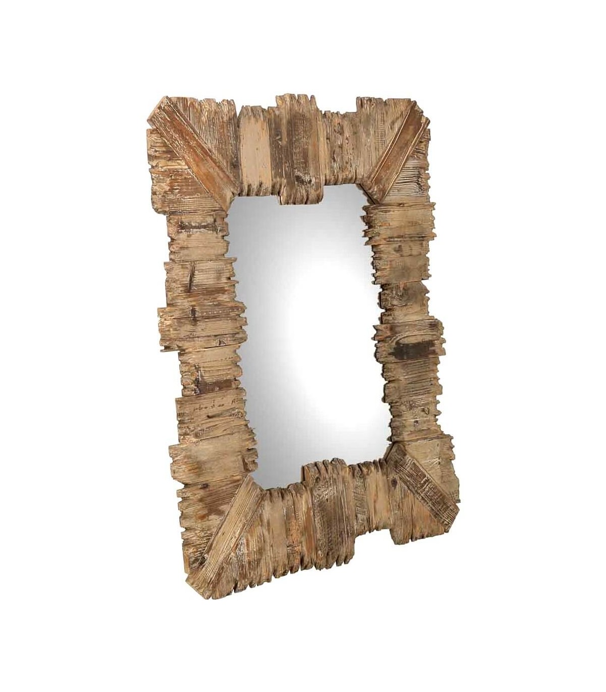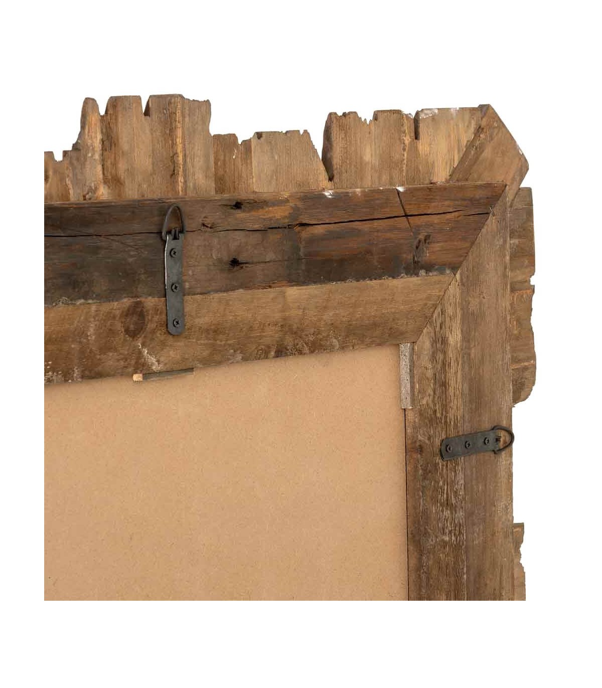 Con una personalidad desbordante, este espejo de pared destaca por su marco irregular tallado en madera reciclada de abeto, con efecto desgastado y textura natural. Cada pieza es única, con marcas y vetas que le confieren autenticidad e historia.