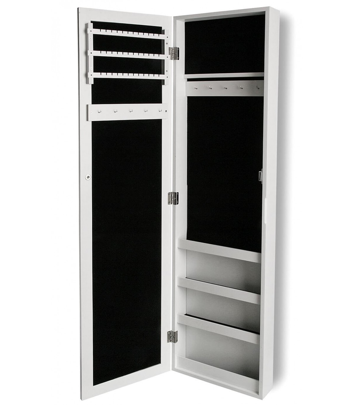 Práctico espejo vestidor con joyero, lacado en blanco con el interior forrado en terciopelo negro, para verte de cuerpo entero, encaja en cualquier tipo de decoración.