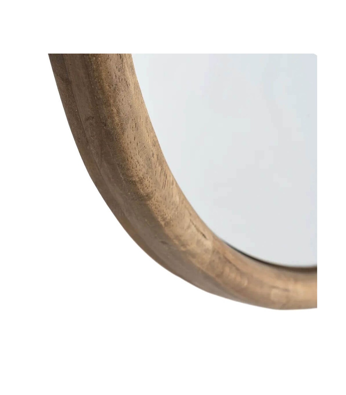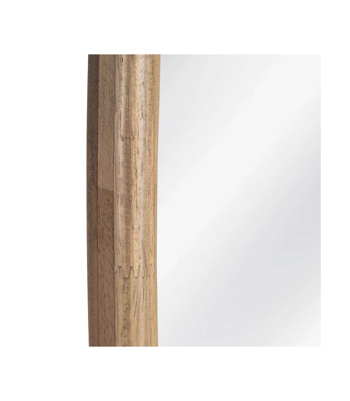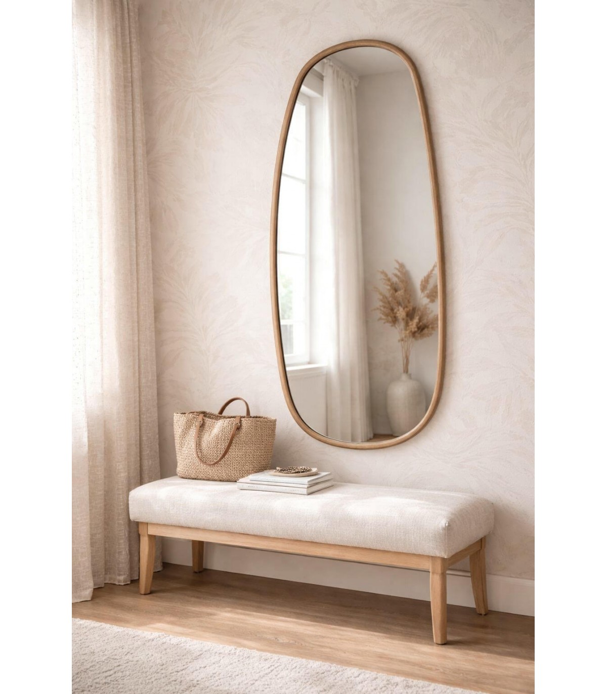Espejo vestidor de estilo boho que aporta verticalidad y ligereza visual al espacio gracias a su silueta orgánica y marco suavemente curvado. La madera maciza transmite una sensación de pieza natural y bien proporcionada, integrándose con facilidad en dormitorios, vestidores o recibidores.
