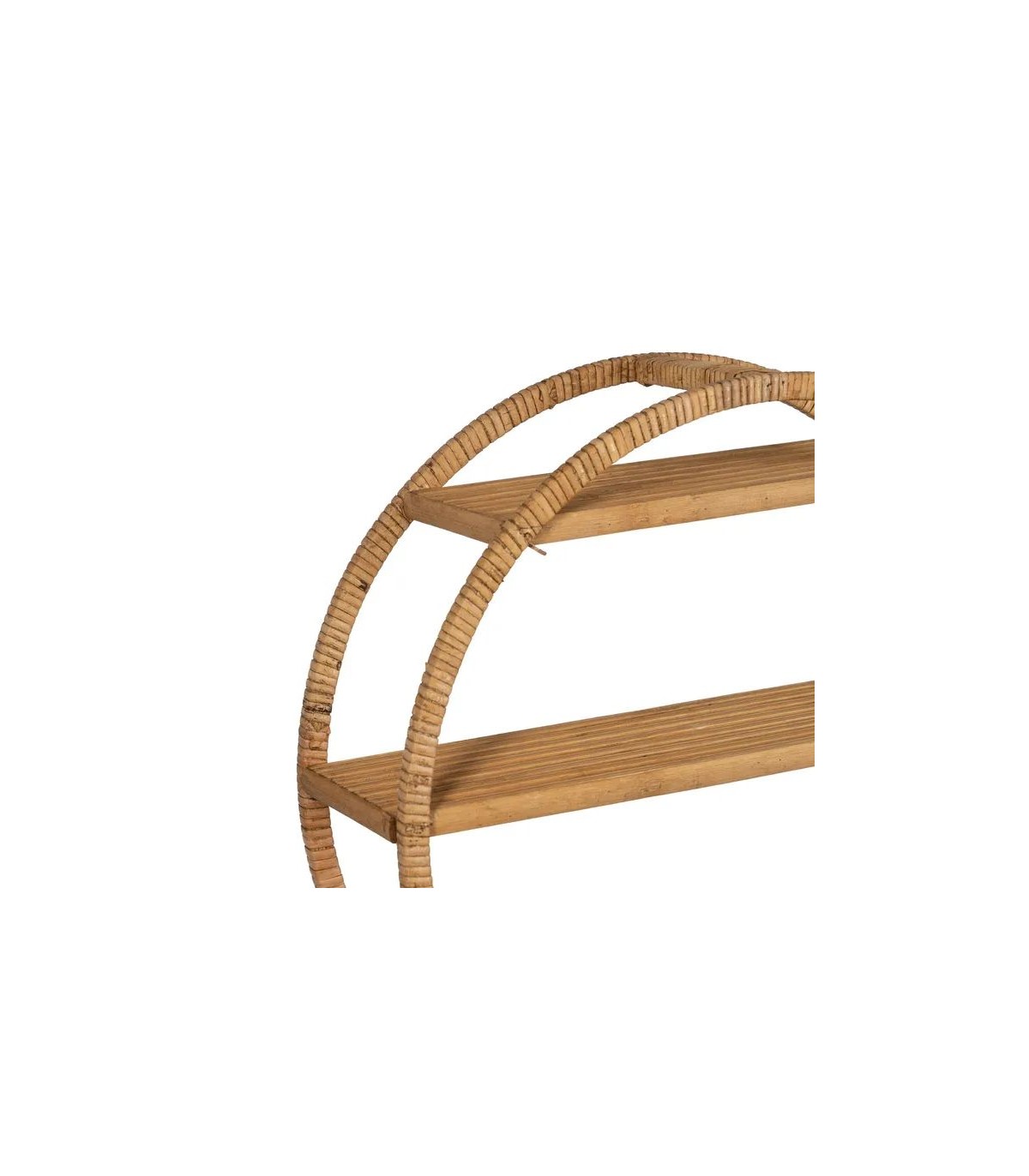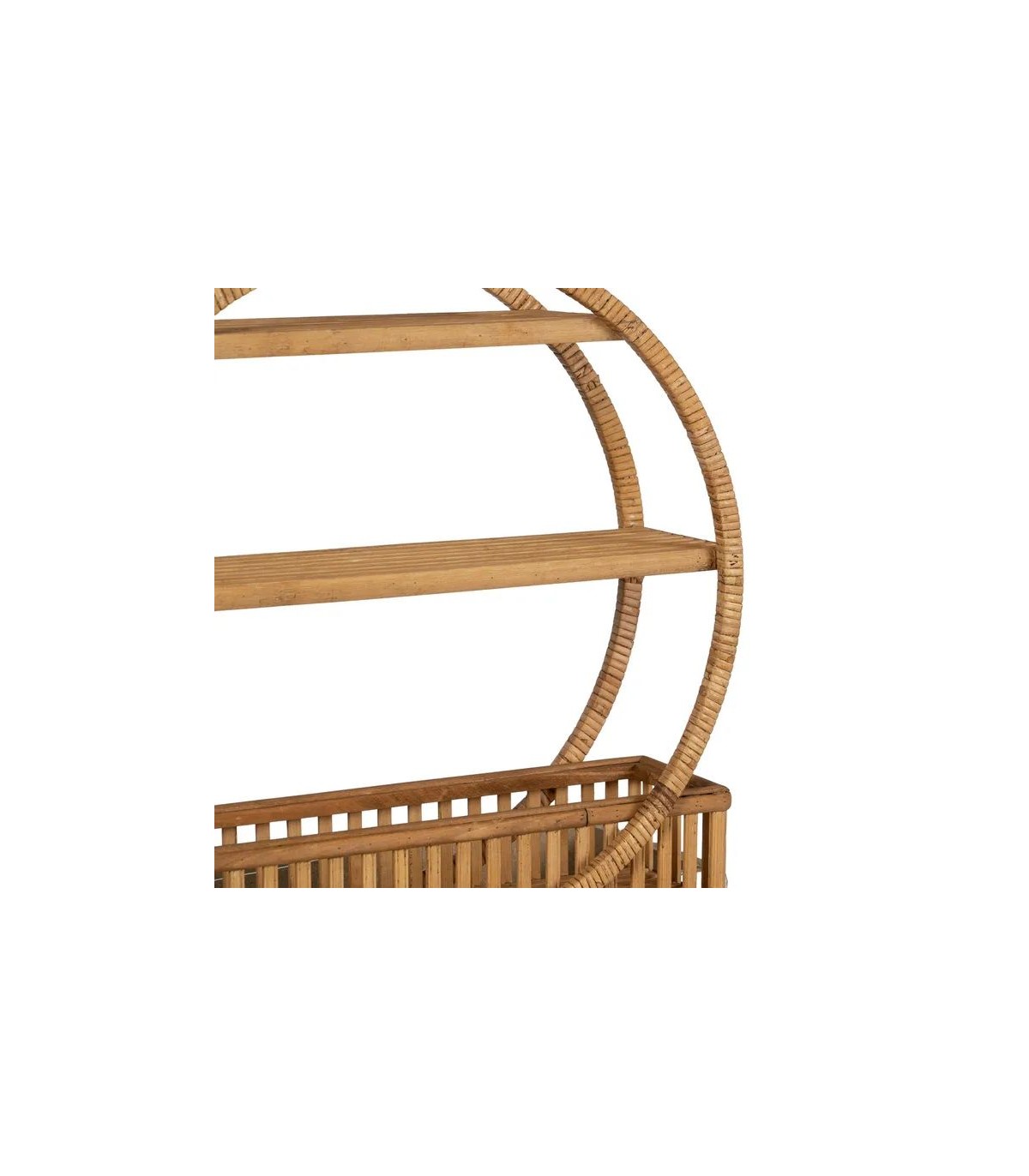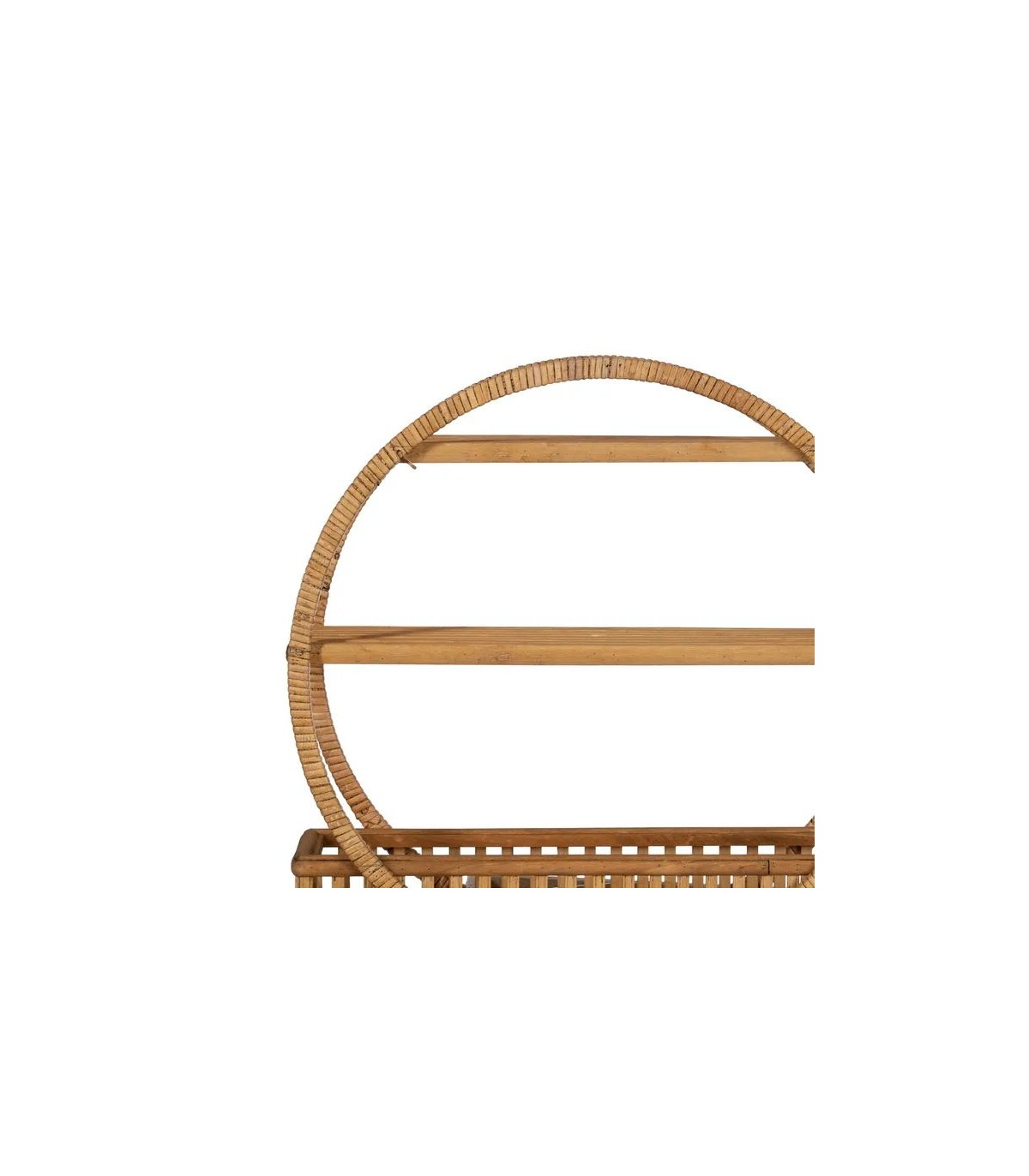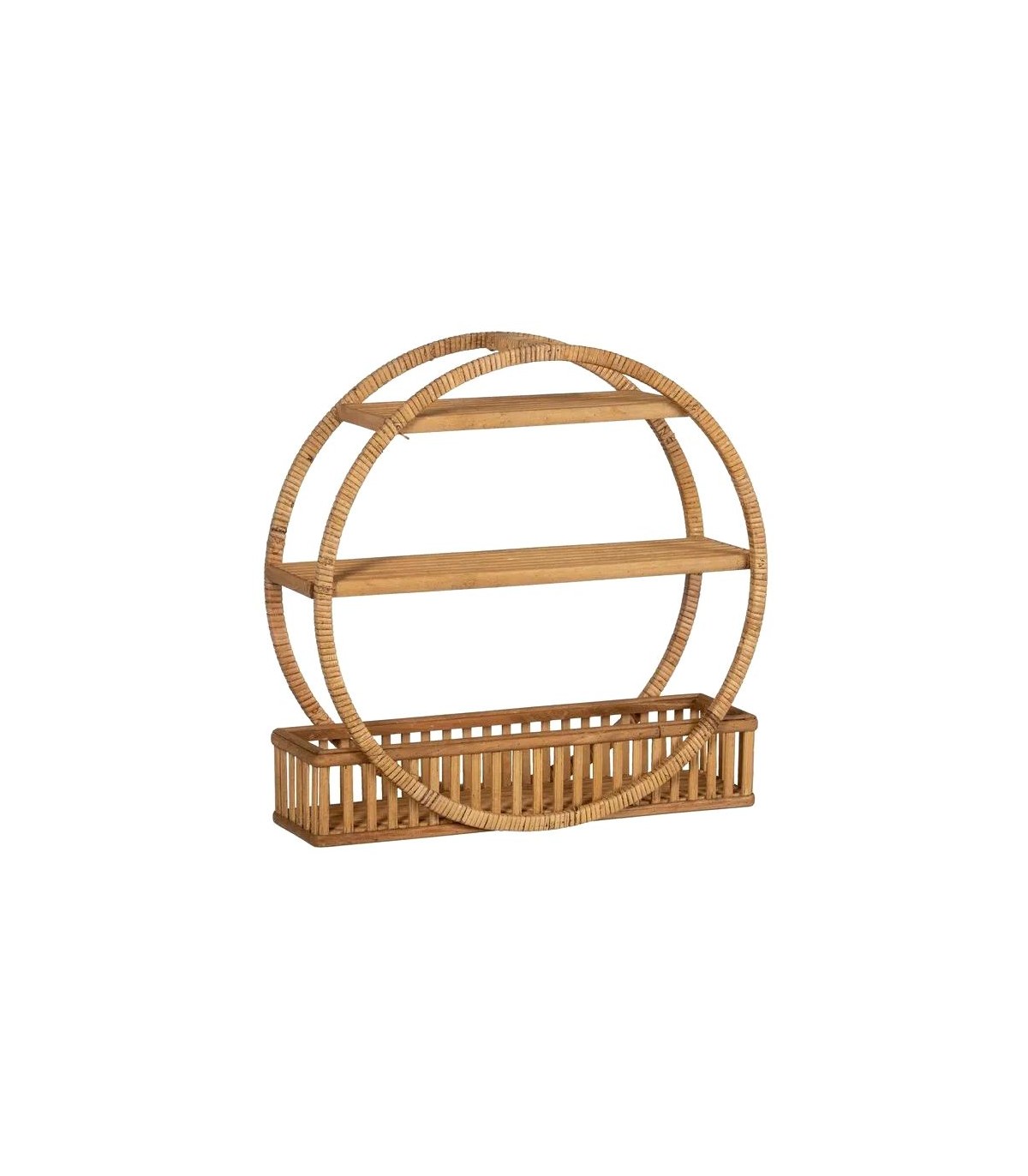 Estantería para colgar en la pared redonda Kantis, realizada artesanalmente en bambú natural, sencilla y muy decorativa, el perfecto complemento para tus detalles de decoración y darle mucho movimiento a un pequeño rincón.
