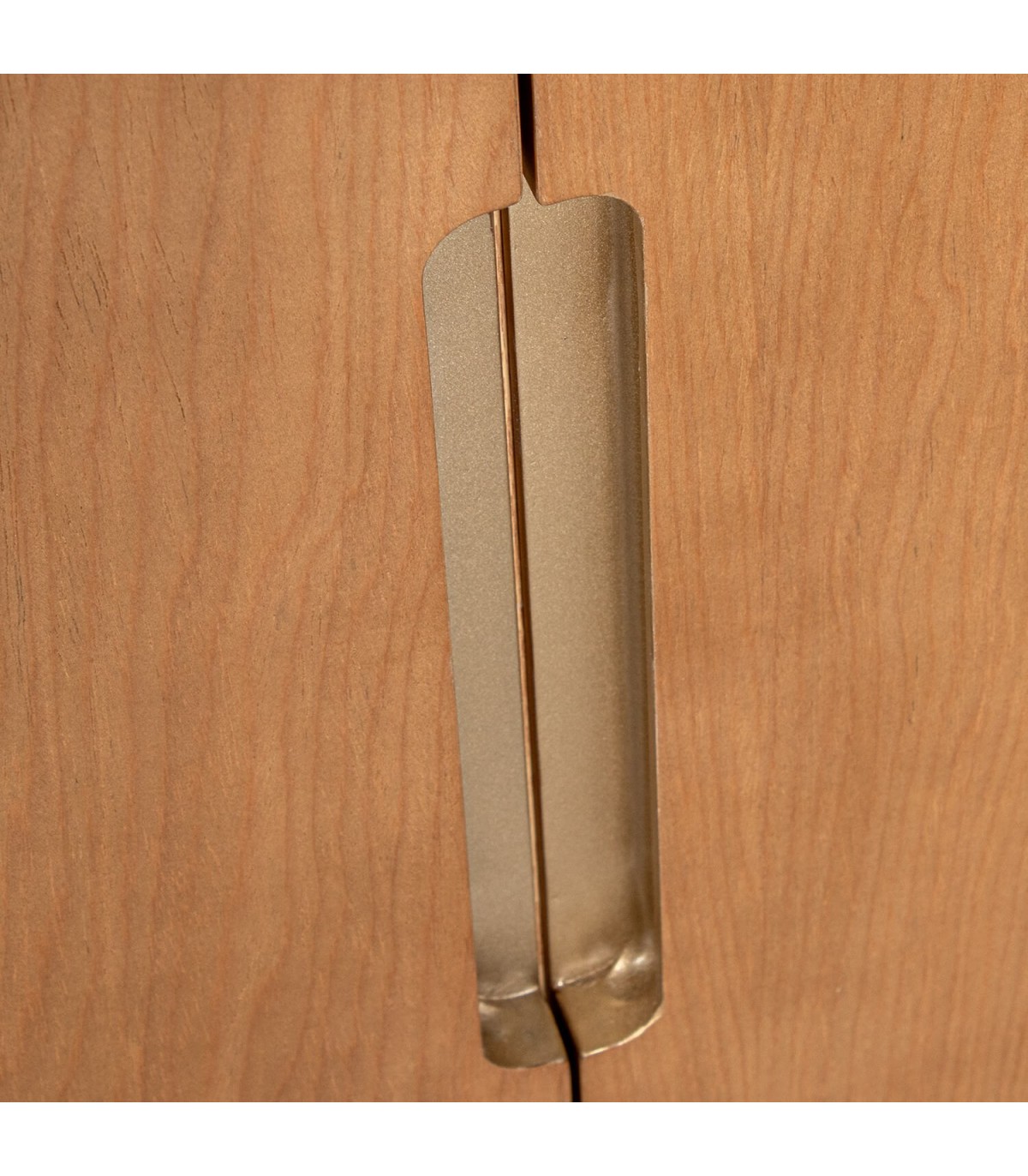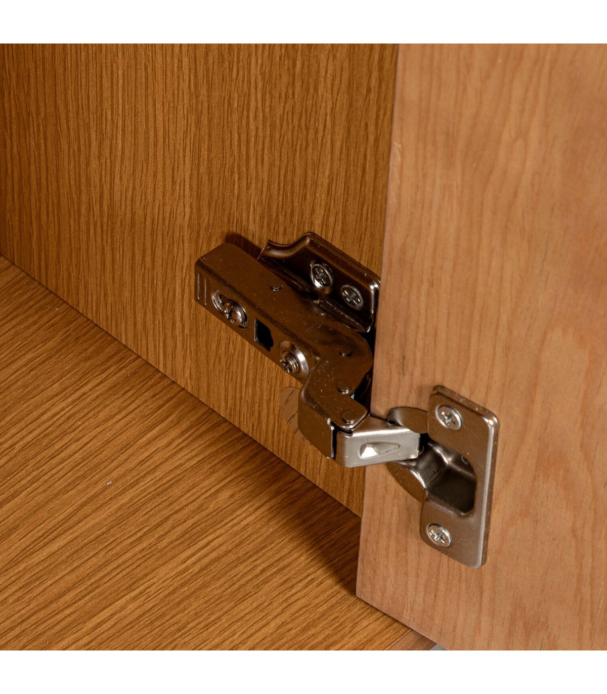 Los tiradores dorados y la tapa superior con acabado en imitación travertino aportan distinción y equilibrio visual. Es un mueble pensado para integrarse en espacios contemporáneos, minimalistas o de inspiración nórdica, manteniendo siempre la armonía y la luminosidad. Una pieza funcional y refinada que une estética moderna y naturalidad atemporal.