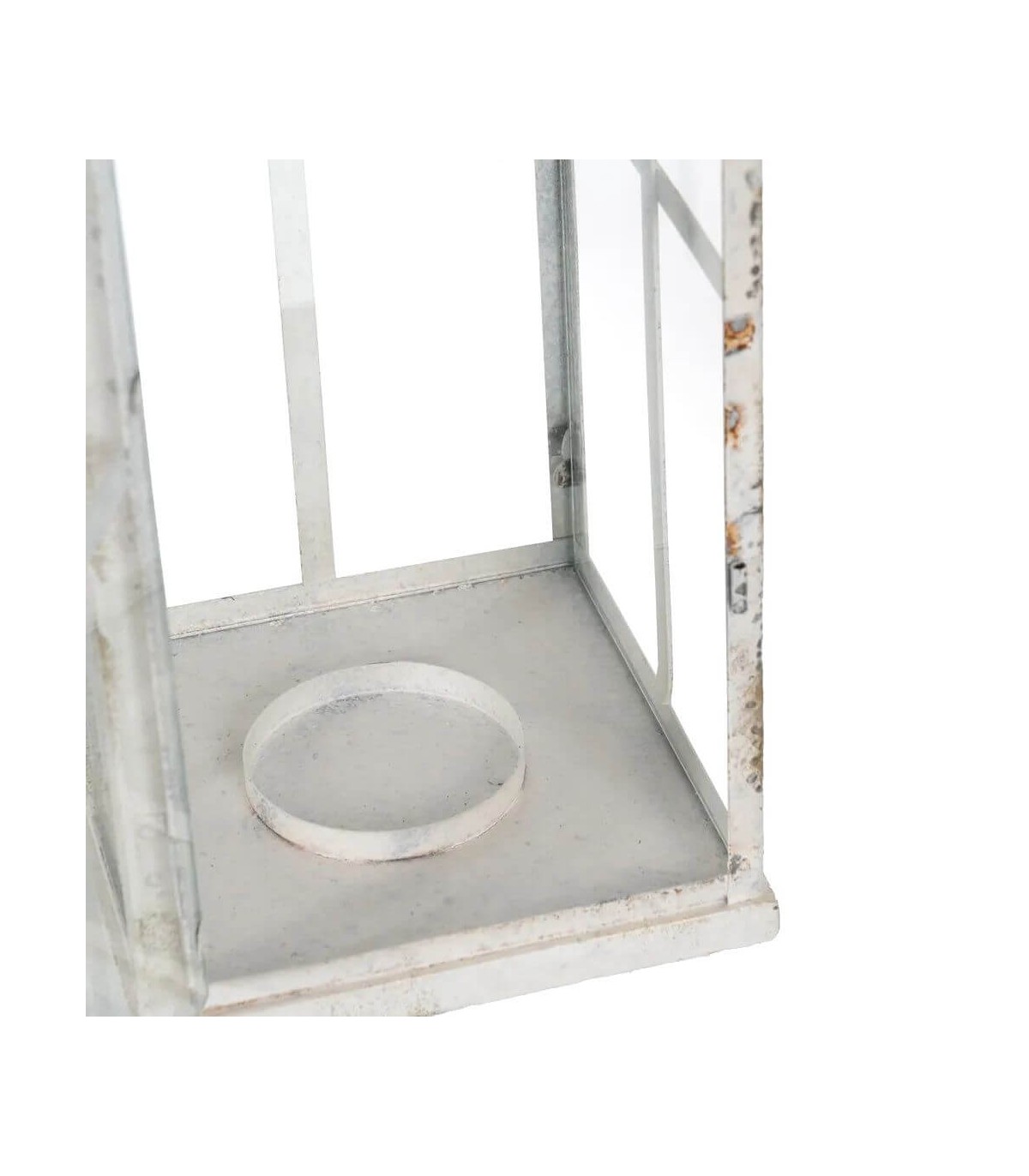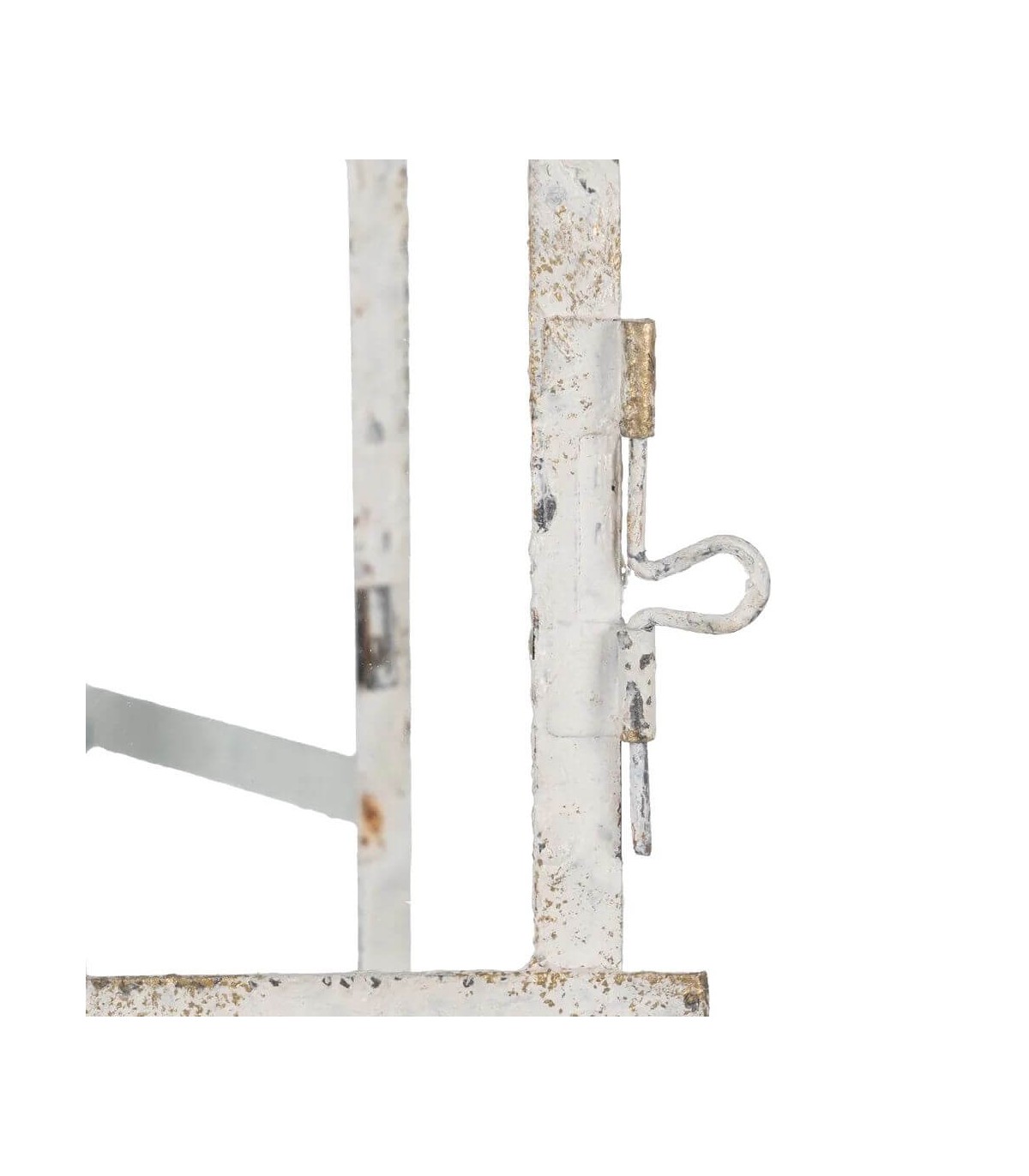 🕯️ Farol Bajo de Metal Blanco Rozado – Estilo Clásico con Cristal y Detalles Oro Envejecido ✨