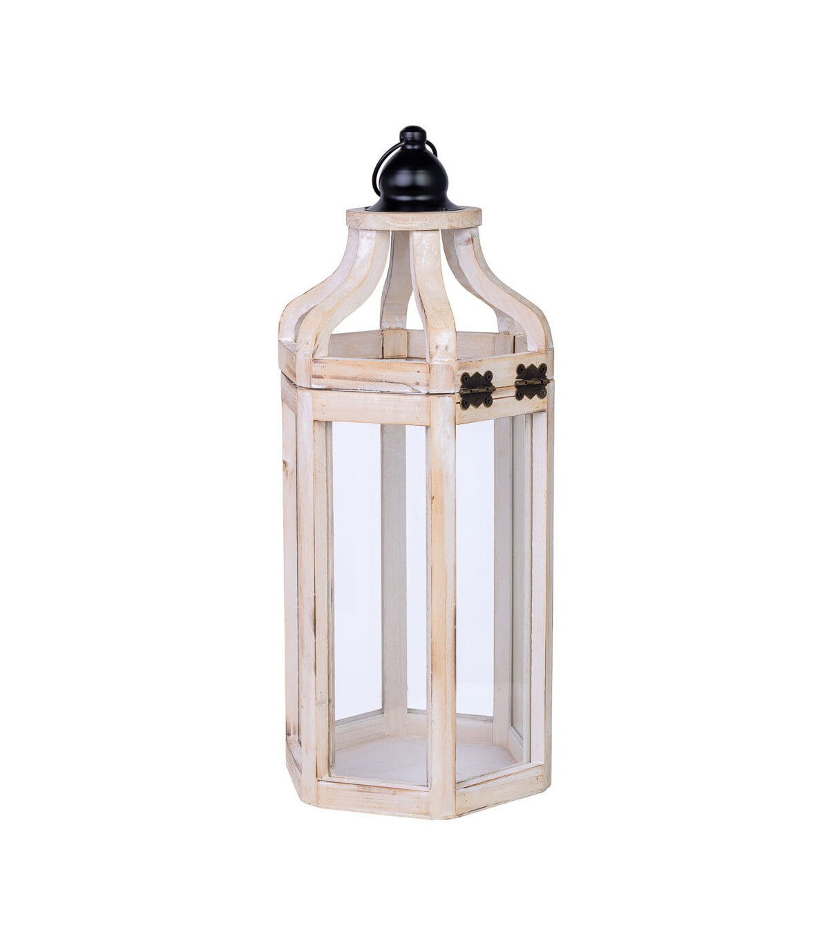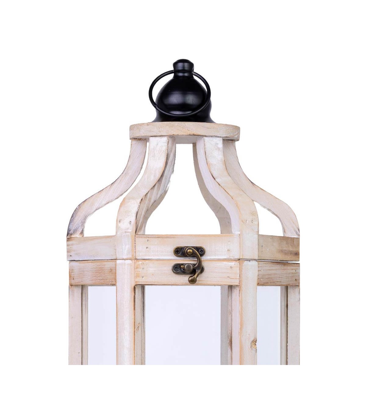 🕯️ Farol Decorativo de Madera Blanco Rozado y Metal Negro – Estilo Clásico Atemporal ✨