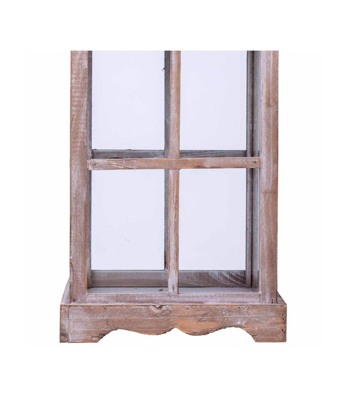 Su cierre metálico envejecido y los cristales transparentes aportan funcionalidad y estilo. Puede utilizarse como portavelas o simplemente como objeto decorativo, tanto en interiores como en terrazas protegidas. Su silueta de inspiración clásica aporta autenticidad a espacios rústicos, mediterráneos o vintage.