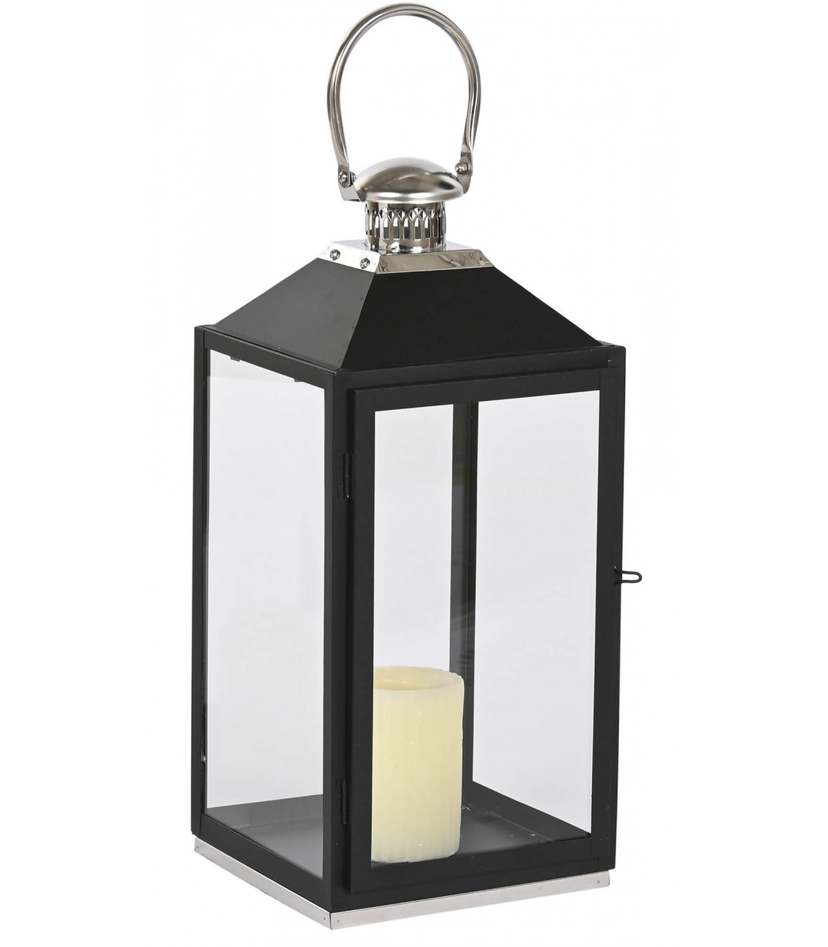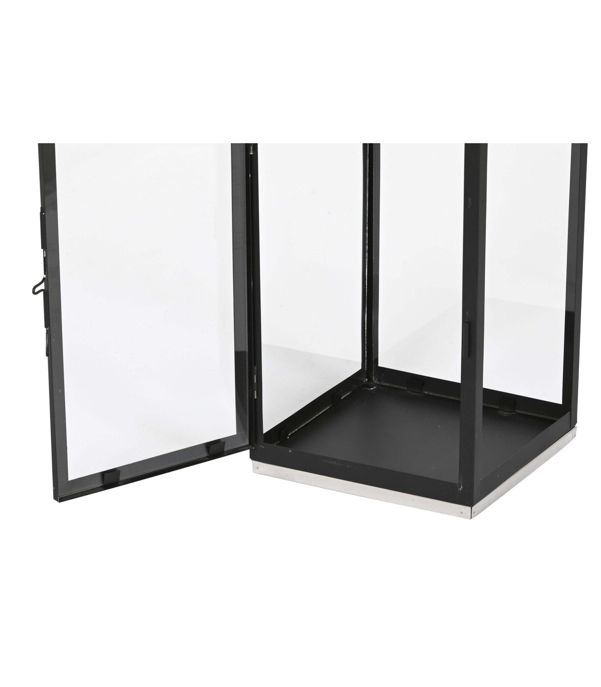 Diseño elegante, robusto y atemporal para iluminar y decorar con estilo cualquier rincón del hogar. Este conjunto de dos faroles en distintos tamaños destaca por su estructura clásica, con líneas geométricas limpias, cristal transparente y un contraste sofisticado entre el negro mate y el brillo del acabado superior cromado.