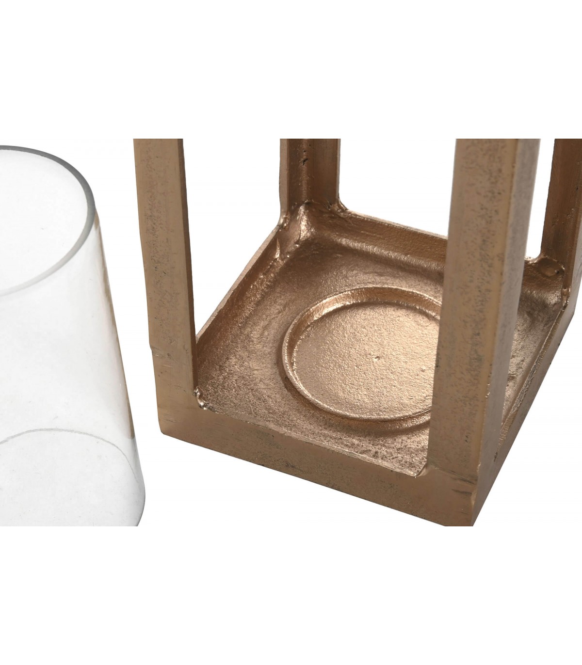 PORTA VELAS BAJO 15 X 15 X 52 CHETI ALUMINIO DORADO TEXTURIZADO