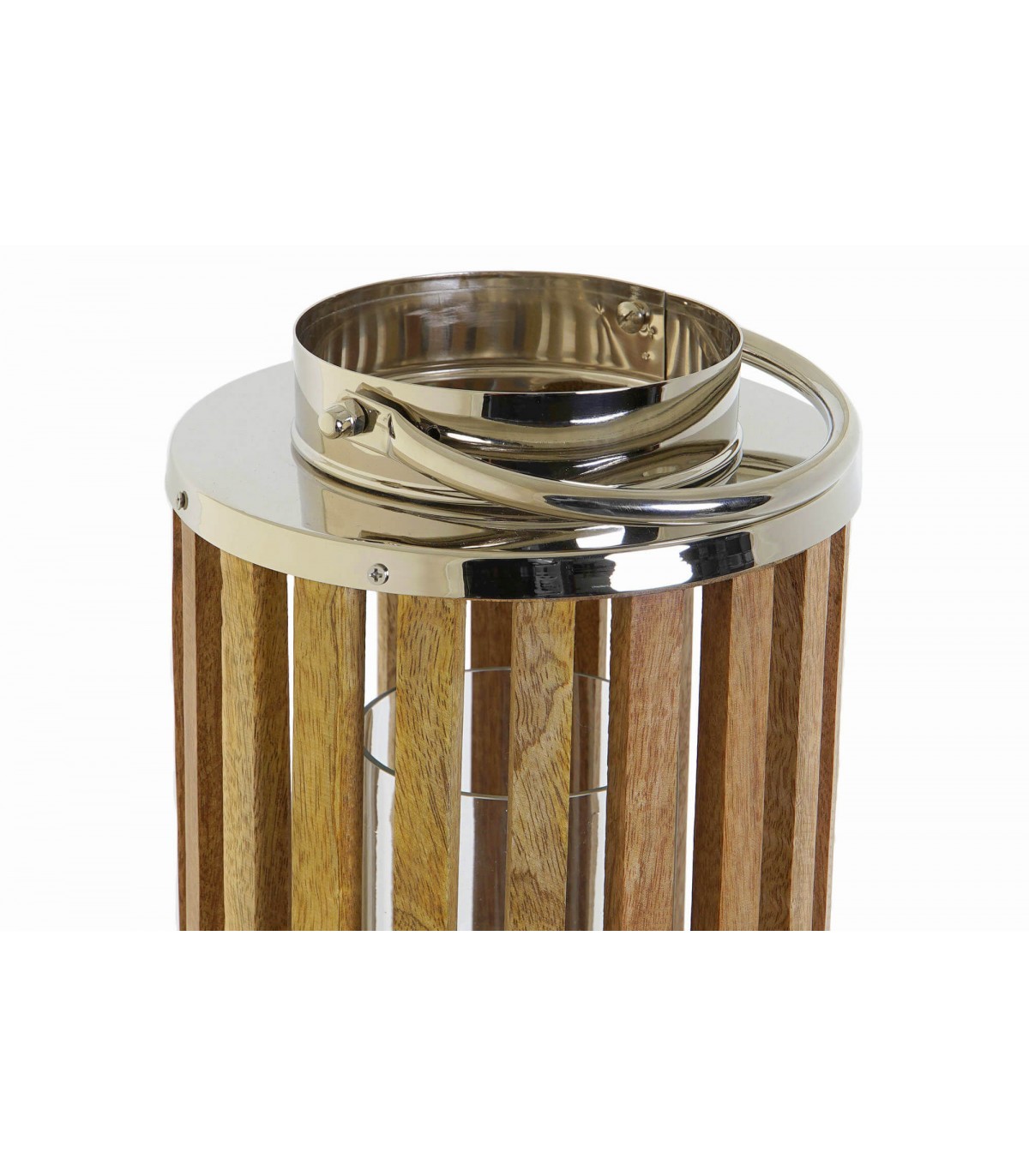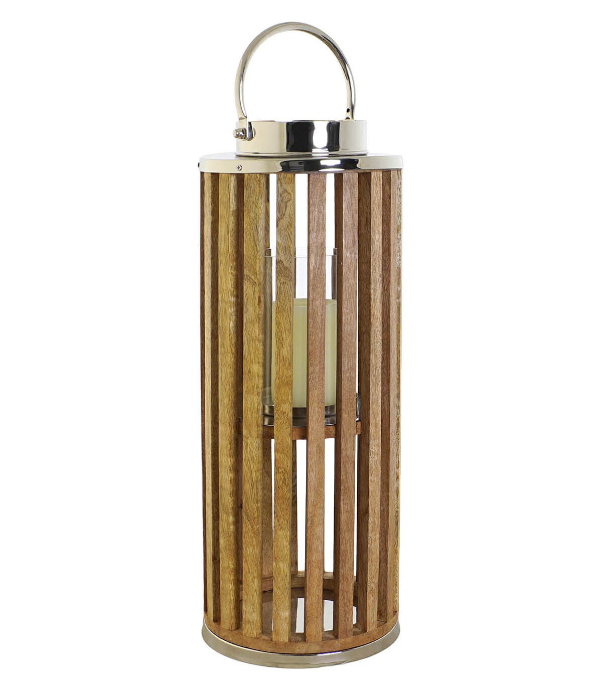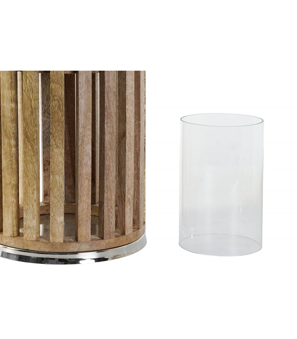 Sumérgete en la calidez del estilo náutico con este portavelas alto de diseño cilíndrico. Elaborado en madera de mango natural con estructura de lamas verticales, incorpora detalles en metal cromado de alto brillo que aportan un toque sofisticado y actual. El vaso interior de cristal extraíble protege la llama, permitiendo una iluminación envolvente y segura.