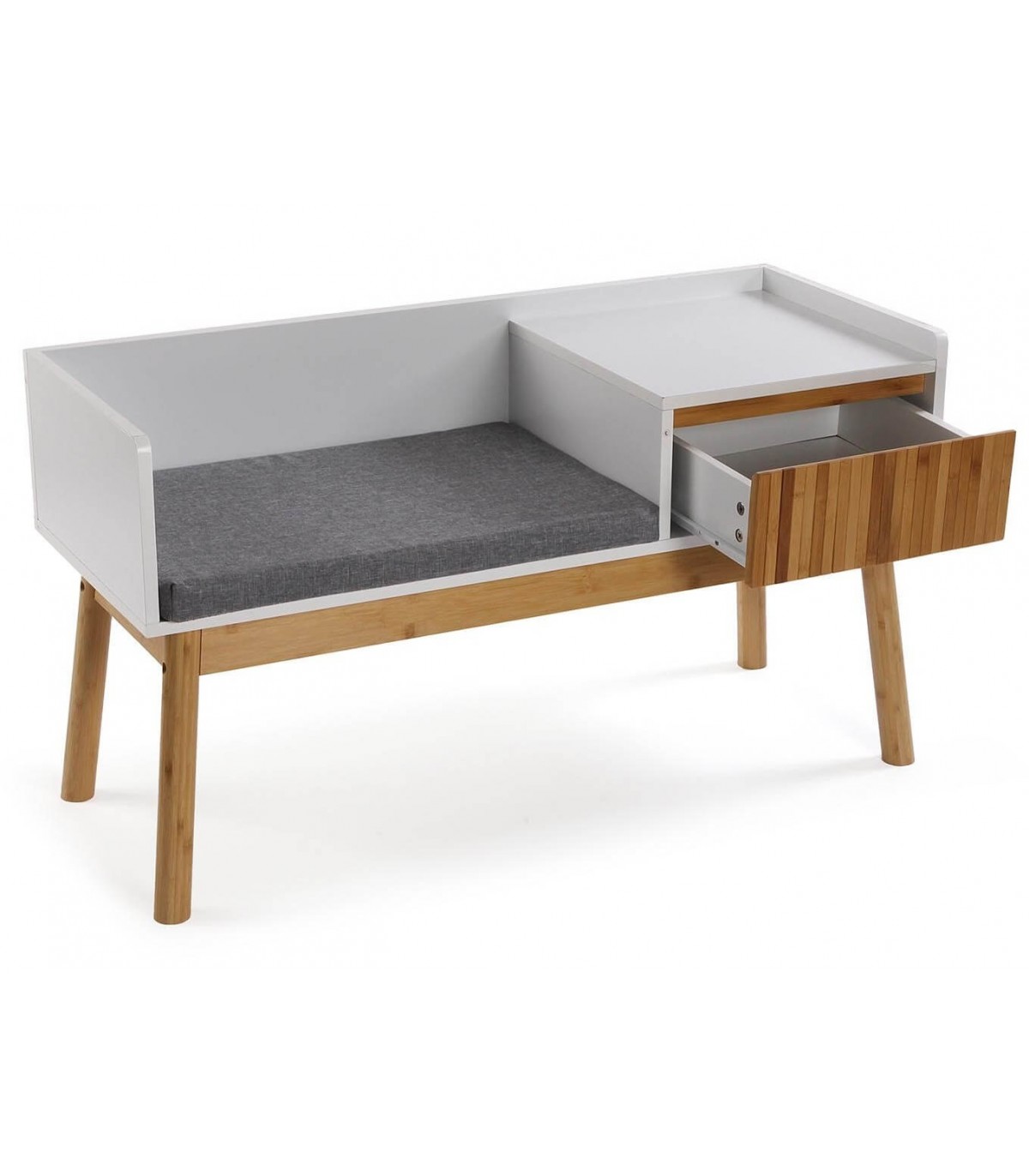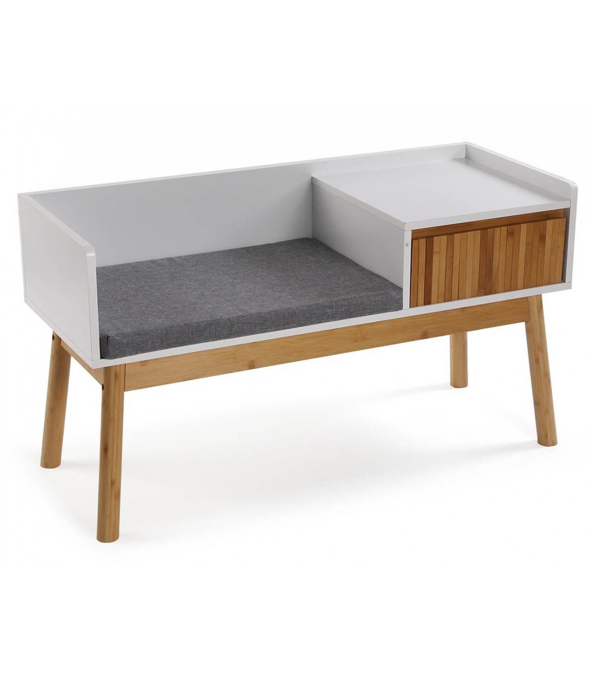 Banco pie de cama, 1 cajón, estilo nórdico.
