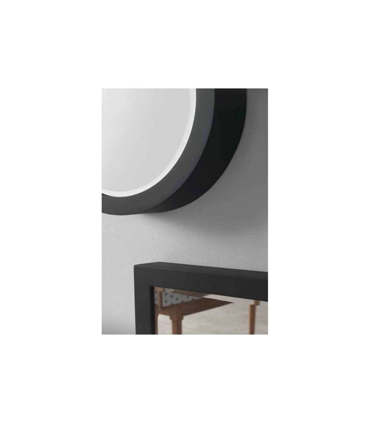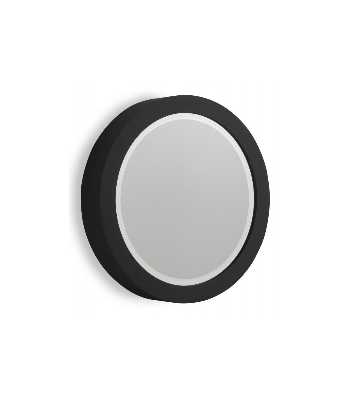 • Pequeño espejo redondo realizado en polipropileno en color negro, listo para colgar