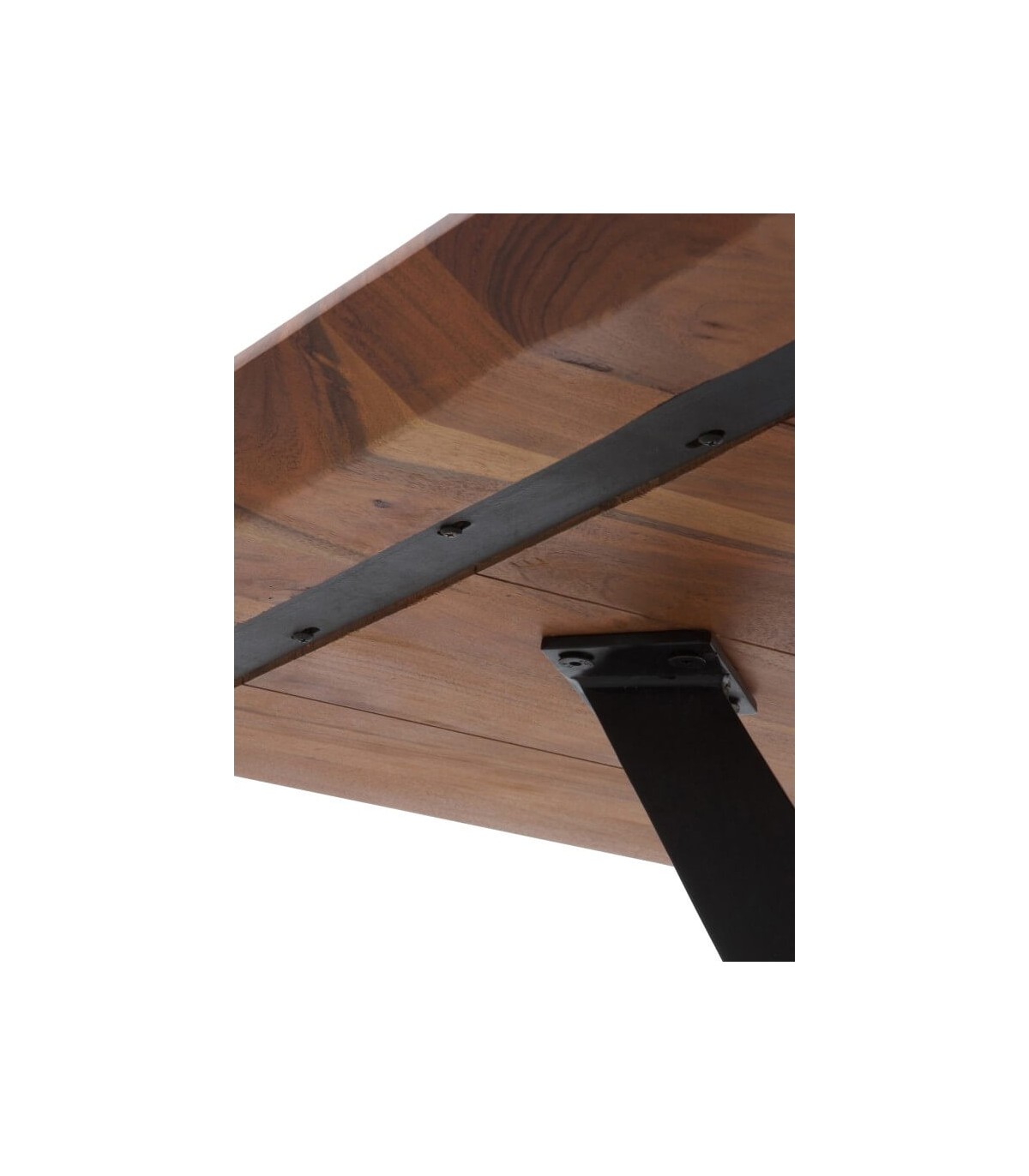 Mesa de comedor rectangular grande realizada en madera de acacia natural y metal negro, de estilo industrial, encaja muy bien en decoraciones coloniales. una mesa de comedor resistente ideal para salones grandes.