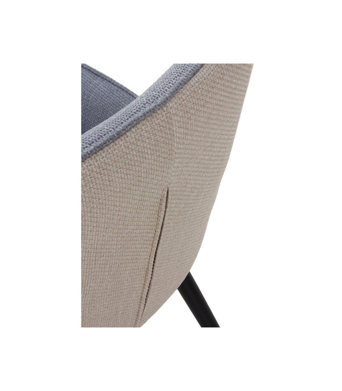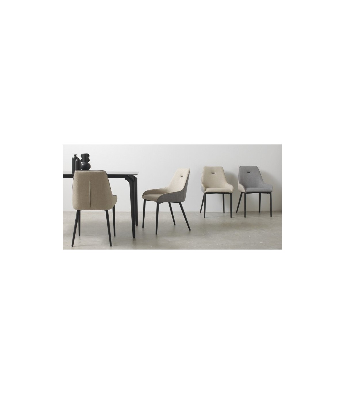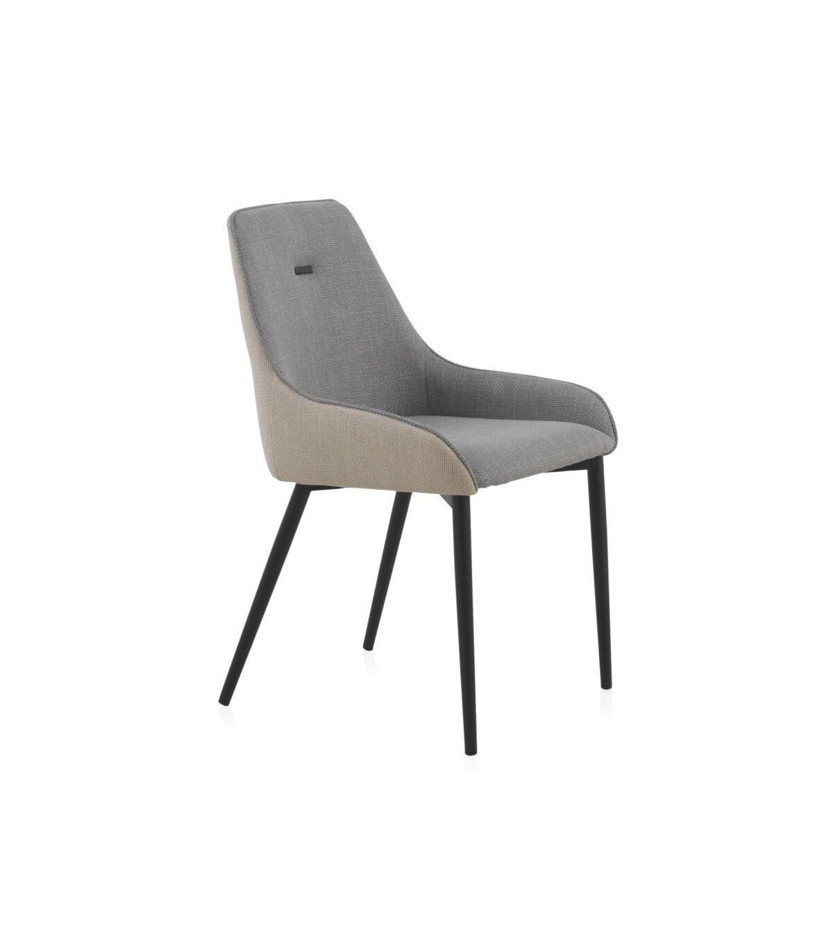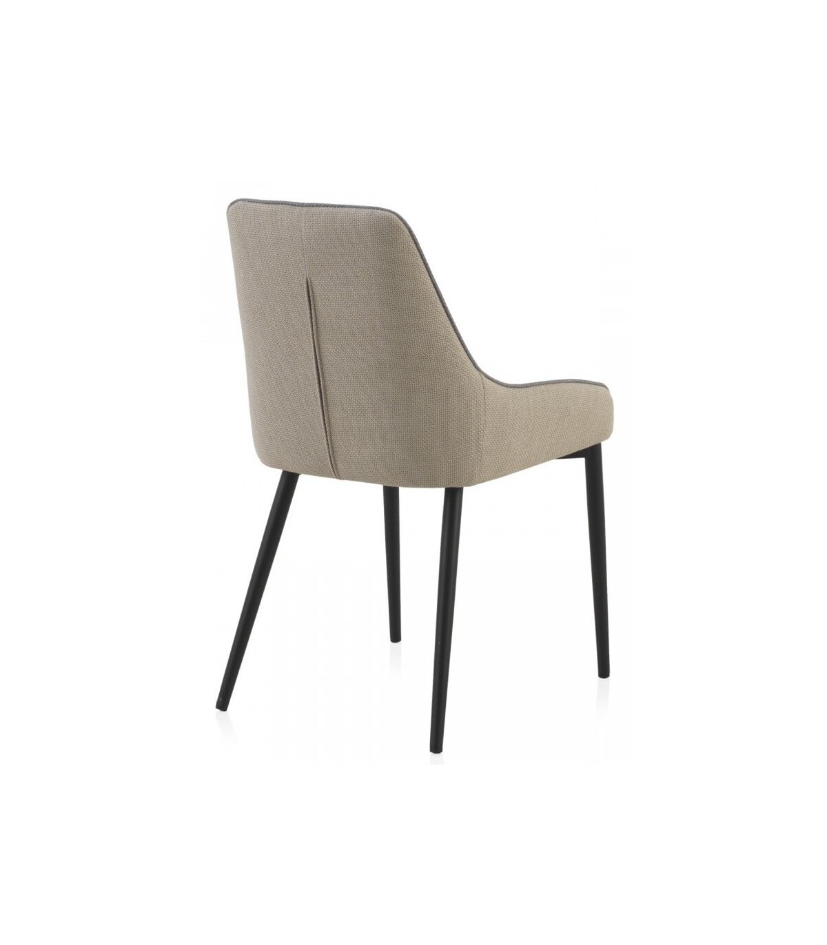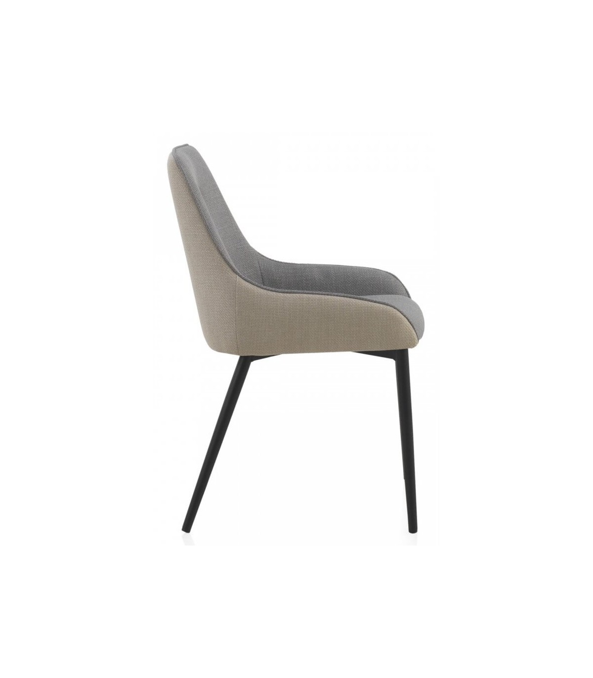 Silla ligera con la estructura en metal negro tapizada en chenilla color beige y gris, para cualquier tipo de decoración, la estructura metálica le aporta solidez mientras que el mullido del tapizado mucho confort, existe en más colores.